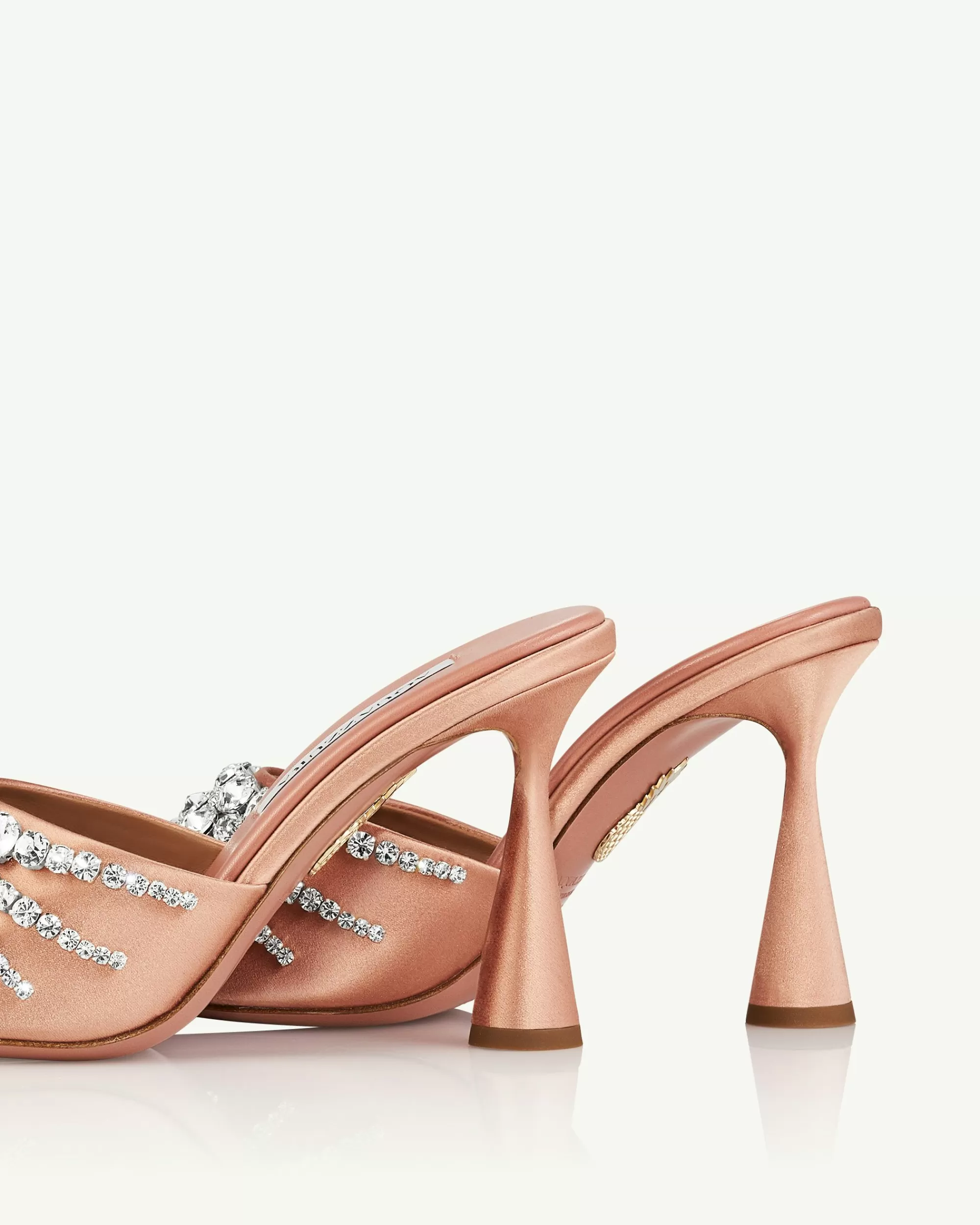 Our Max Crystal Mules lend maximalist glamour to any look. The barely-there silhouette is crafted from lustrous satin and leather in a charming Poudre hue. Thanks to the sculptural heel and lavish embellishments, this stunning pair looks and feels like an artwork in its own right.