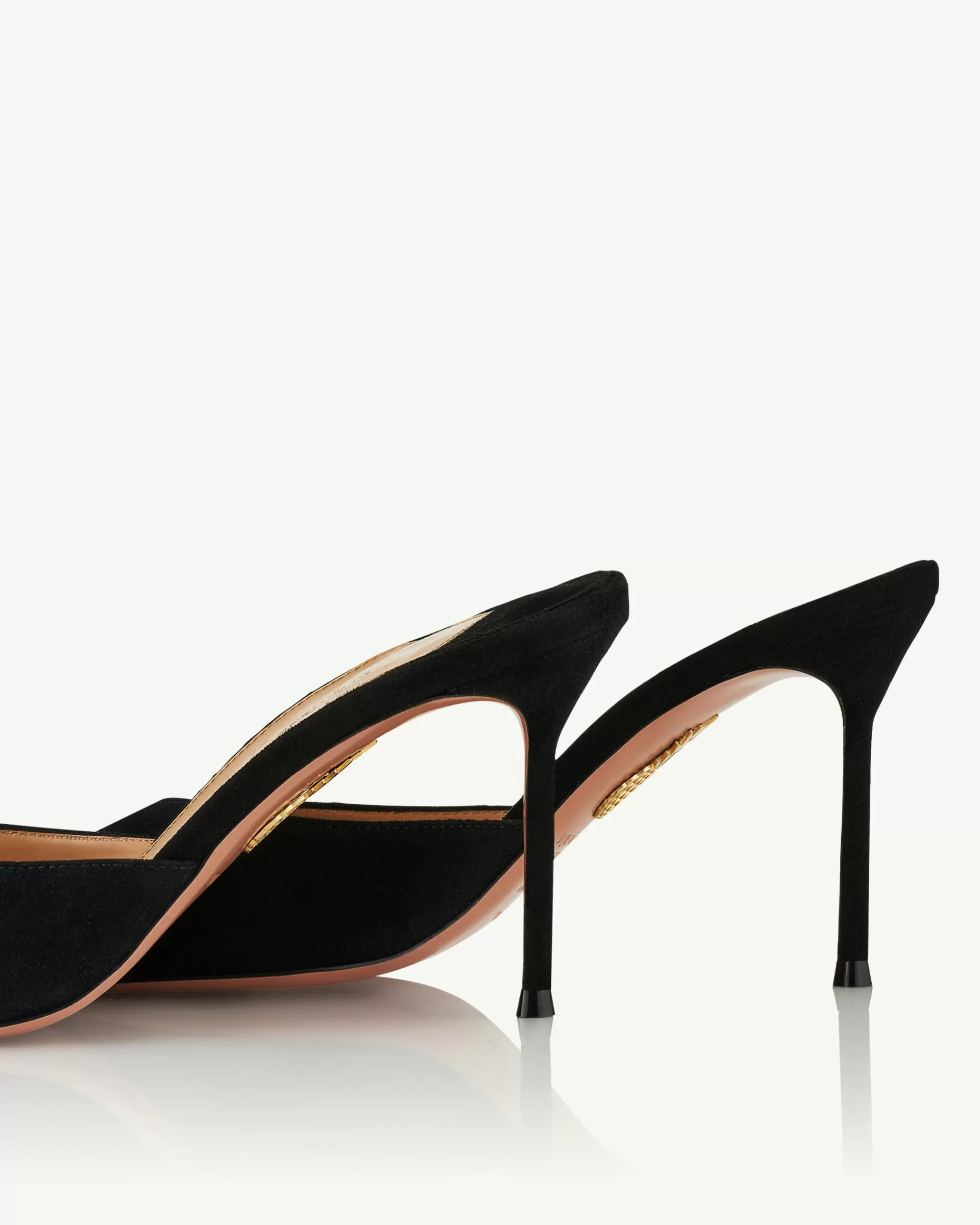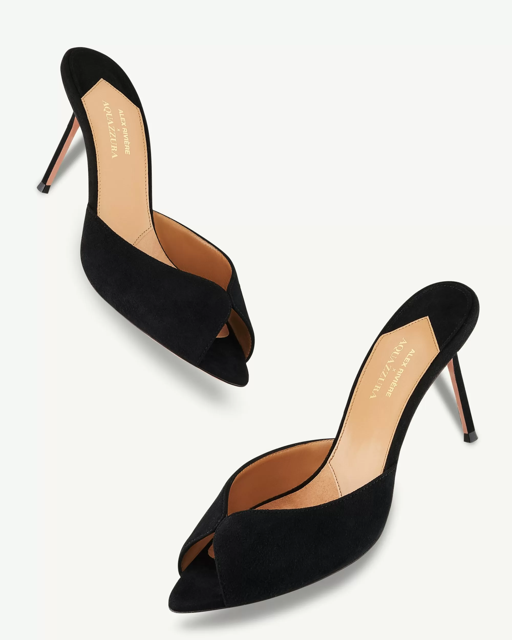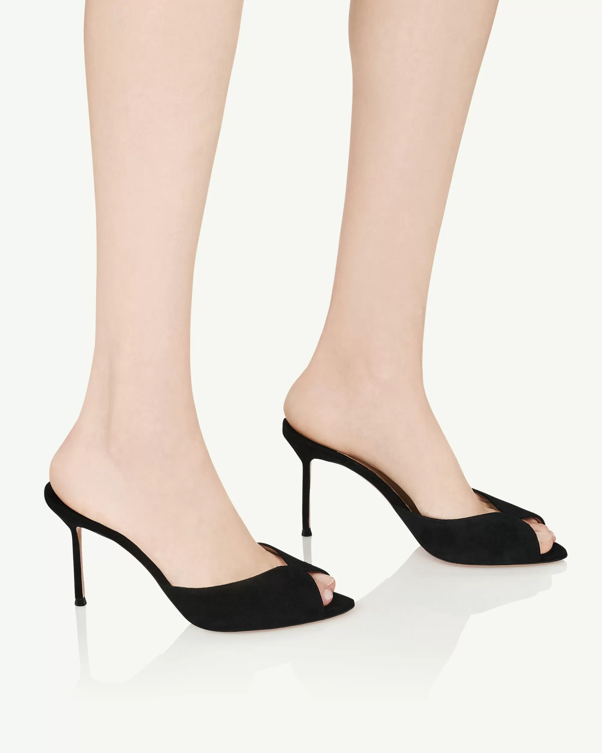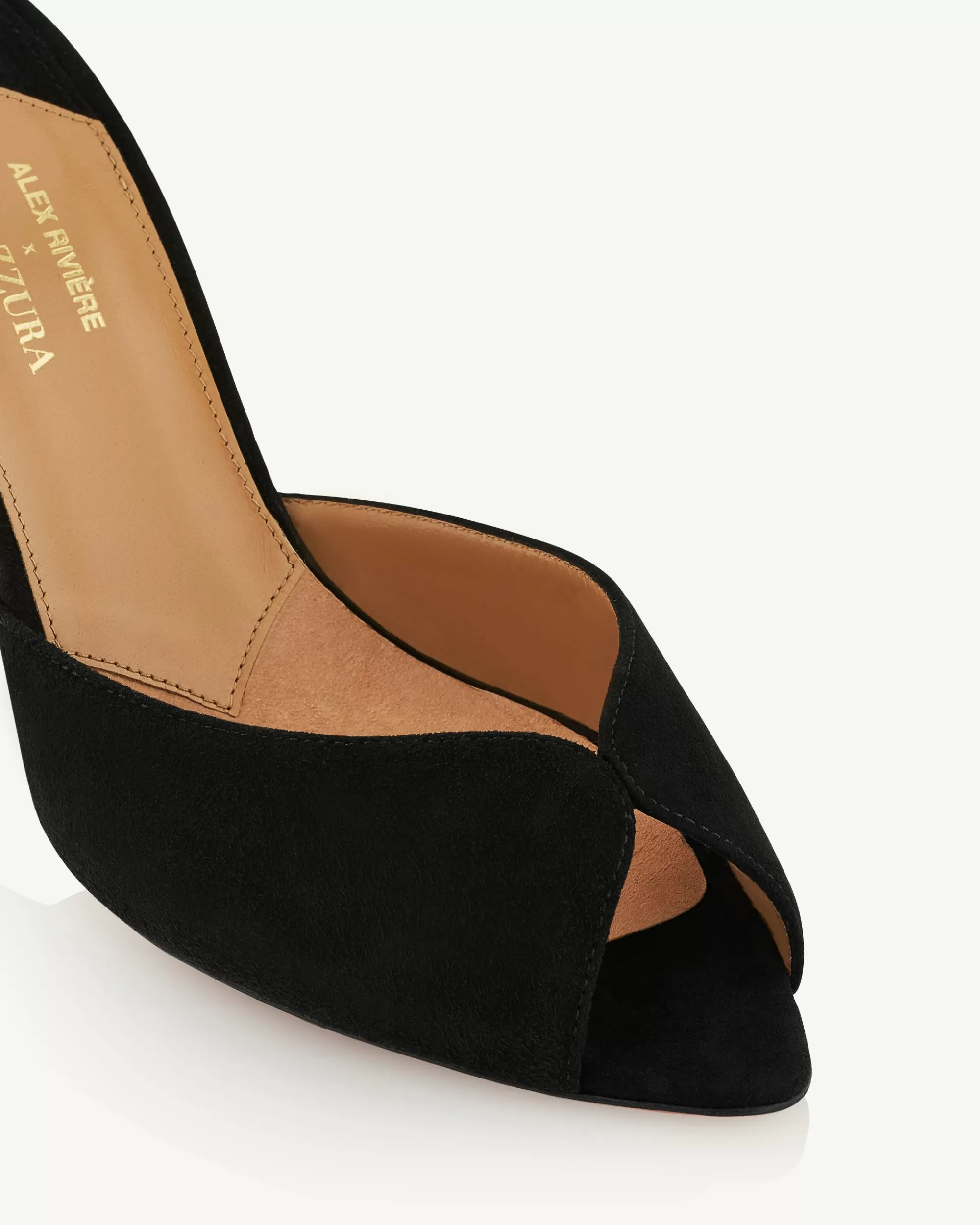 It’s clear that fashions obsession with the 90s isn’t fading anytime soon, and these Alex Mules are proof. Crafted from velvety black suede, the backless profile features elegant peep toes and sharp stiletto heels measuring 85 mm.