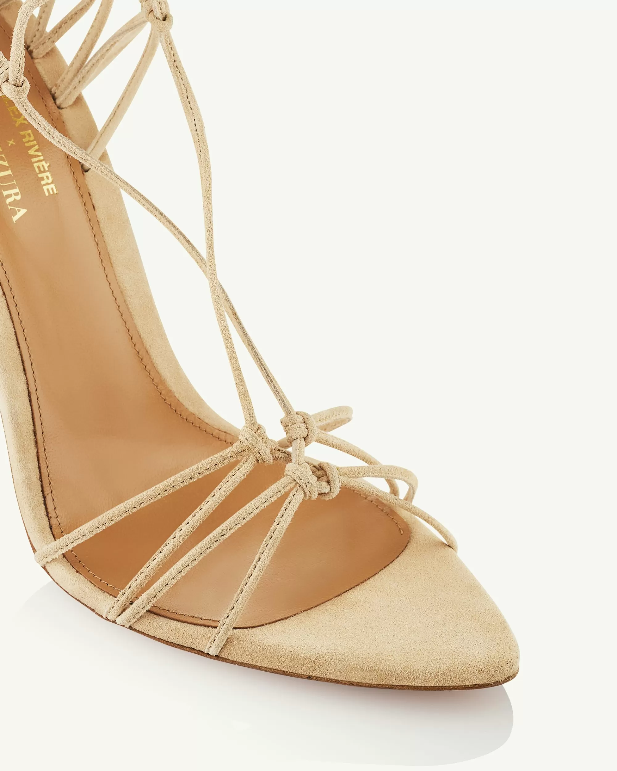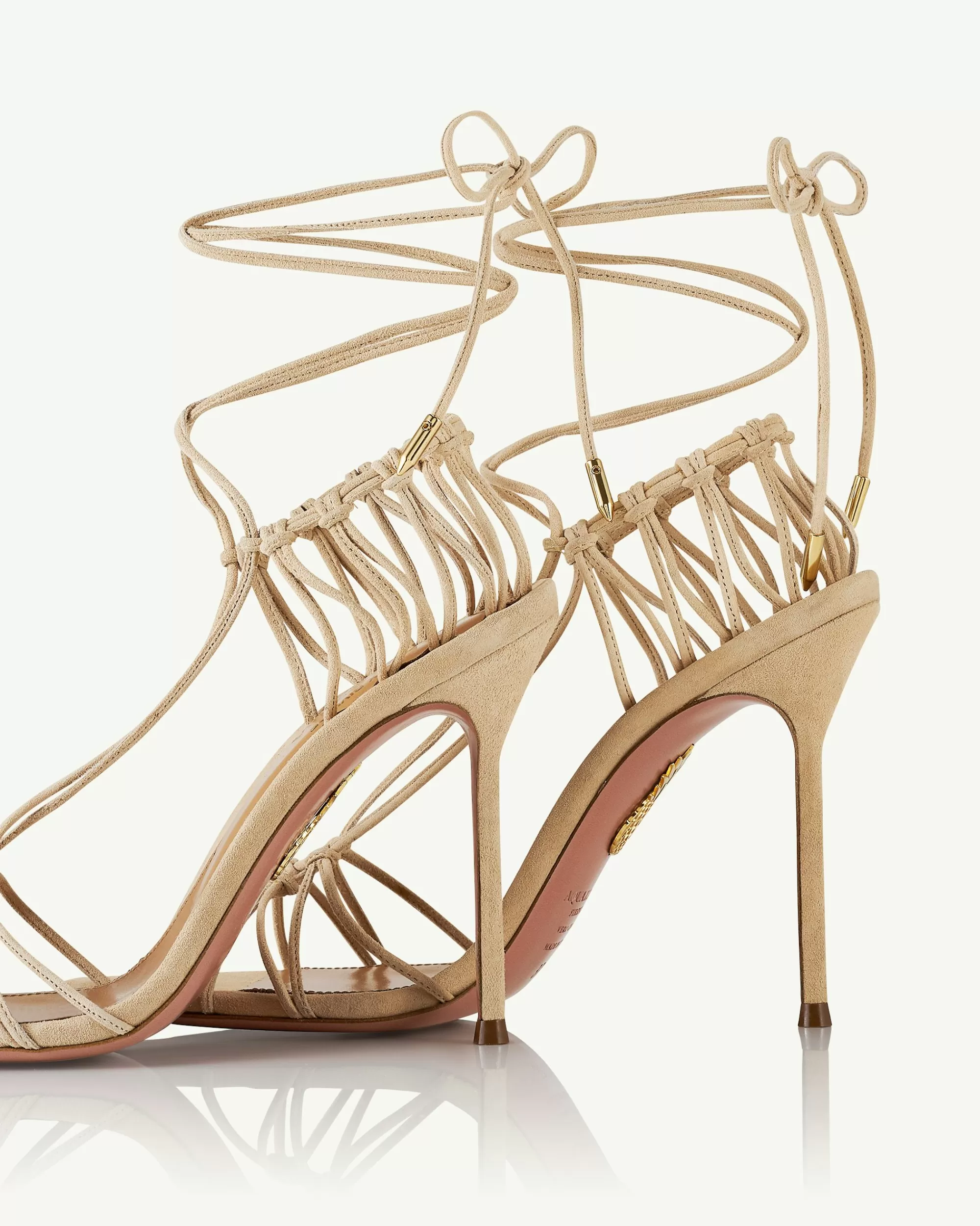 With their intricate knot detailing and lace-up ankle ties, our Alex Sandals add a hint of eccentricity to the classic strappy silhouette. Theyre crafted from velvety suede in a warm Sand Dune shade and set on 105 mm stiletto heels, proving a minimalist design can make a major fashion statement.