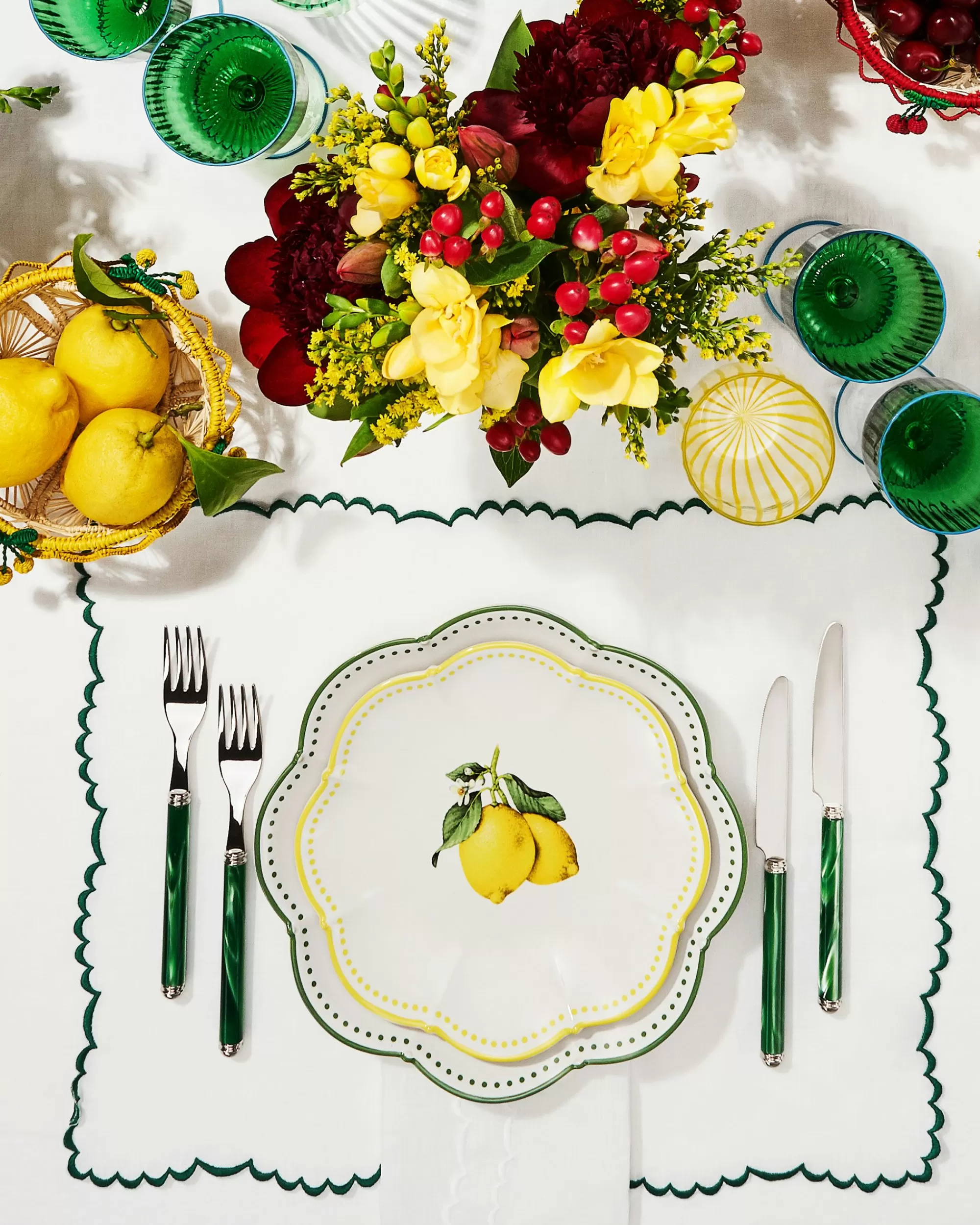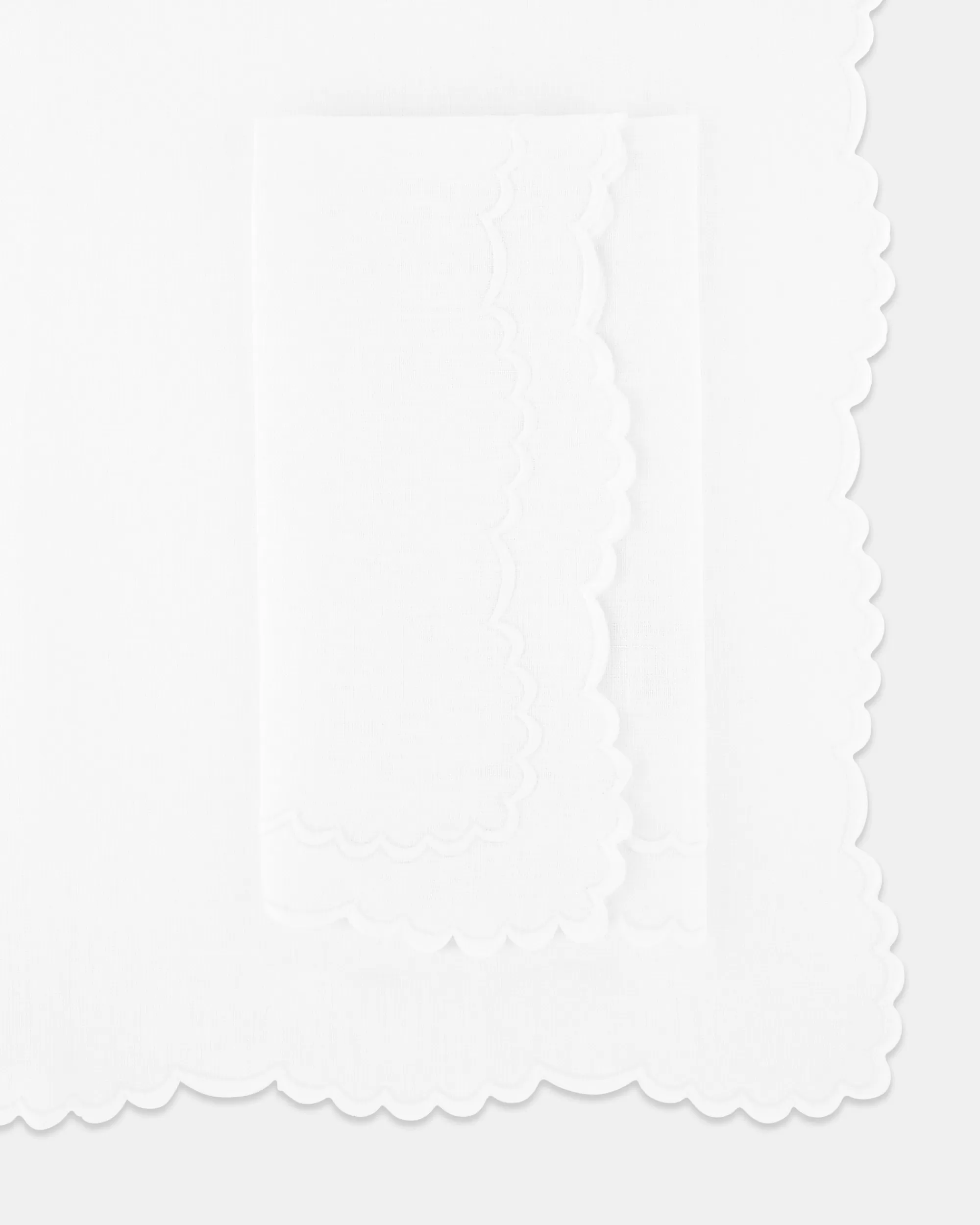 Every table needs a classic set of linen napkins. Our Allegra Napkins are Italian-made from lightweight linen in chic off white and finished with elegant embroidery along the scalloped edges. Although perfect as is, we like them paired with other stylish pieces from the collection.