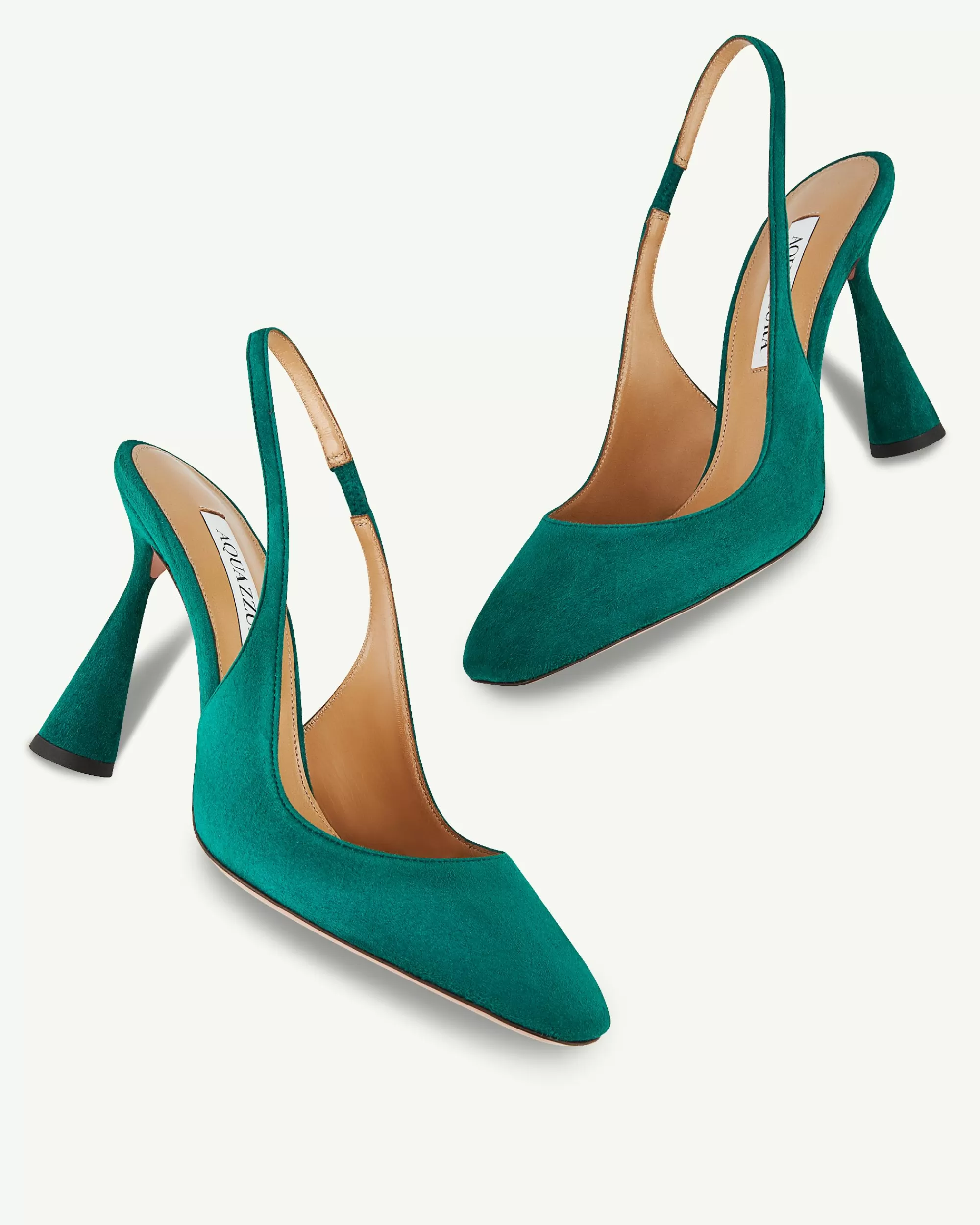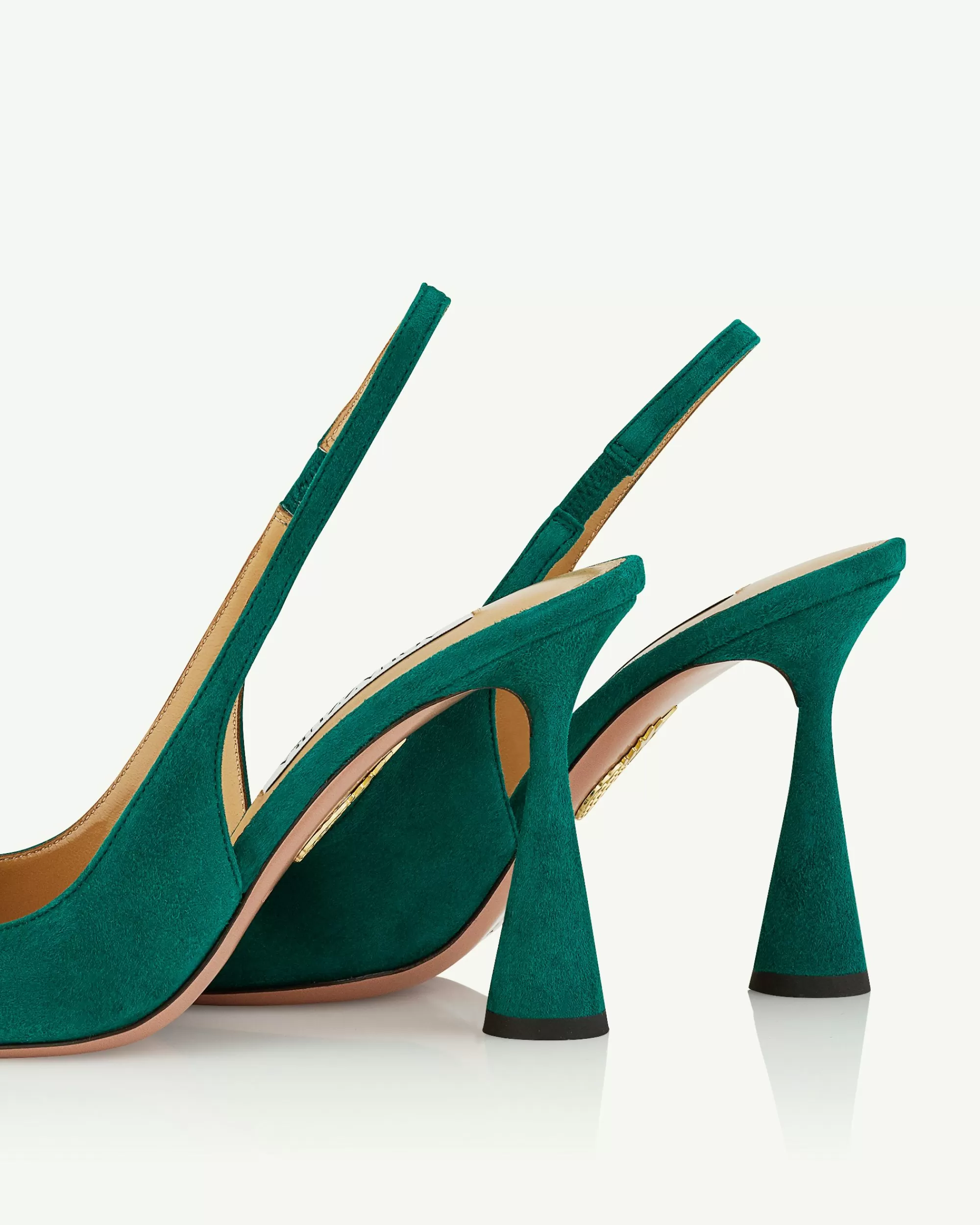Yes, love at first sight does exist: meet our Amore Pumps. Crafted in Italy from soft suede in a rich shade of ‘Alpine’ green, the classic slingback silhouette is updated with sculptural 95 mm heels and detailed with elasticated straps to ensure a secure fit, making them an easy way to embrace the seasons ladylike trend.