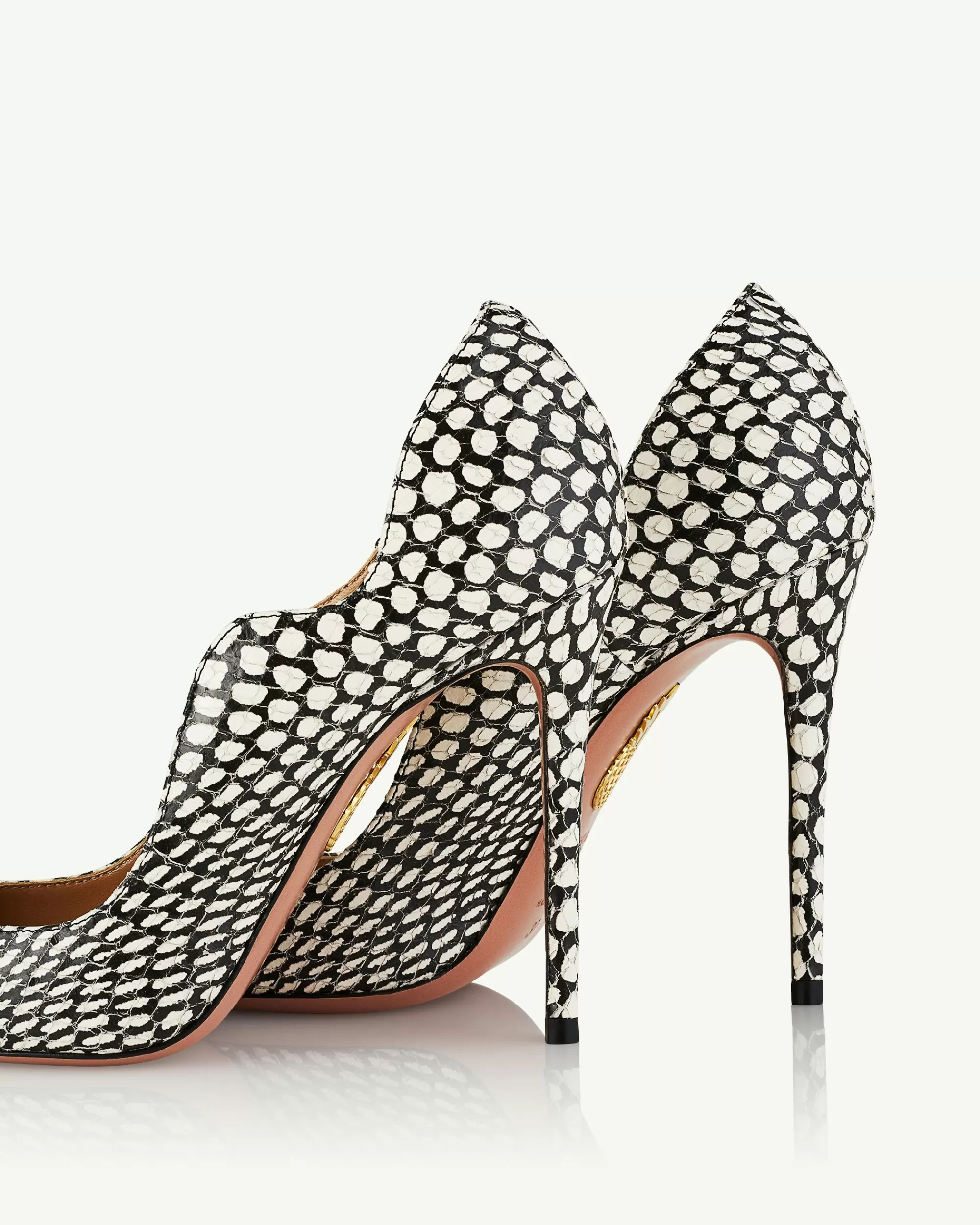A rare masterpiece combining the finest Italian craftsmanship with modern design, the Artiste Pumps deserve a prime spot in your collection. They’re characterised by an undulating profile, a sharp pointed toe and a slender 105 mm stiletto heel. Made from butter-soft leather, the black and white snakeskin print adds attitude.