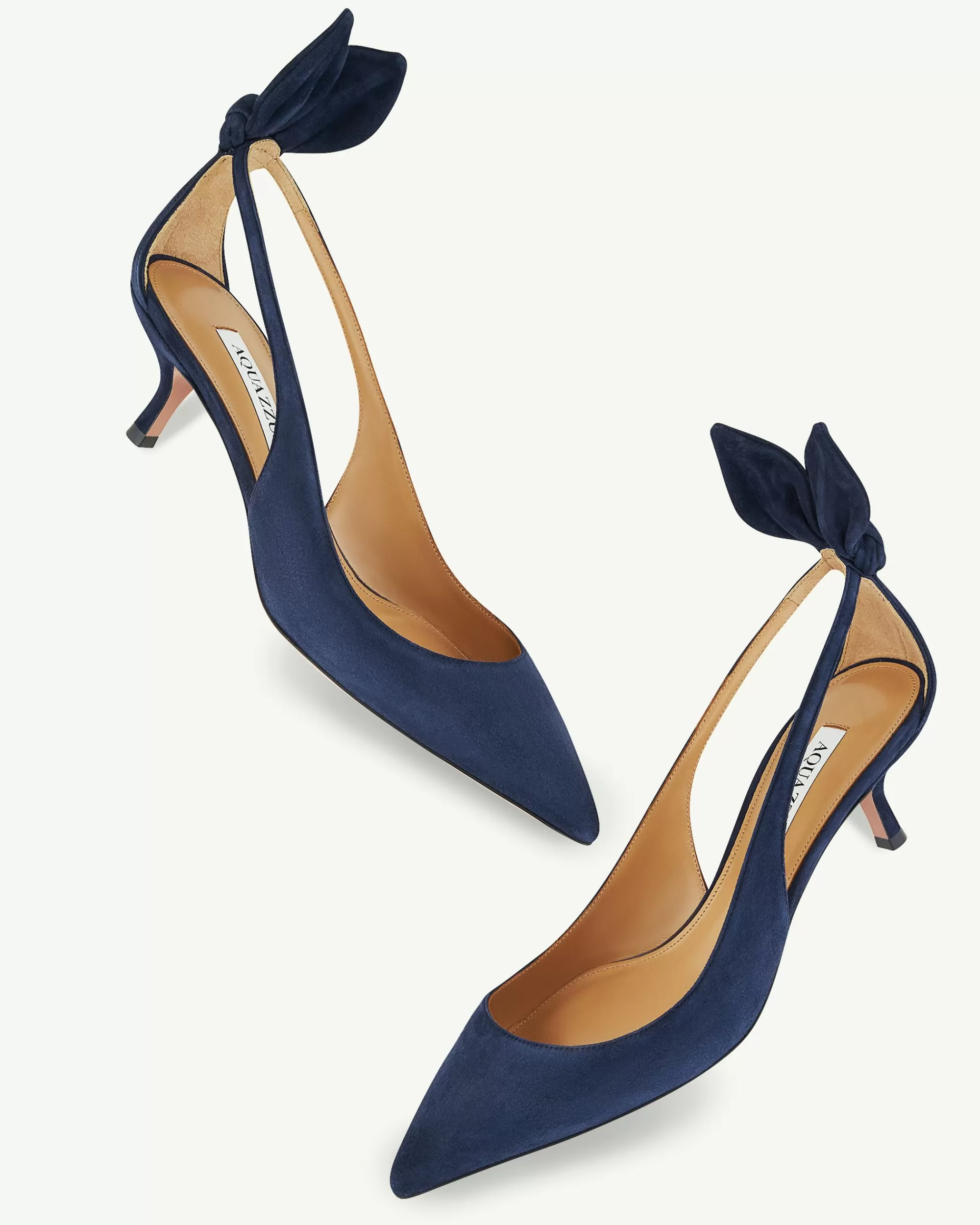 Equal parts romantic and playful, our signature Bow Tie Pumps are instantly identifiable by the detailing at the back of each ankle and skin-baring side cutouts. Crafted from velvety suede, this Midnight blue iteration features flattering pointed toes and comfortable 50 mm heels.