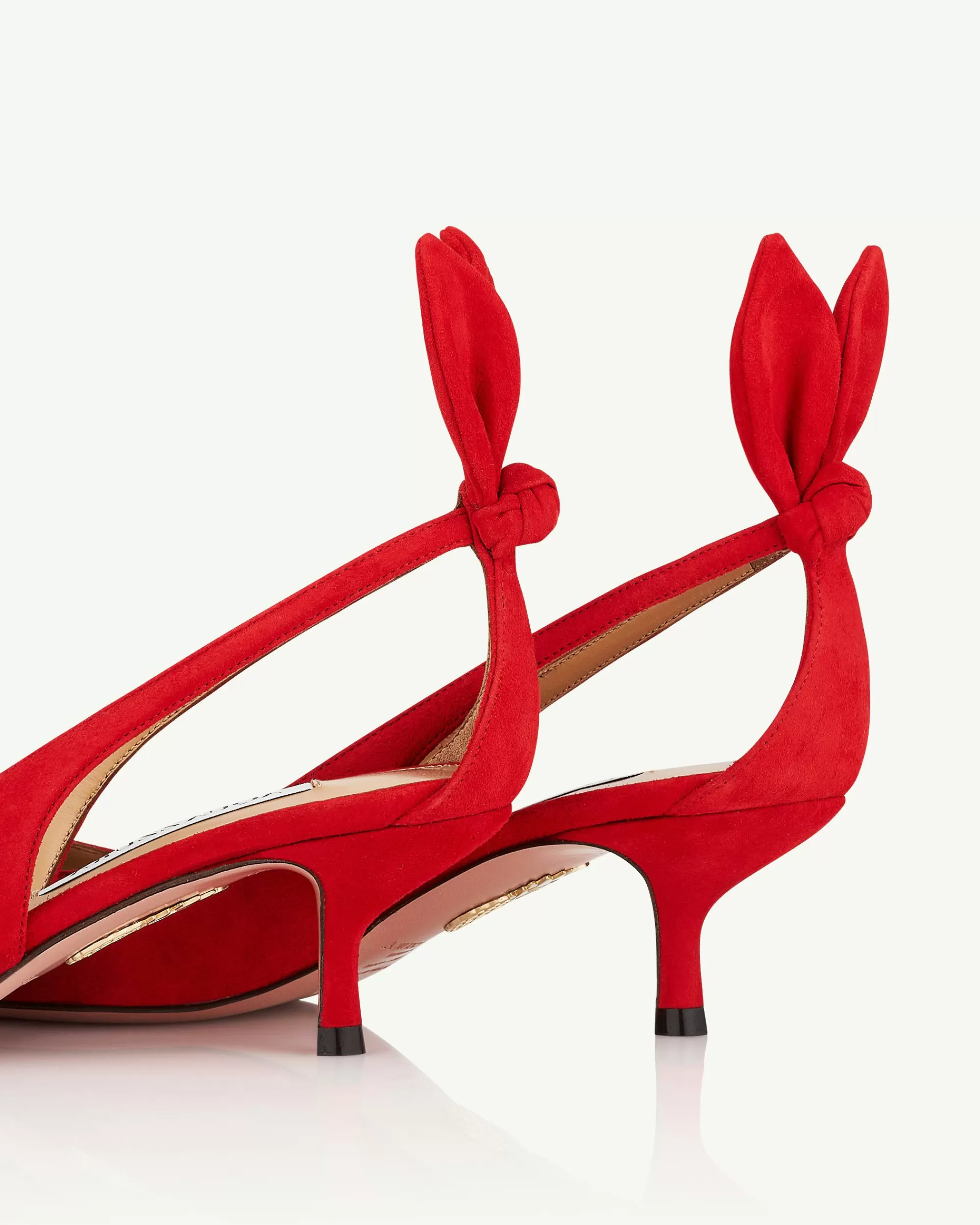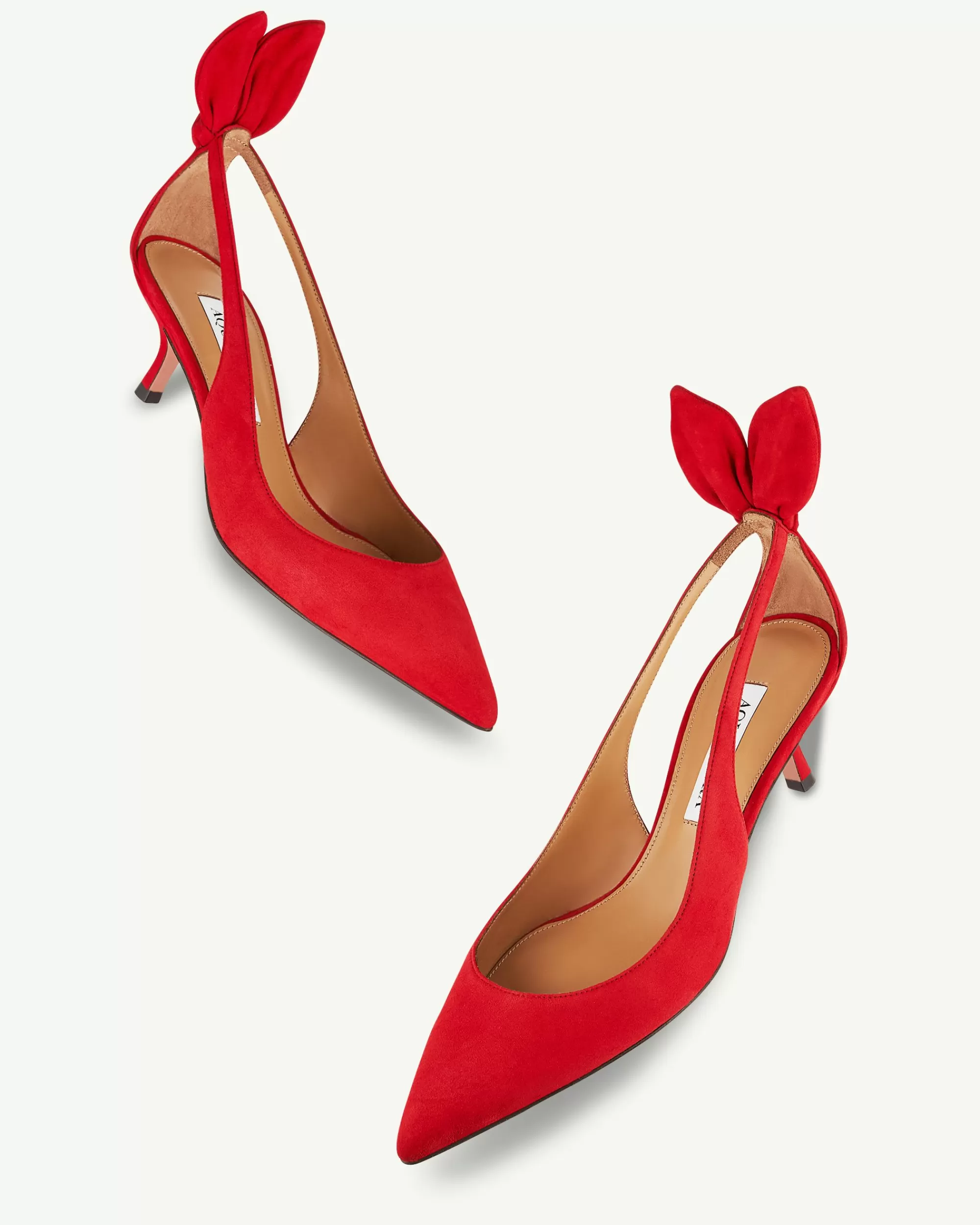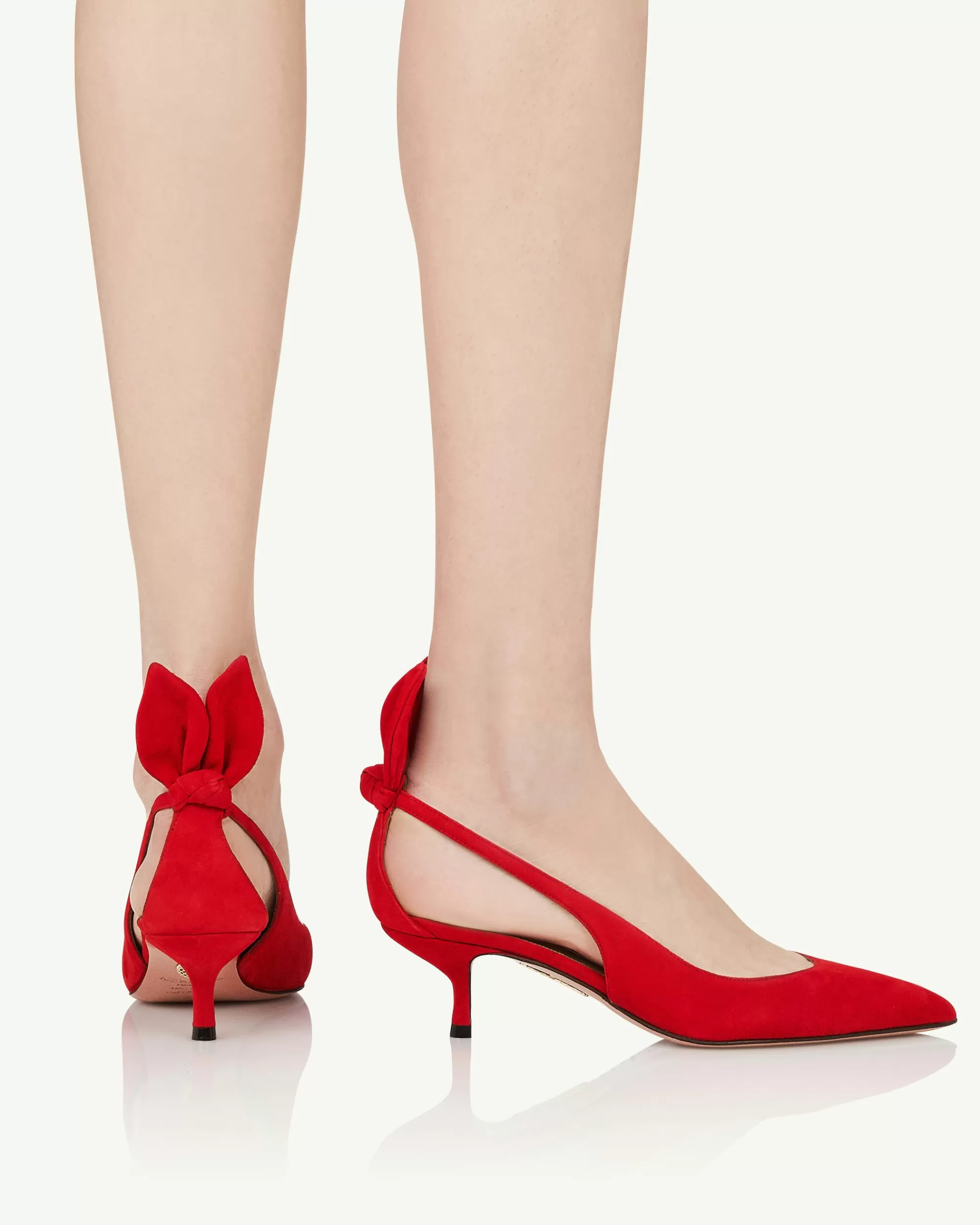 Equal parts romantic and playful, our signature Bow Tie Pumps are instantly identifiable by the detailing at the back of each ankle and skin-baring side cutouts. Crafted from leather and suede, this ultra-feminine lipstick-red iteration features flattering pointed toes and comfortable 50 mm heels.