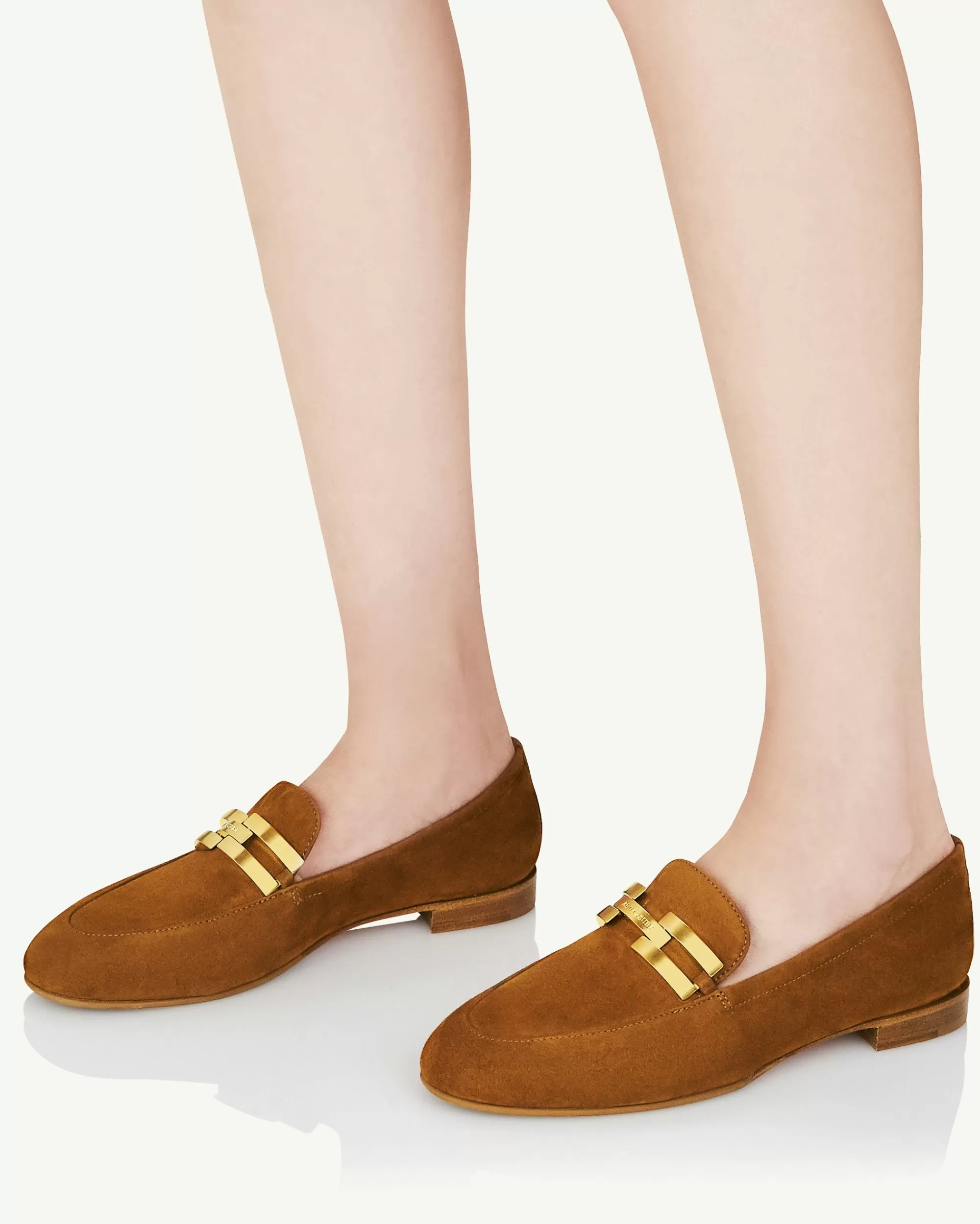 Combining timeless appeal with walk-mile comfort, our Brandi Soft Moccasins will see you through the seasons. The supple brown suede contrasts beautifully with gold-tone hardware, while the sleek, streamlined silhouette ensures versatility. The elasticated sides make them easy to slip on and off.