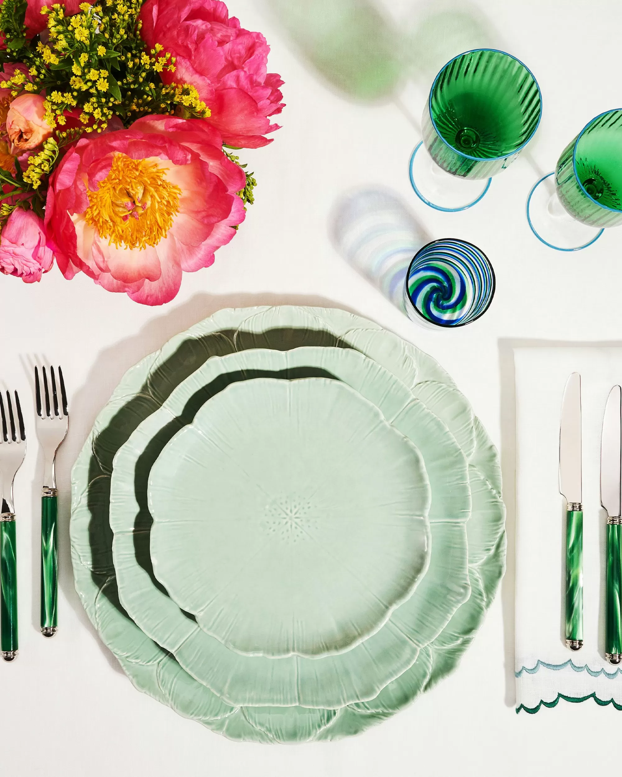 Memorable meals start with pieces from our Cherry Blossom Collection. Hand-crafted from expert artisans, the Charger Plate takes inspiration from the petals of the wondrous cherry blossom flower. The intricate and ornate edge contrasts beautifully with the smooth and glossy center. The style in soft celadon can be used solo as a centerpiece or paired with other elegant items from the collection.