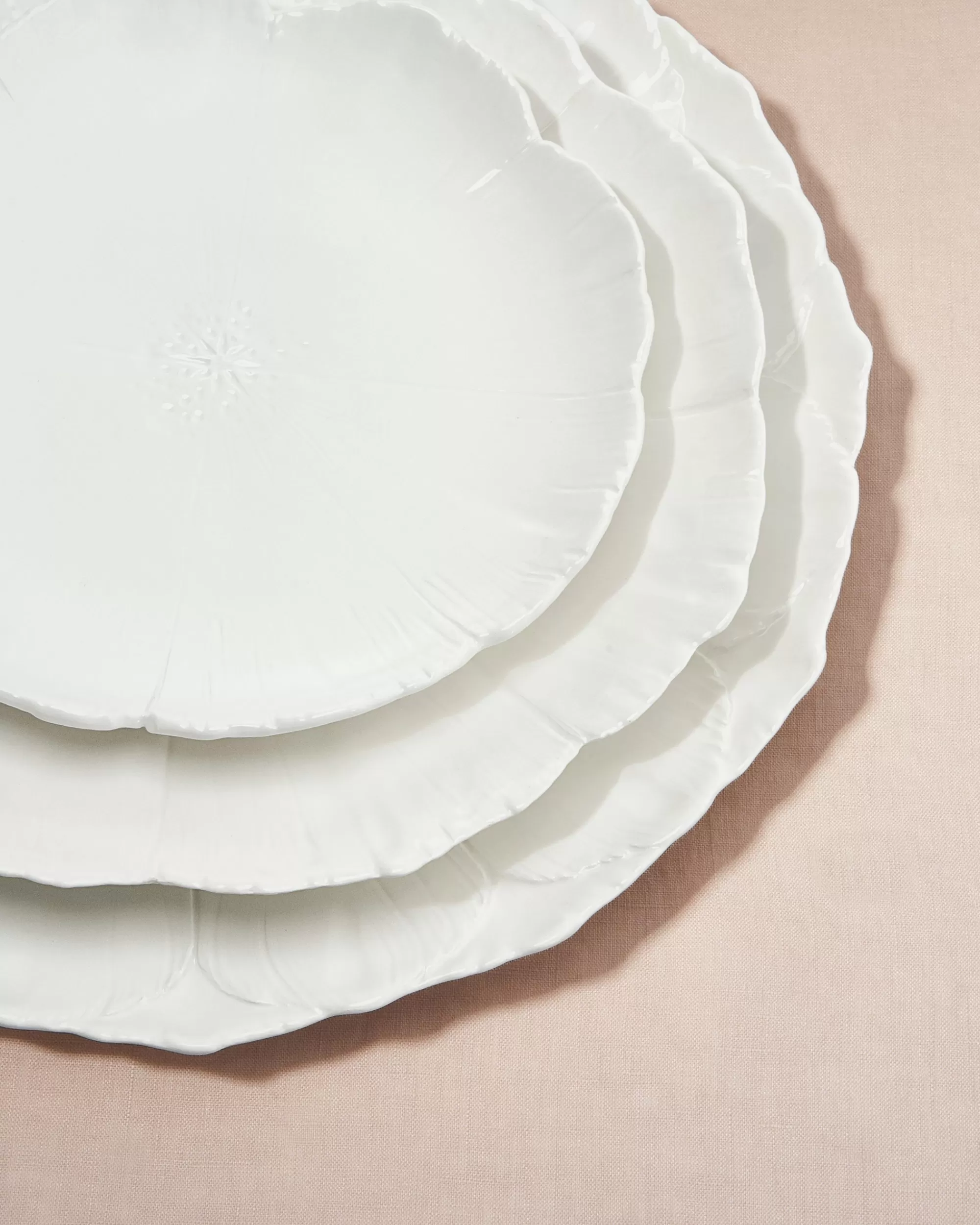 Memorable meals start with pieces from our Cherry Blossom Collection. Hand-crafted from expert artisans, the Charger Plate takes inspiration from the petals of the wondrous cherry blossom flower. The intricate and ornate edge contrasts beautifully with the smooth and glossy center.The style in chic off white can be used solo as a centerpiece or paired with other elegant items from the collection.