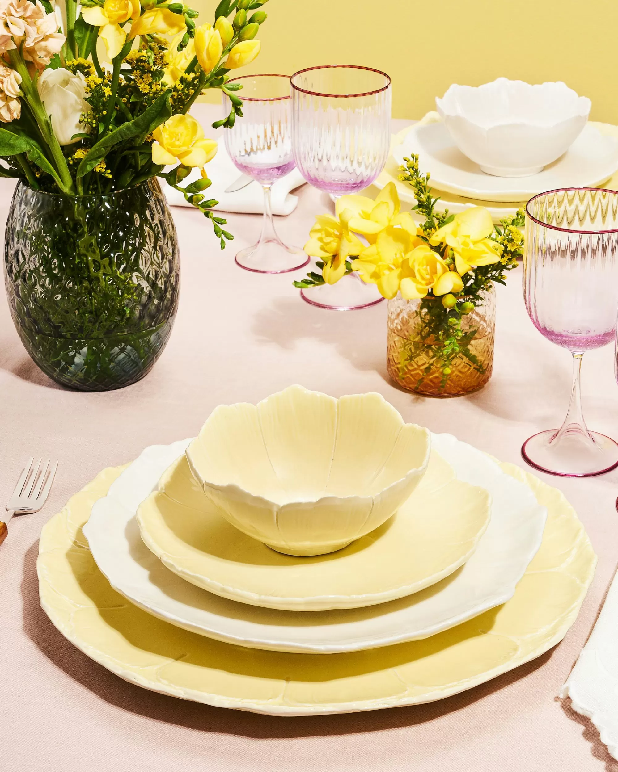 Our Cherry Blossom Fruit Bowl is the perfect vessel to enjoy freshly picked fruits or for indulging in your favorite ice cream. The artfully designed piece in a shade of fresh lemon fruit is reminiscent of the moment the cherry blossom flower opens. The striking style is dipped in a polished glaze and is finished with an eye-catching scalloped edge.
