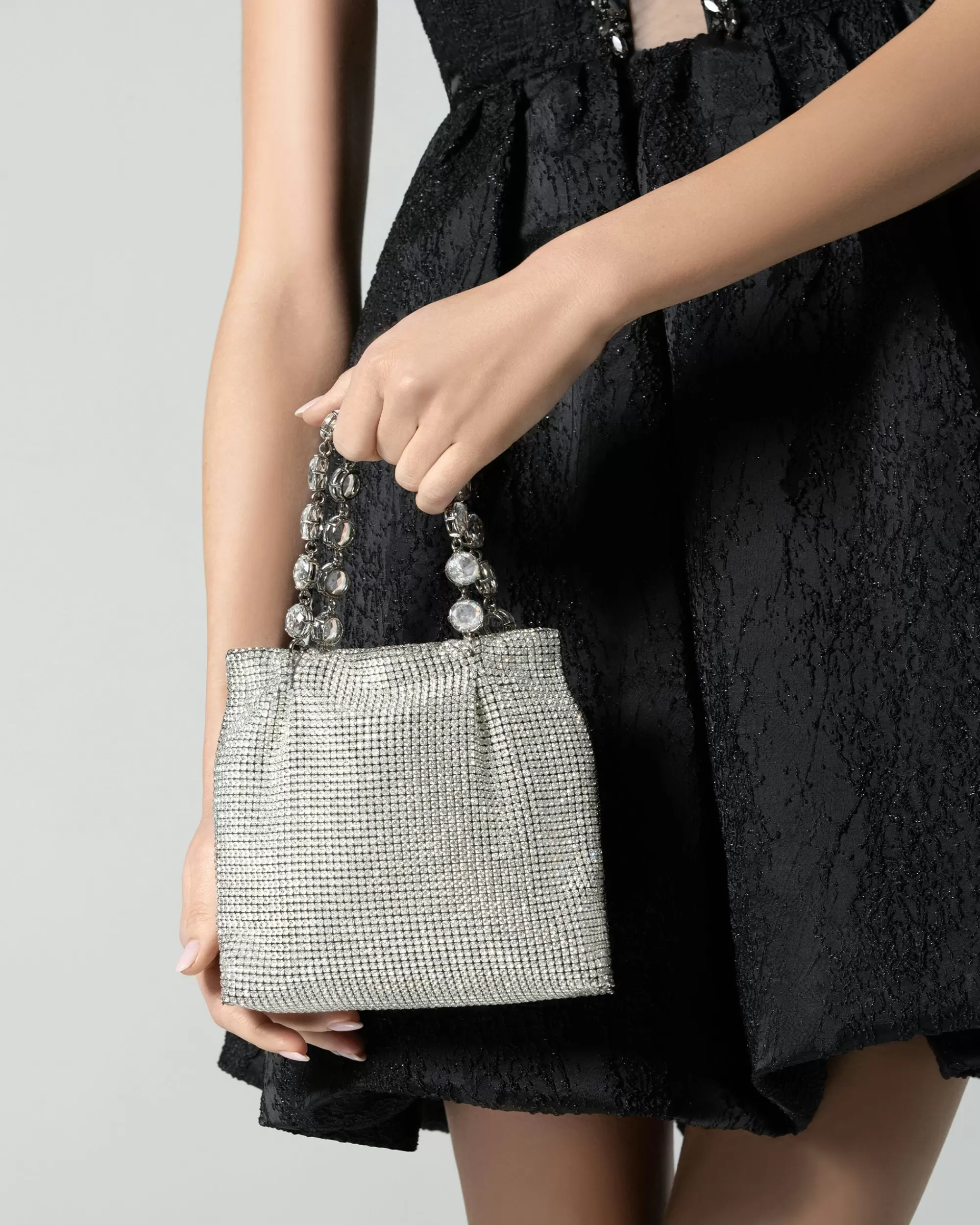 Our Crystal Galactic Mini Tote combines the everyday appeal of a sized-down shopper with an elevated crystal-encrusted exterior for maximum impact. The all-over rhinestones and jewel handle lend the perfect finishing touch to this precious accessory.