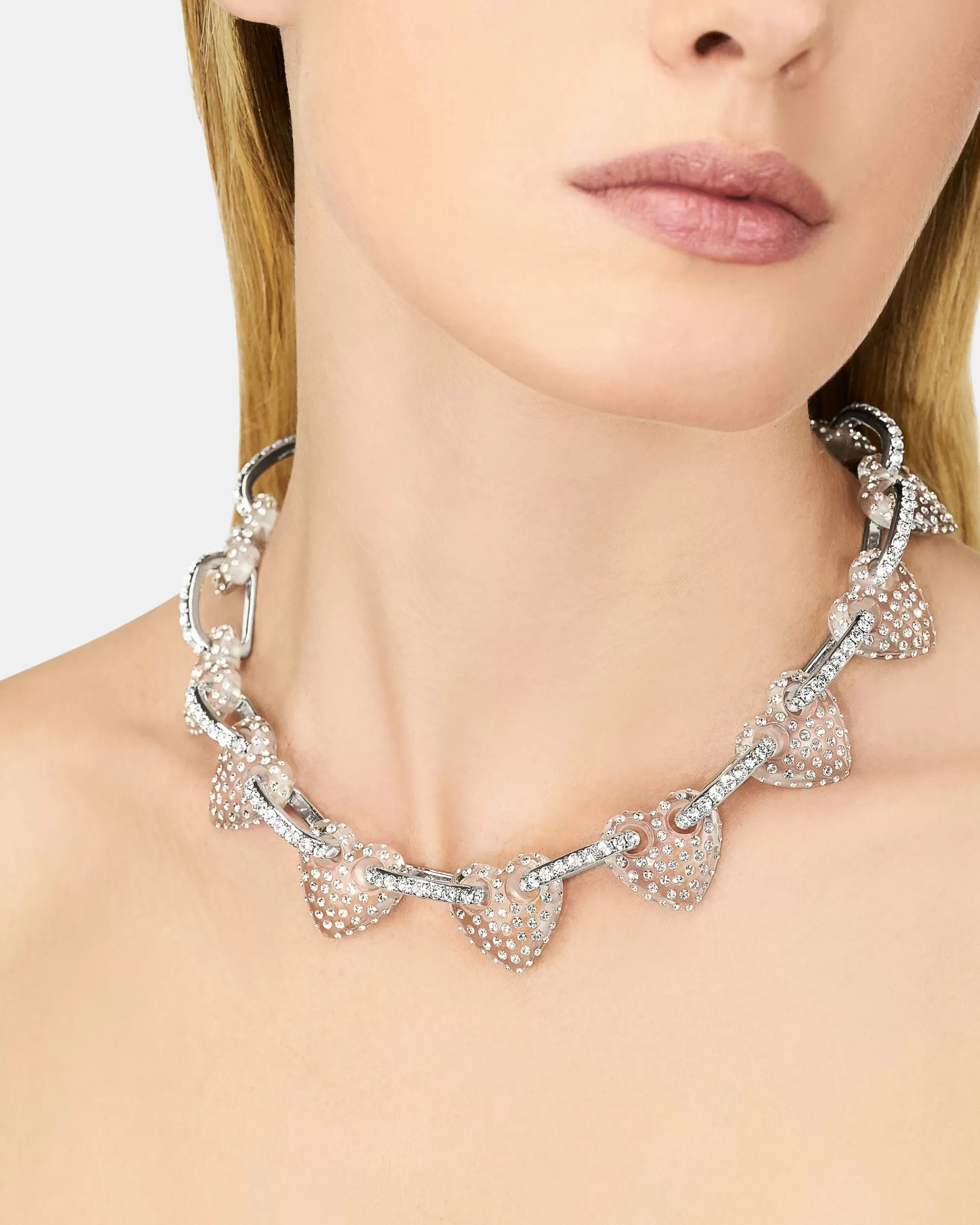 The symbolic heart motif that defines our Crystal Love Choker makes it the perfect treat for a cherished friend. It’s crafted from a combination of palladium-tone brass, transparent resin and luminous crystals.