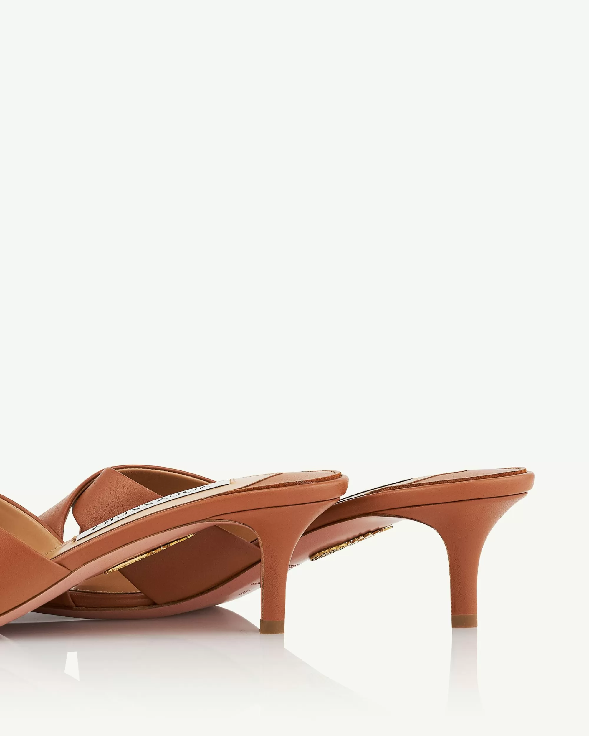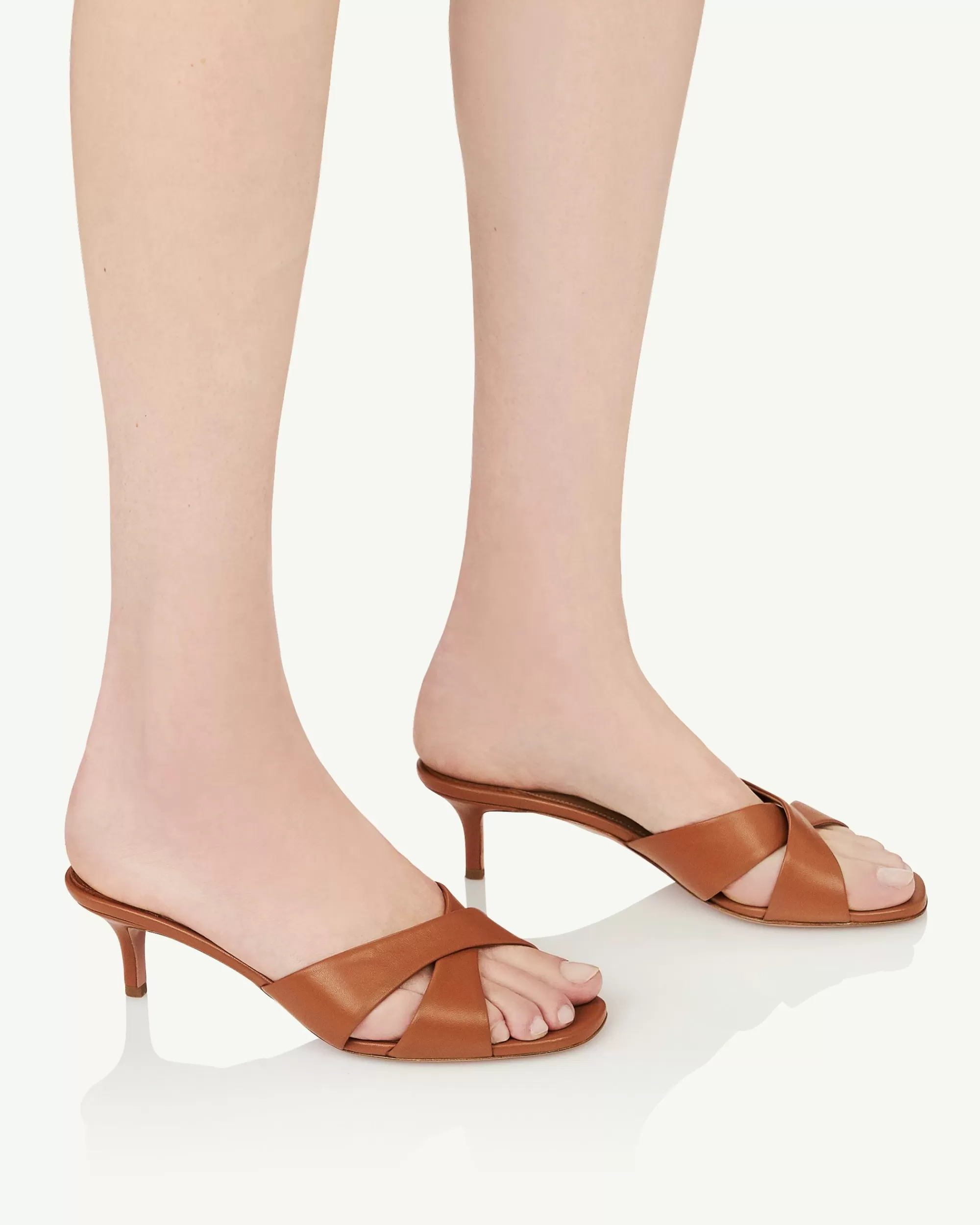 Chic meets comfort in our Divine Mules. Crafted in Italy from smooth tobacco-brown leather, they rest on slim 50 mm heels and have crossover front straps that beautifully frame the foot. The minimalist 90s shape promises endless versatility – you can wear them with just about anything.