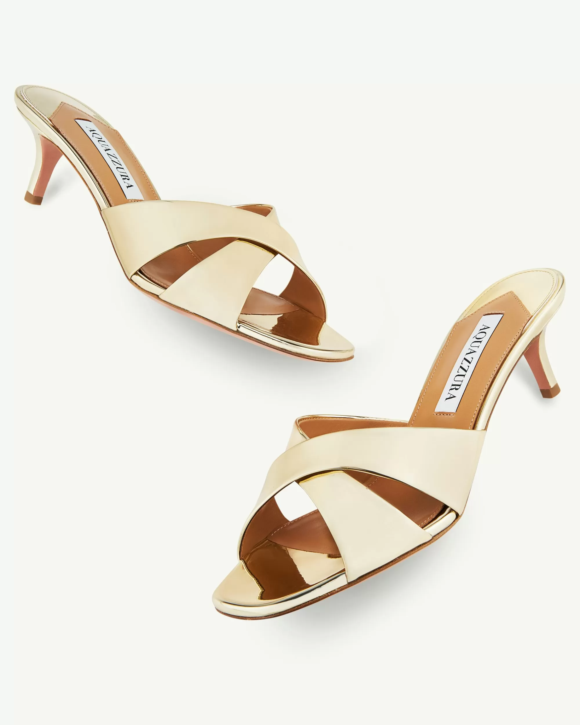 Chic meets comfort in our Divine Mules. Crafted in Italy from smooth soft-gold leather with a mirror-effect finish, they rest on slim 50 mm heels and have crossover front straps that beautifully frame the foot. The minimalist 90s shape promises endless versatility – you can wear them with just about anything.