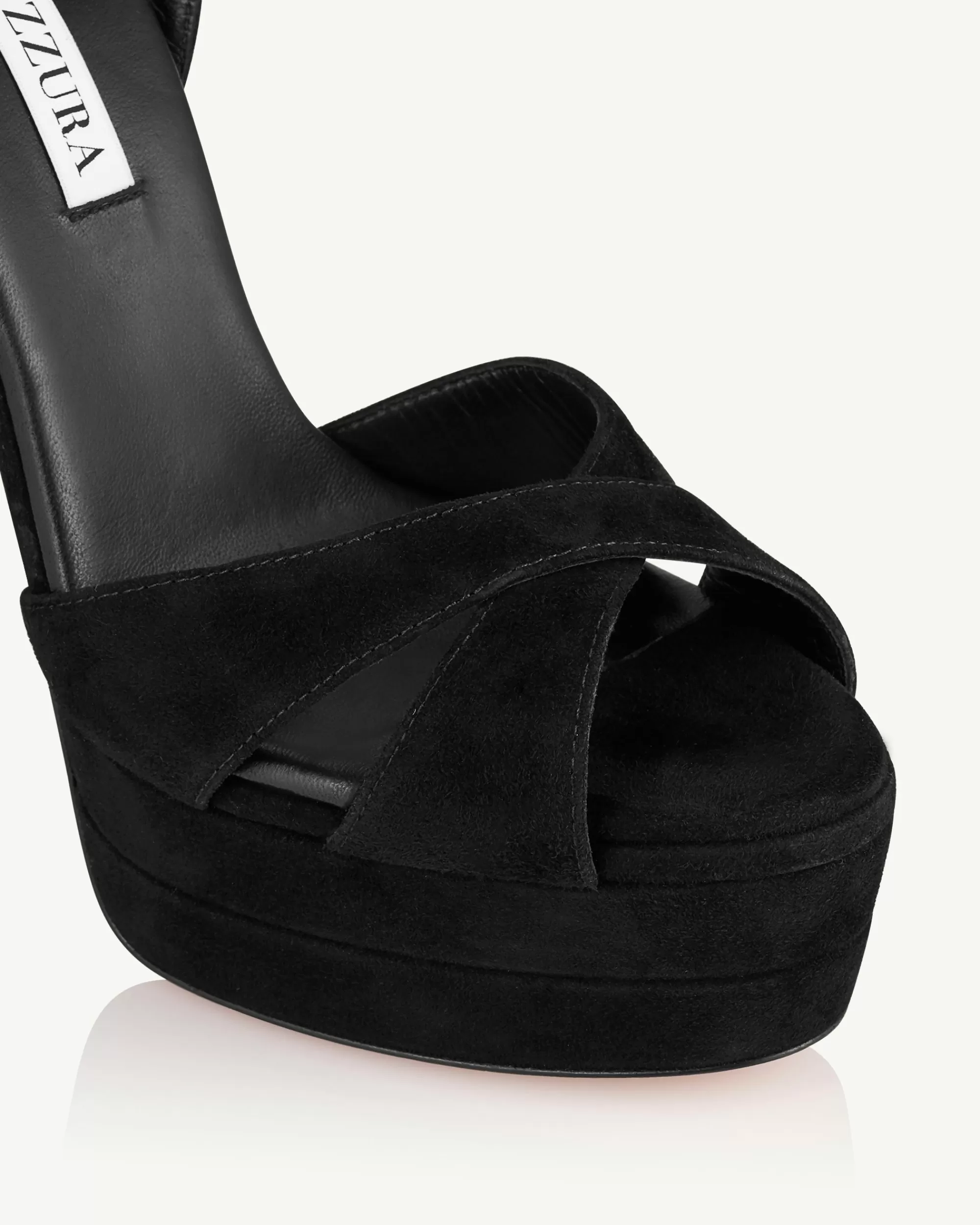 Let us introduce you to the shoes of the season: our Divine Plateau Sandals. Made from velvety black suede, they have elegant crossover straps and vertiginous 130 mm heels – perfect for balancing long hemlines. Bonus point? The thin ankle strap makes the legs look slimmer.