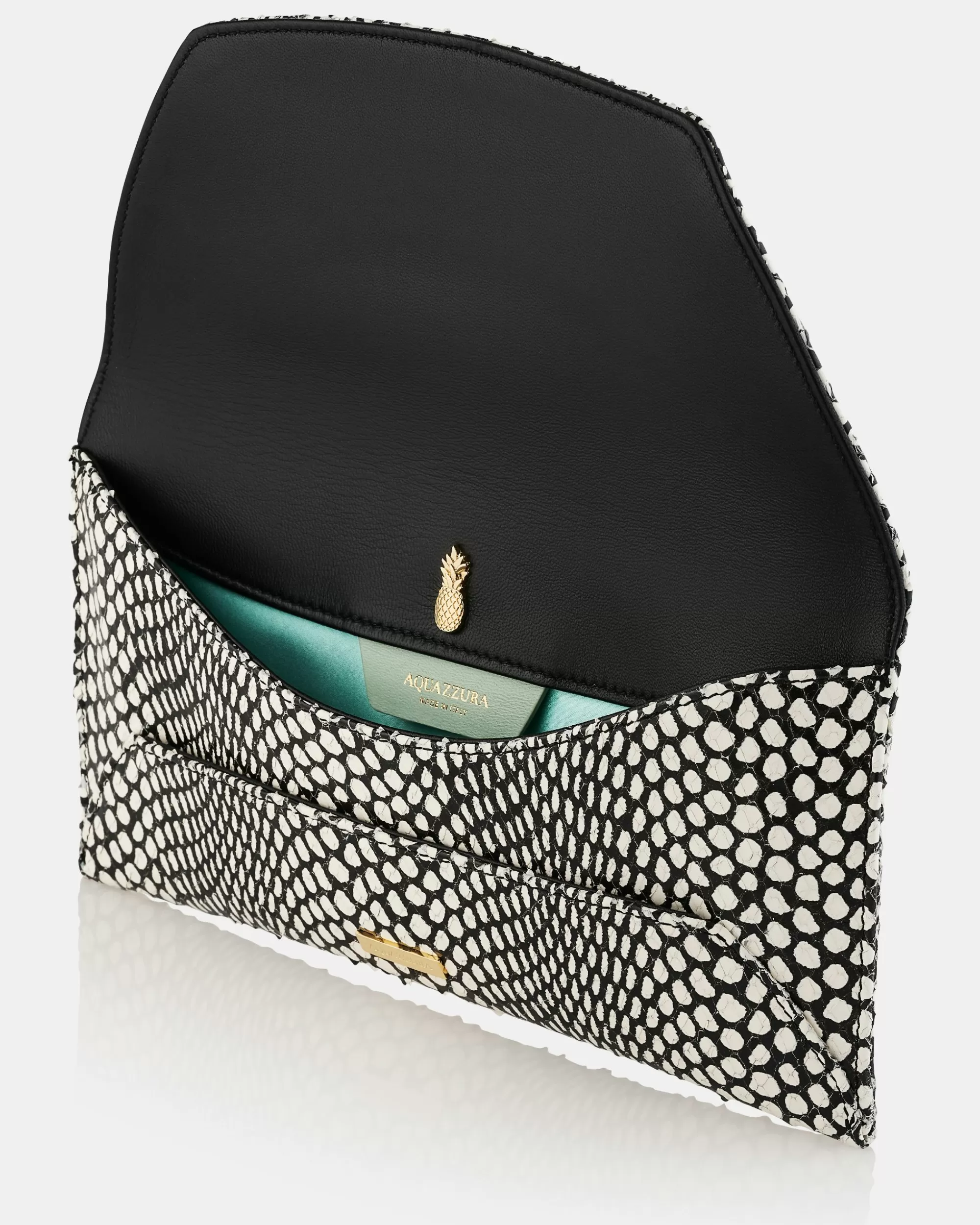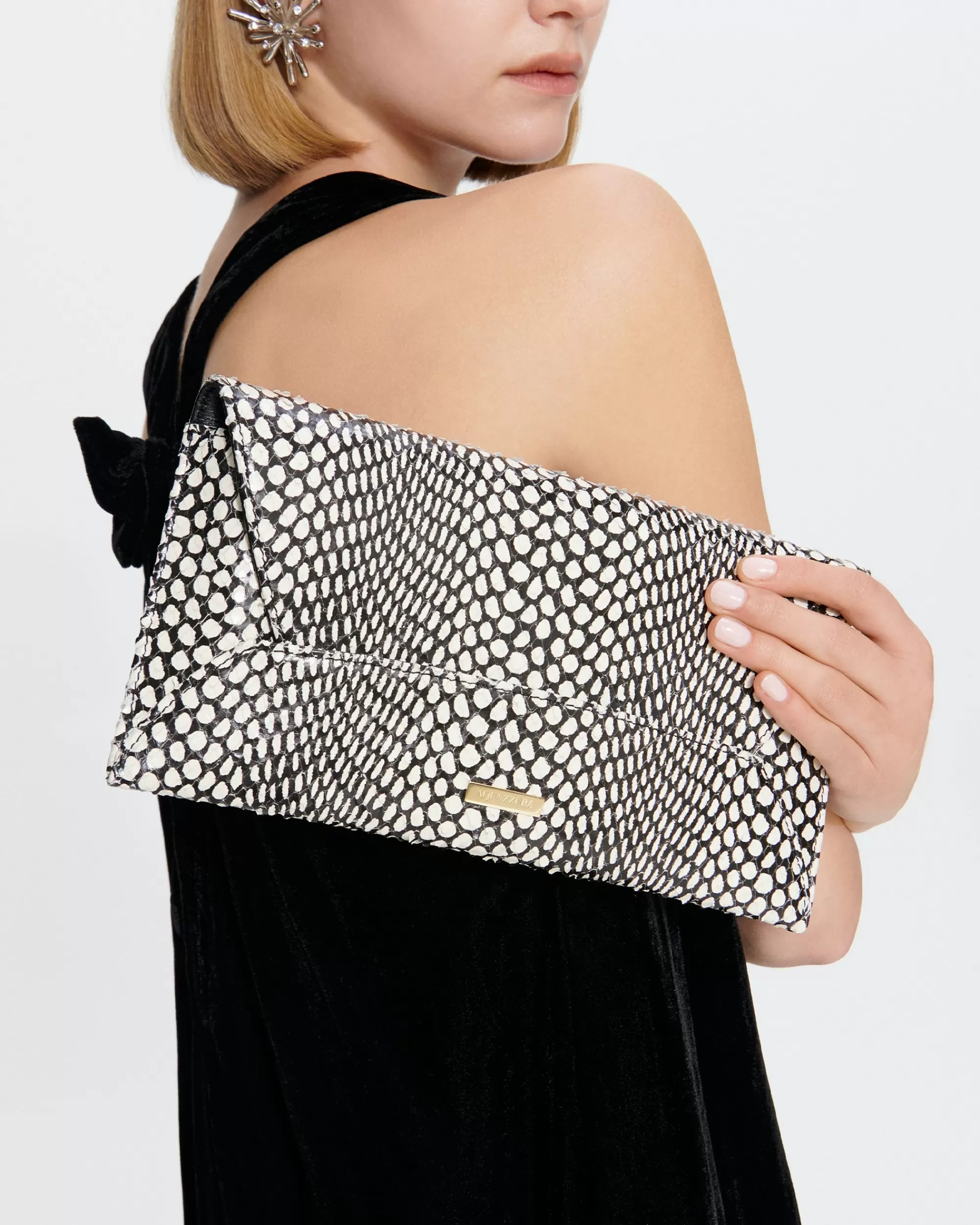 Covetable and contemporary, this Envelope Clutch is crafted from snake-effect leather and accented with a light-gold-ton…