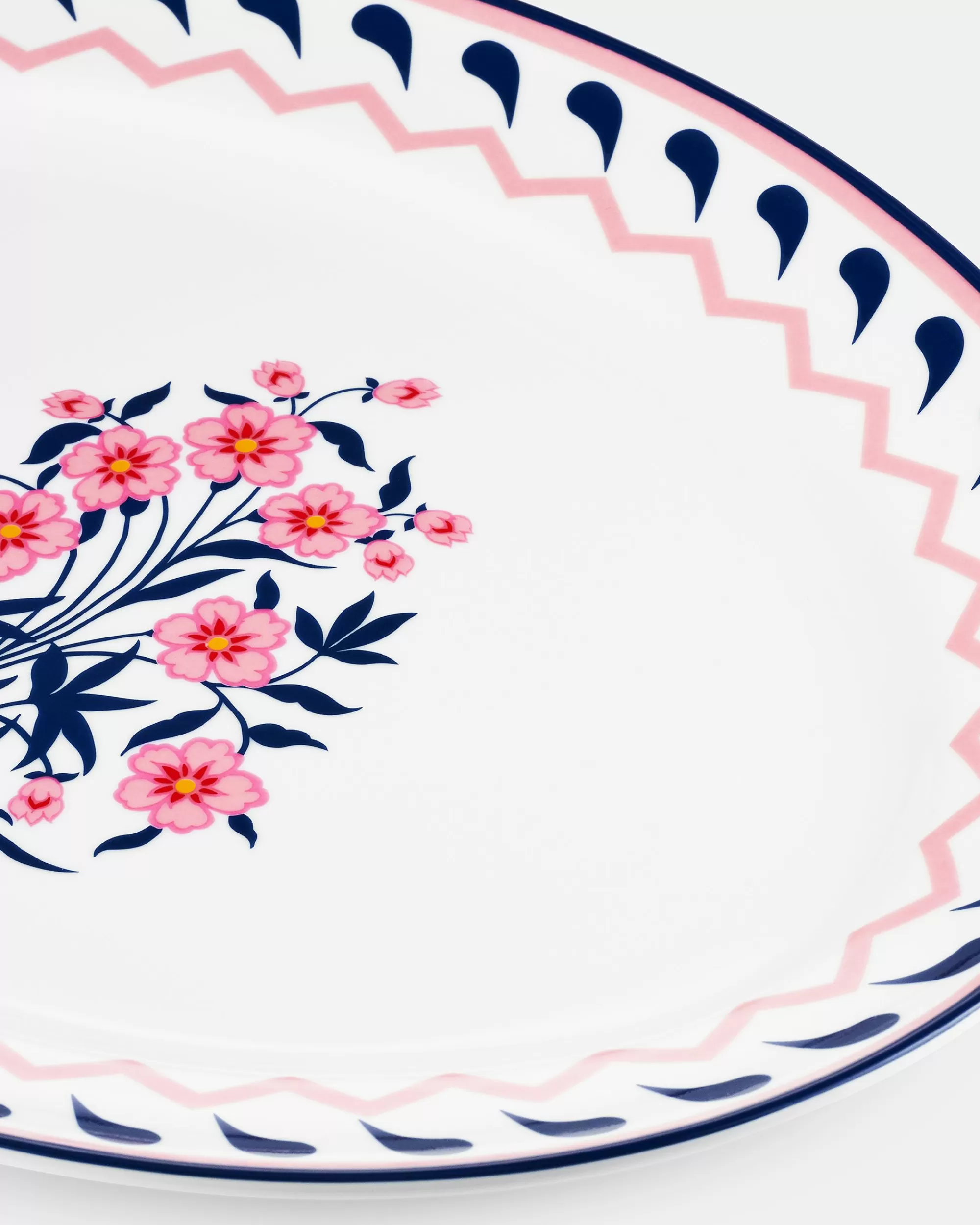 Our Jaipur Oval Platter makes a striking presentation for your tablescape. Crafted from porcelain and decorated with a p…