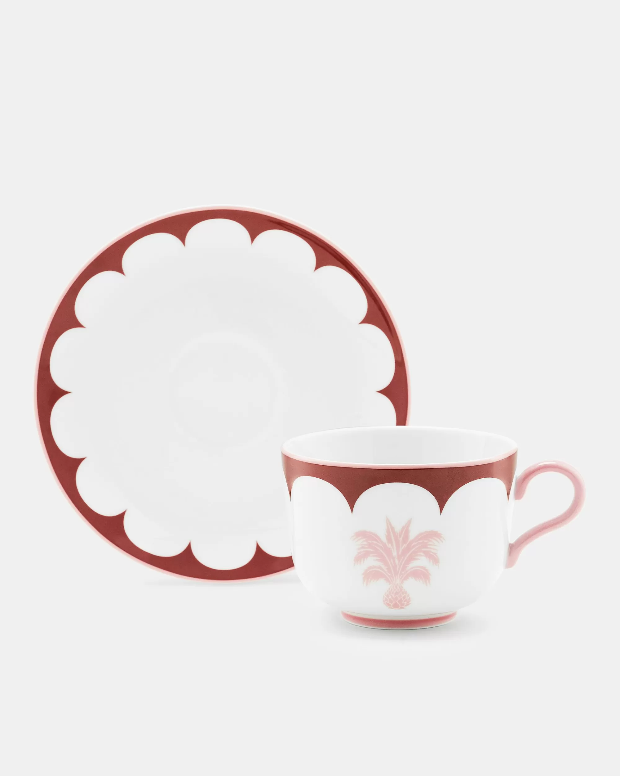 Add sophistication and style to your teatime ritual with our Jaipur Tea Set. Crafted from pure porcelain in in a bordeaux and pink pattern, the set includes two cups and two saucers which can be mixed and matched for an eclectic tablescape.