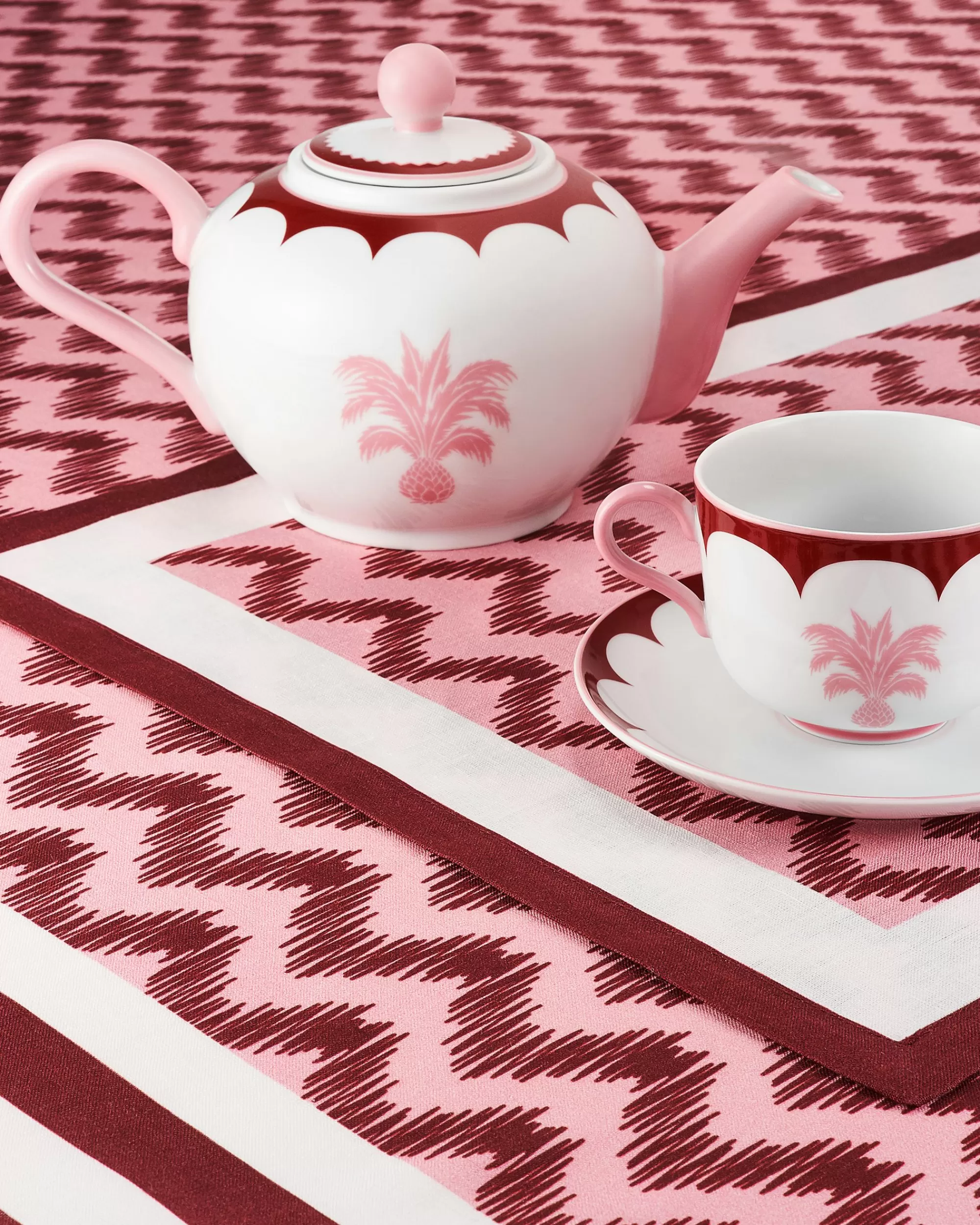 Our Jaipur Teapot is an essential for your afternoon tea experience. Made from high-quality porcelain in a bordeaux and pink pattern, the timeless design is embellished with exquisite hand-crafted details. Brighten your teatime with other pieces from the colorful collection.