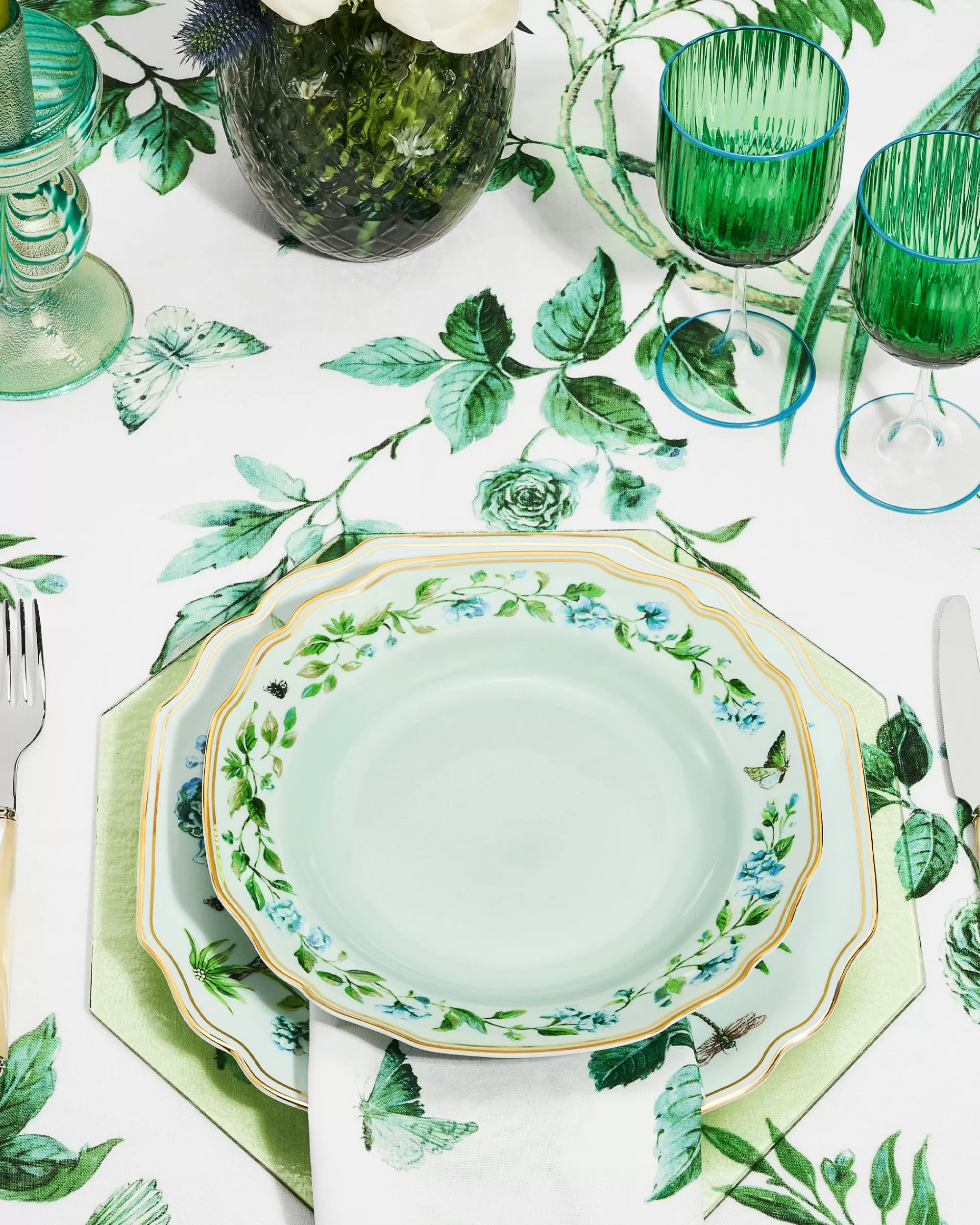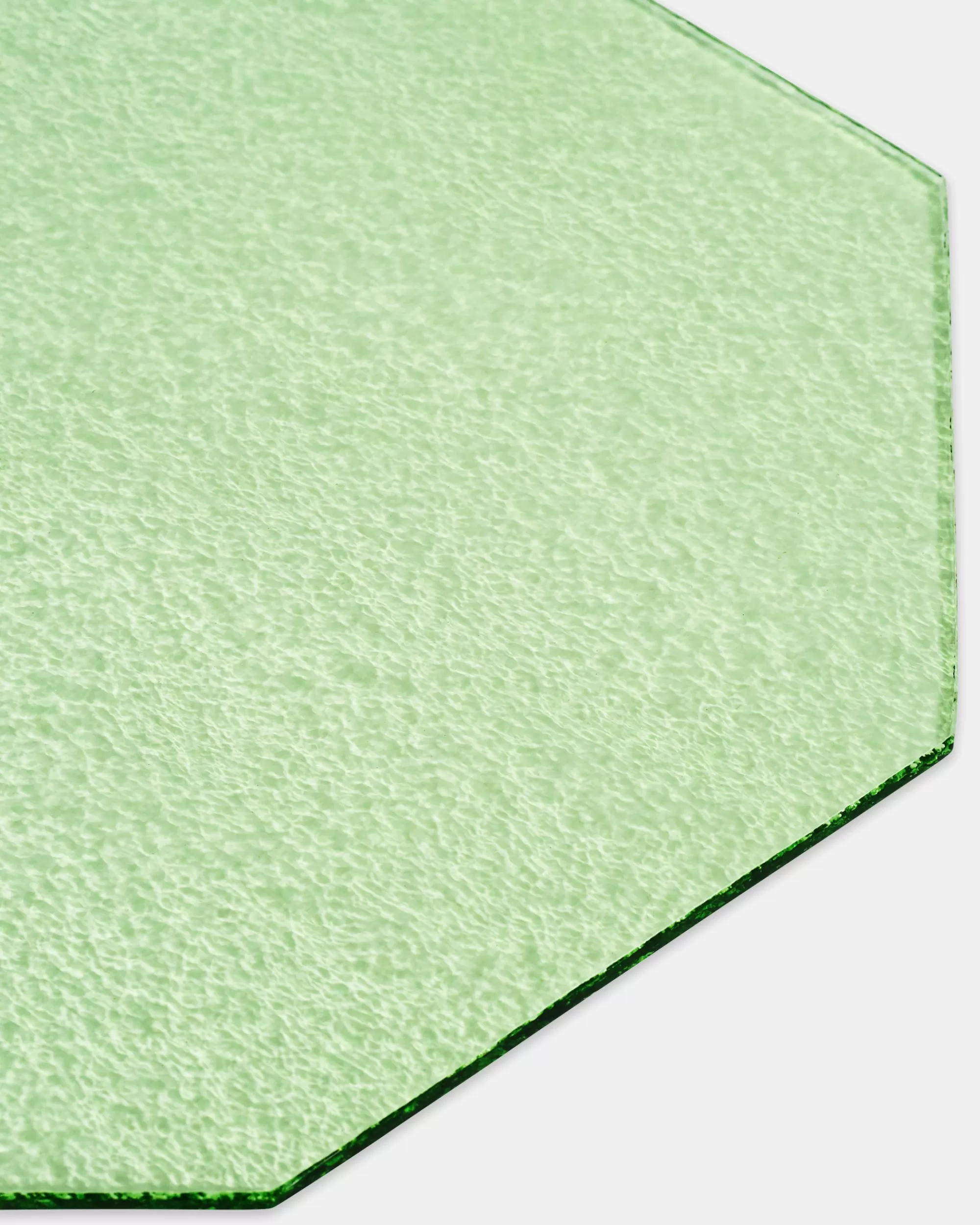 The Secret Garden collection draws from traditional 18th-century Chinese porcelain design, interpreted in lush, verdant tones. This large Charger Plate is crafted from luminous glass in a light green hue, with a perfectly flat octagonal shape that lends a modern touch. Mix and match with other pieces from this enchanting, botanical-inspired range.