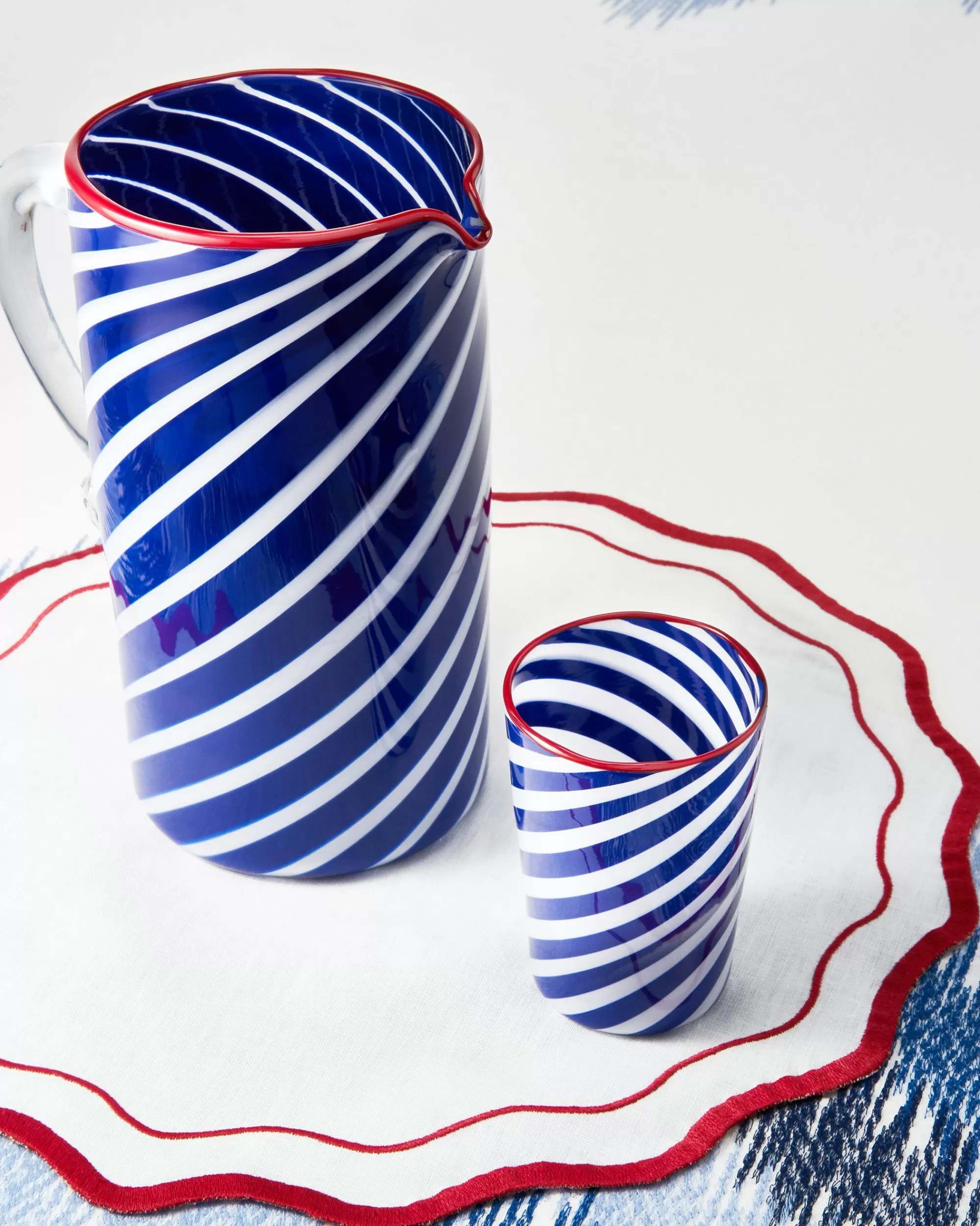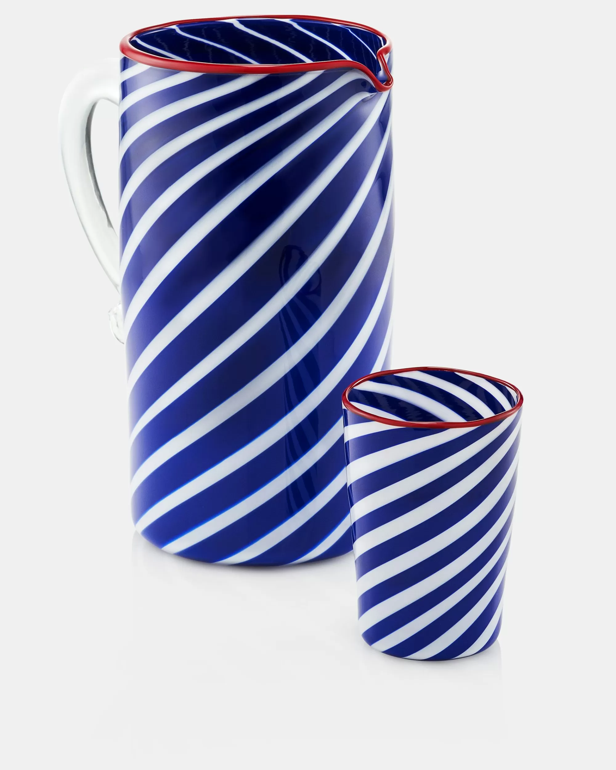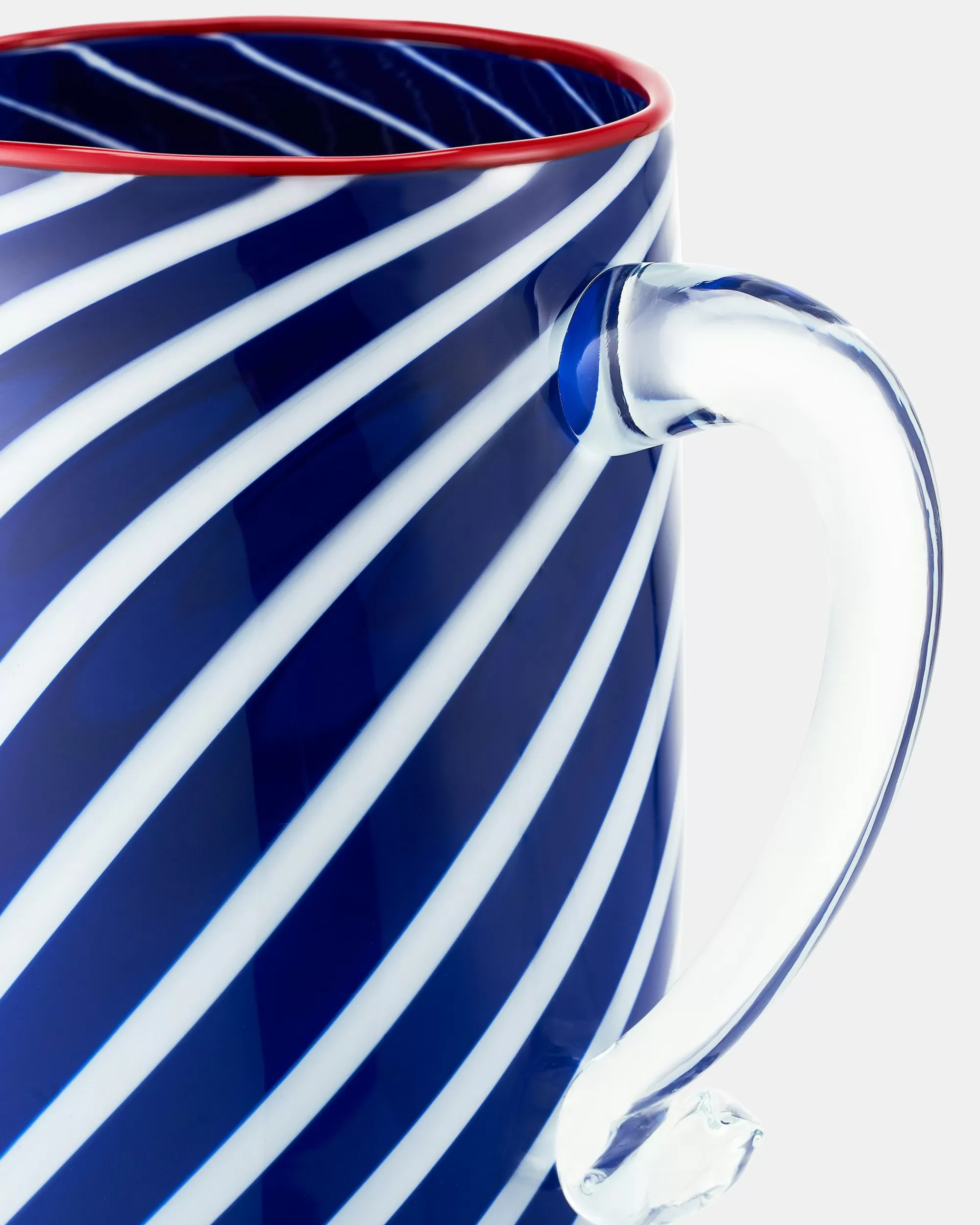 Give your tablescape a refresh with our Lido Jug. Crafted from handblown Murano glass in shades of red, white and blue, the piece will decorate a casual garden party or a sophisticated dining experience. Let it be a vessel for freshly picked flowers when you are not serving refreshments.