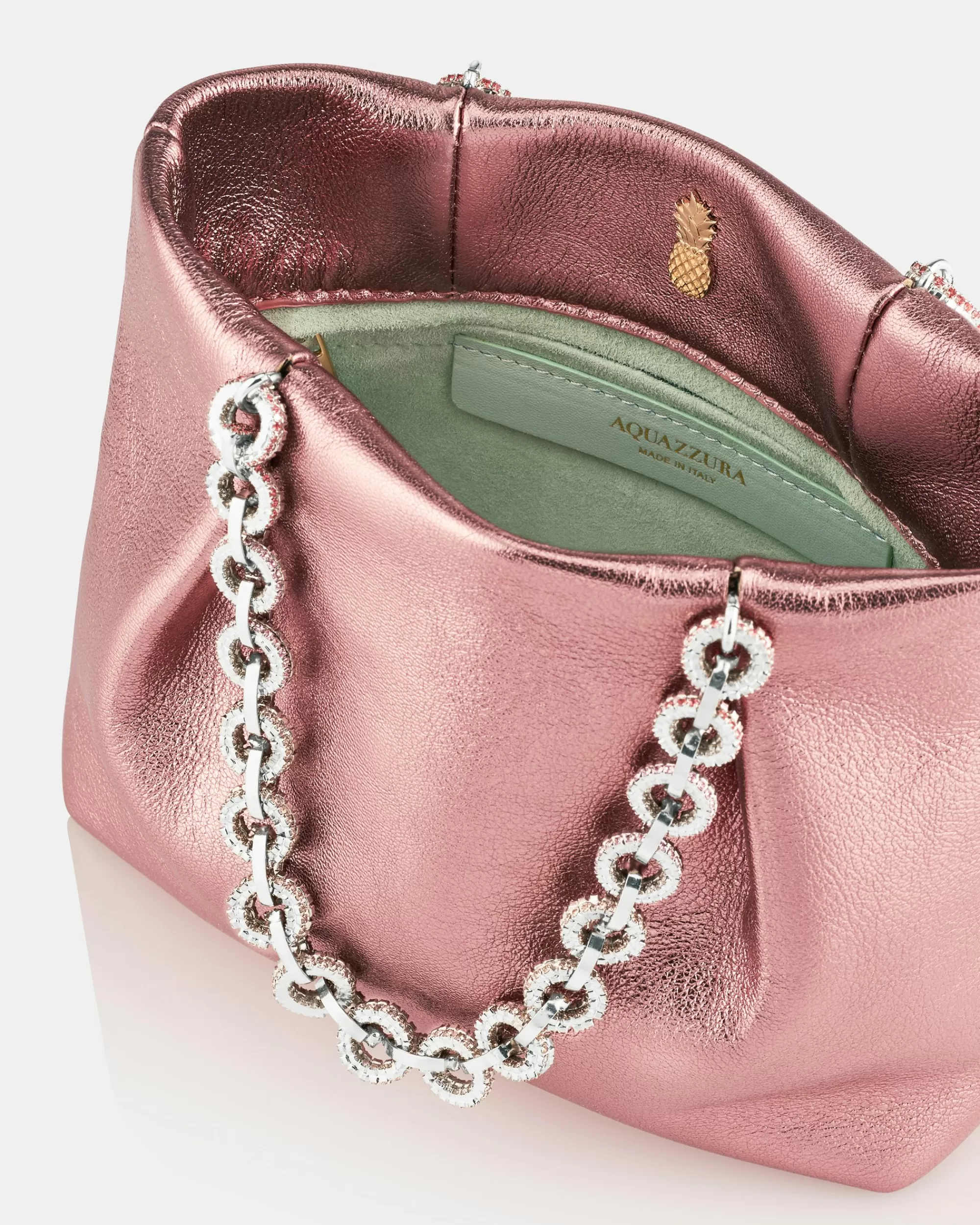 The Love Link Mini Tote is named after one of Aquazzura’s iconic sandals and perfectly embodies the house’s precious and feminine aesthetic. The bag is crafted in Italy from ultra-soft metallic nappa and features a stunning chain handle studded with micro crystals. The succulent watermelon-pink hue will compliment your most elegant ensembles.