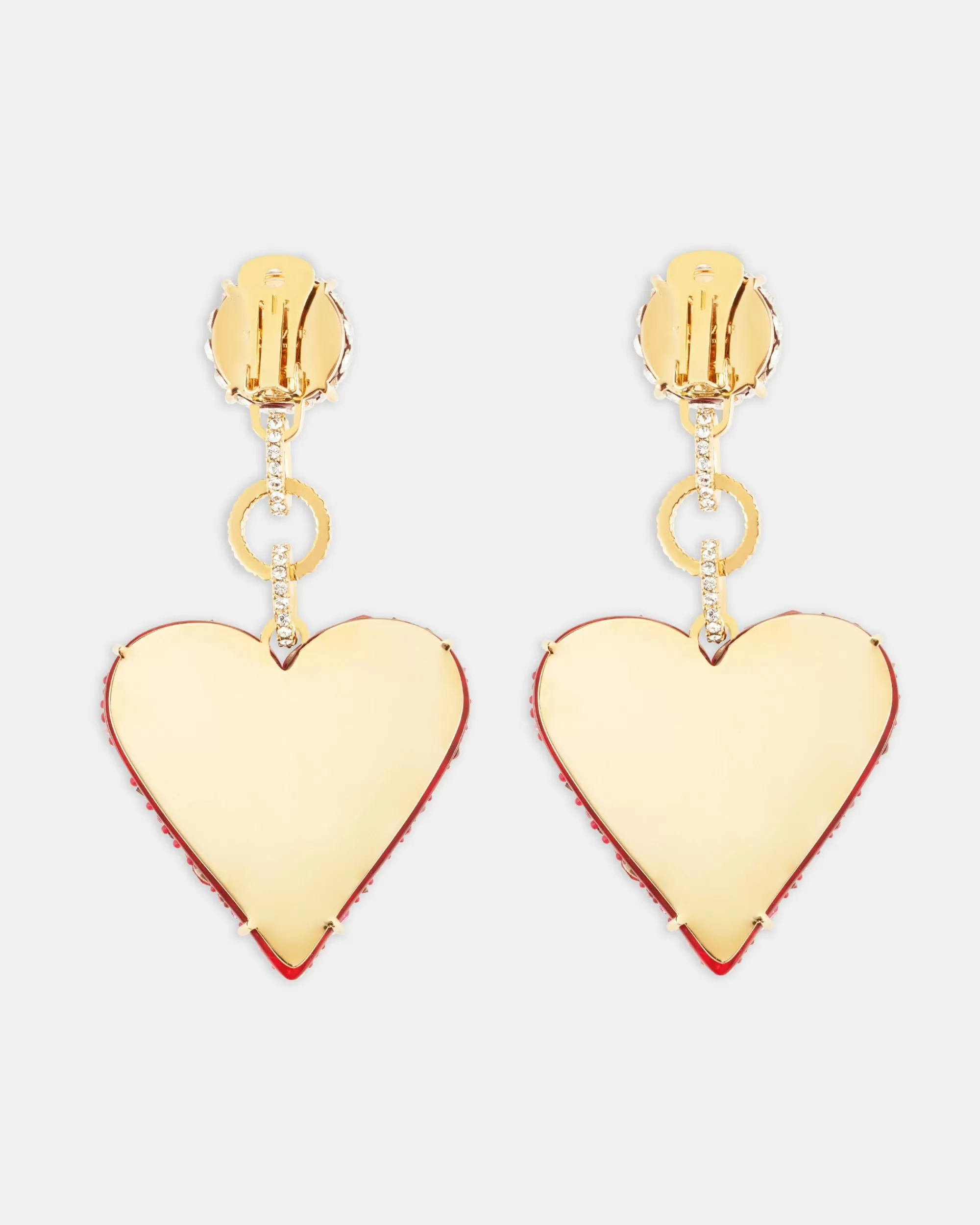 Wear your heart boldly in our Love Me Earrings. Designed from gold-toned brass and strass, the drop style features an enchanting heart in brilliant shades of red. Keep them on display with a chic, low ponytail.