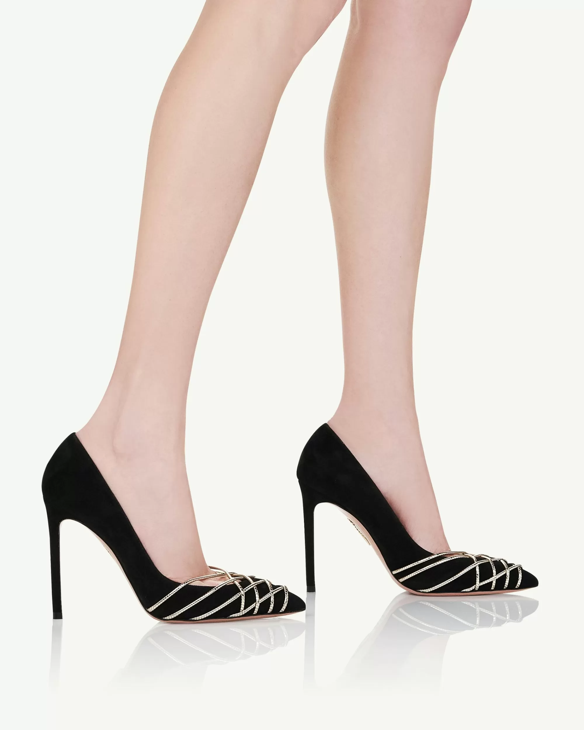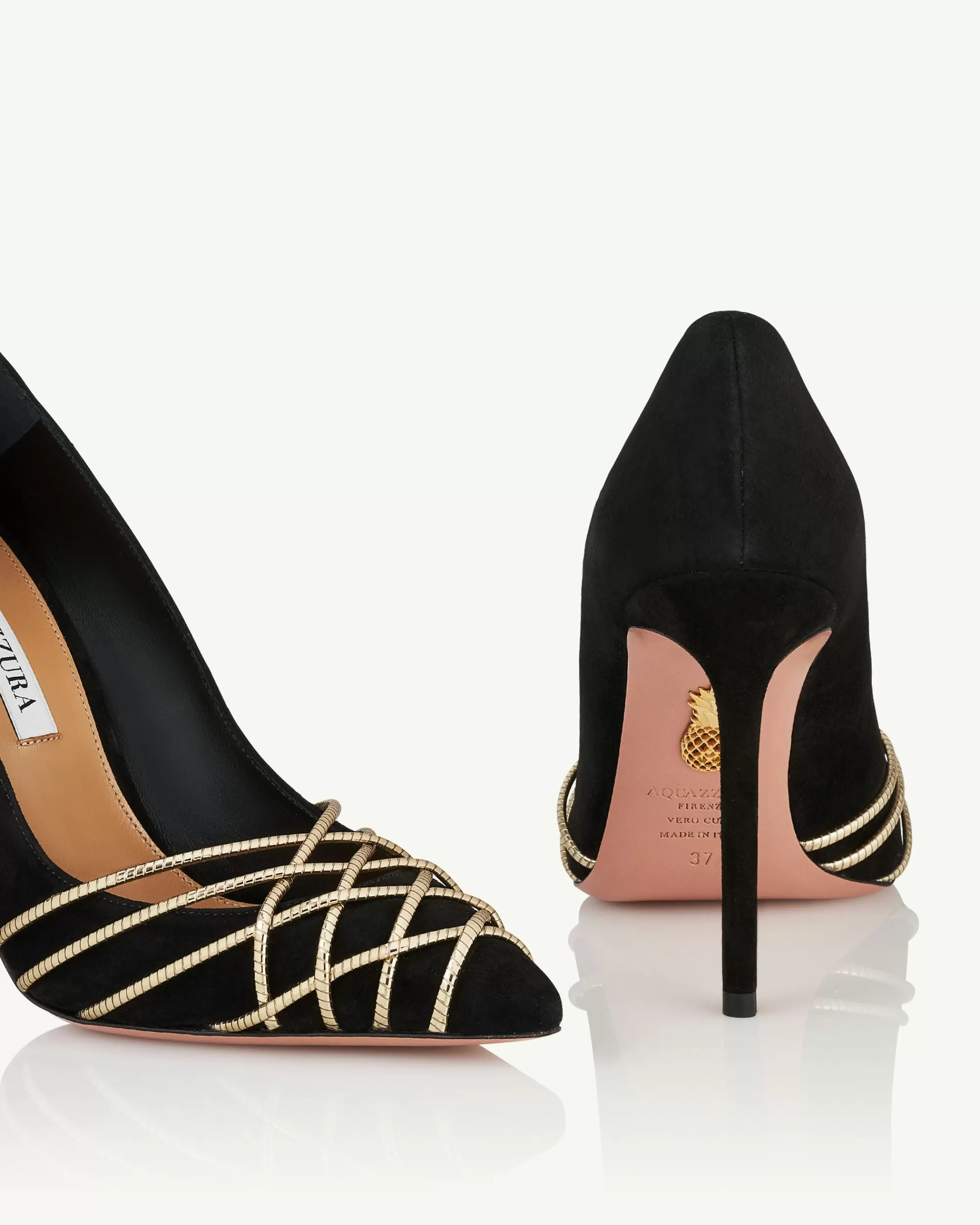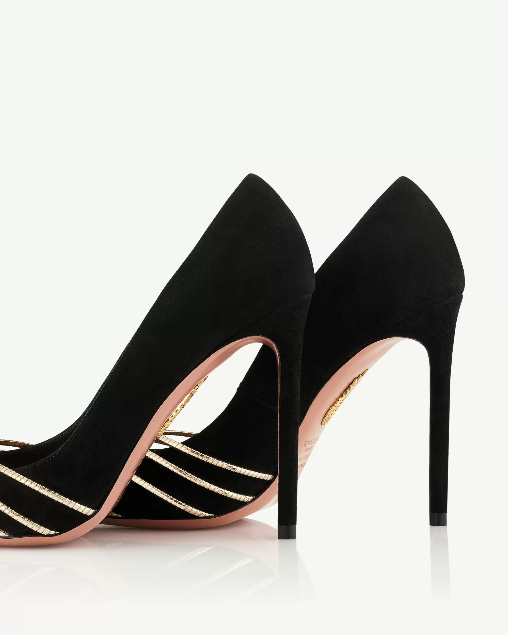 The Magnetic Pumps showcase an intricate, interlaced motif that lends depth and dimension to the classic pointed-toe silhouette. Crafted from black suede and Soft Gold metallic leather, theyre set on towering 105 mm heels that instantly flatter and elongate the legs.