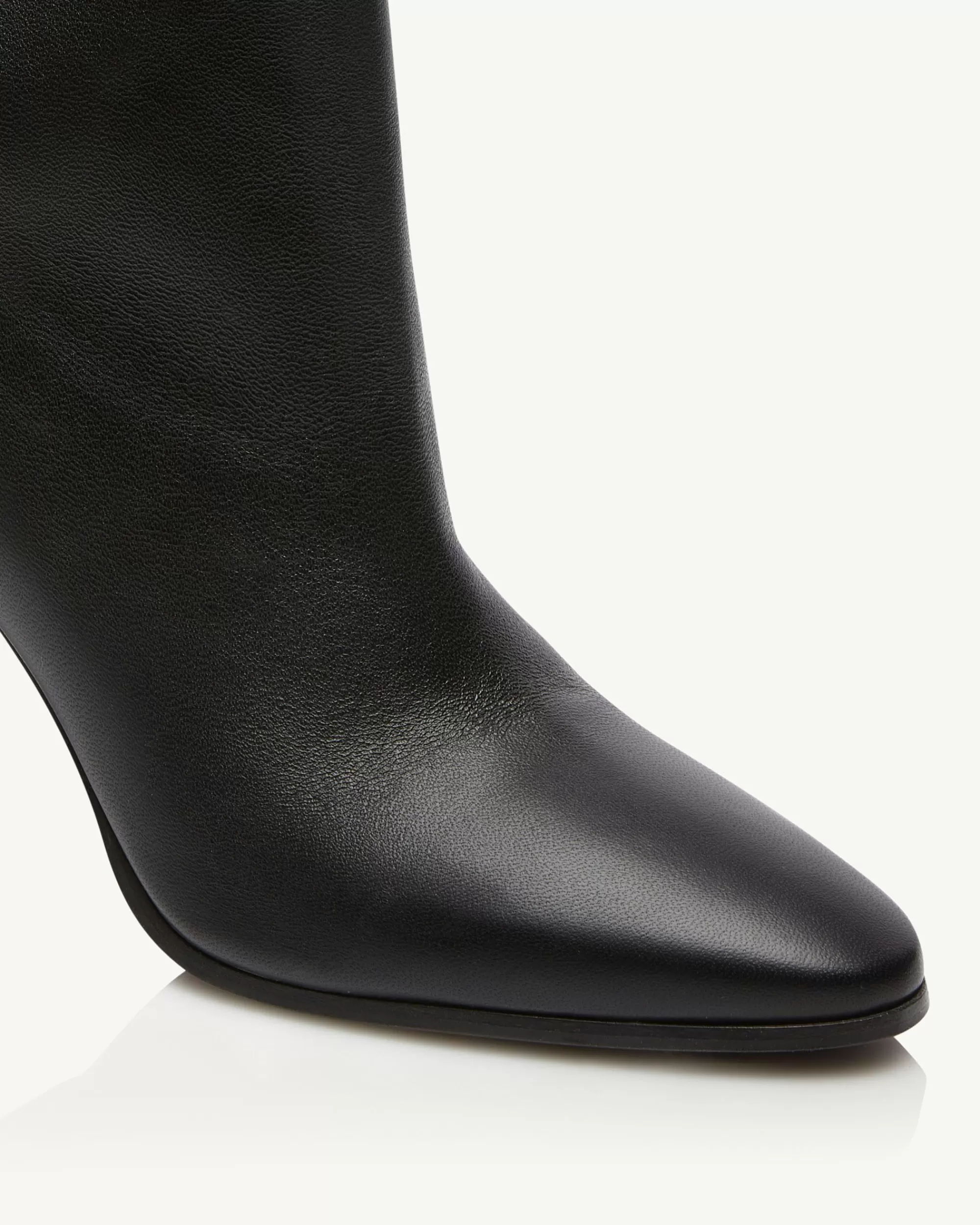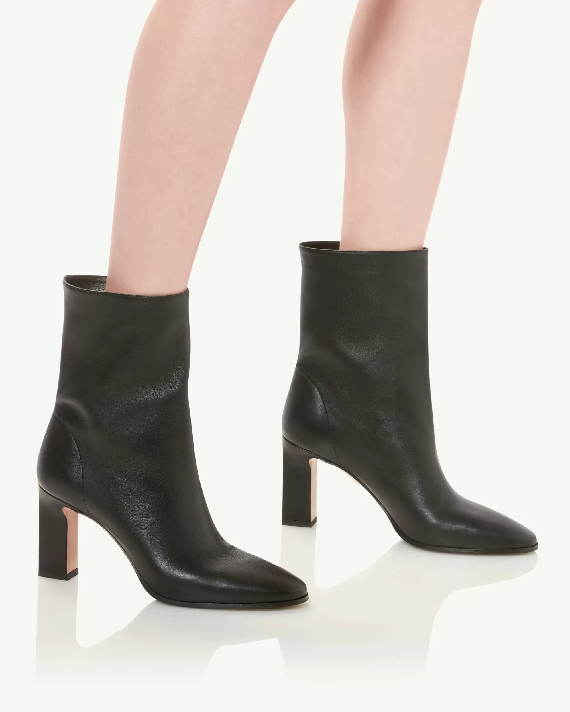 Our Manzoni Bootie is a sophisiticated and timeless silhouette you will wear from season to season. Italian-crafted from soft and supple nappa in rich black, the style is shaped to a sleek, pointy toe and balanced on a chunky mid heel. Pair with your favorite skinny jeans.