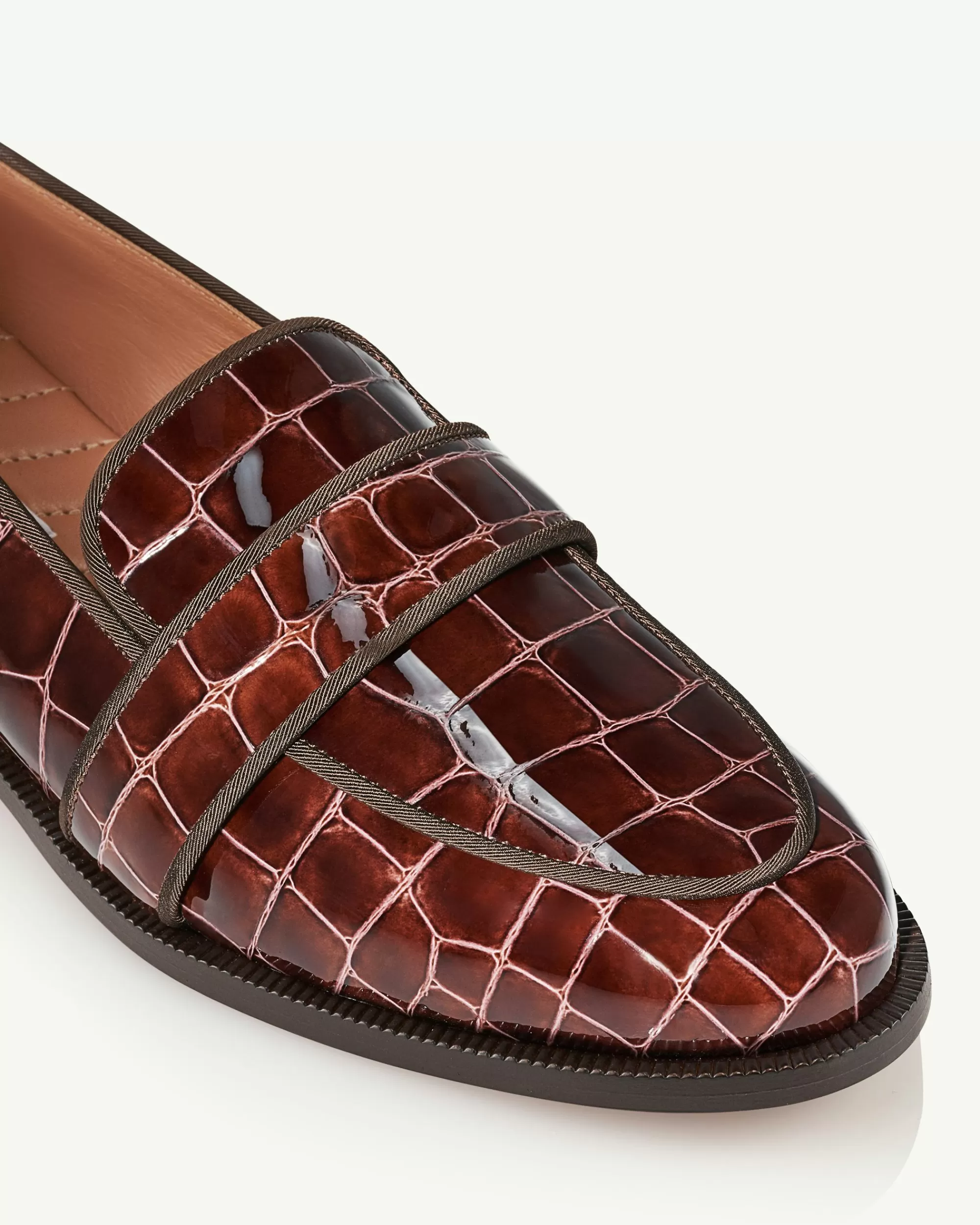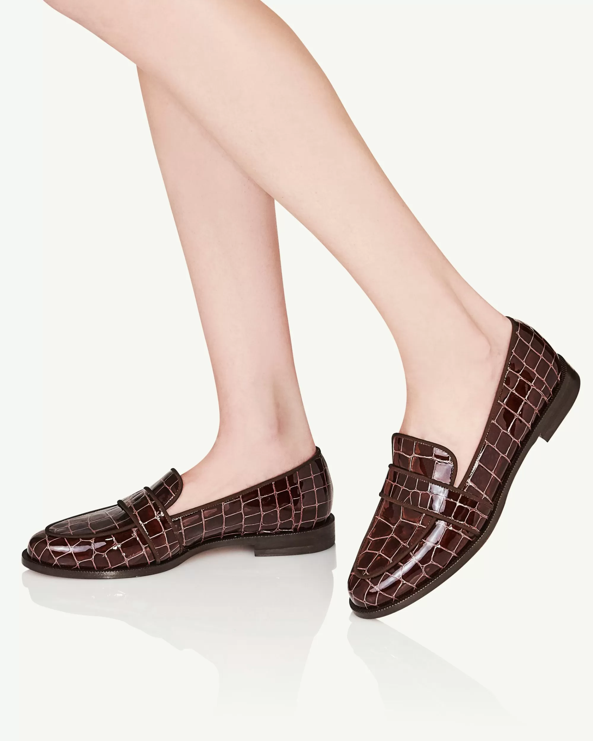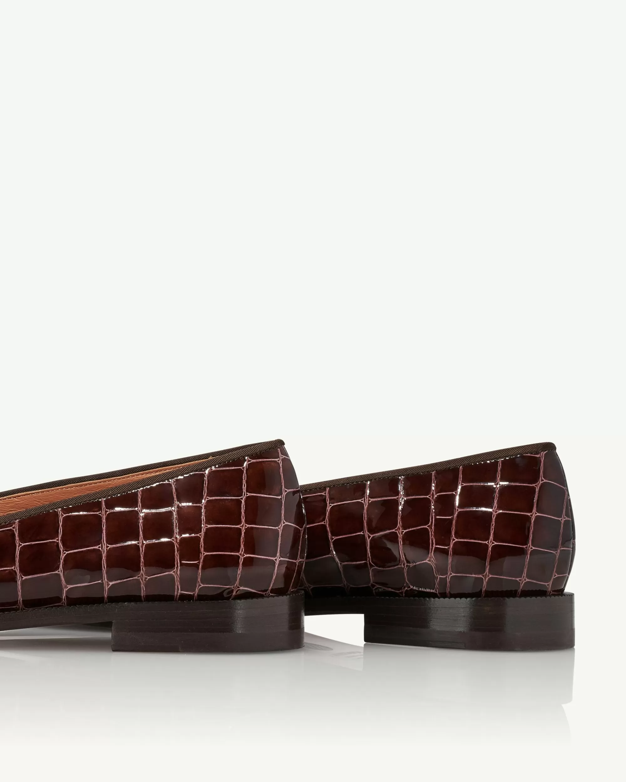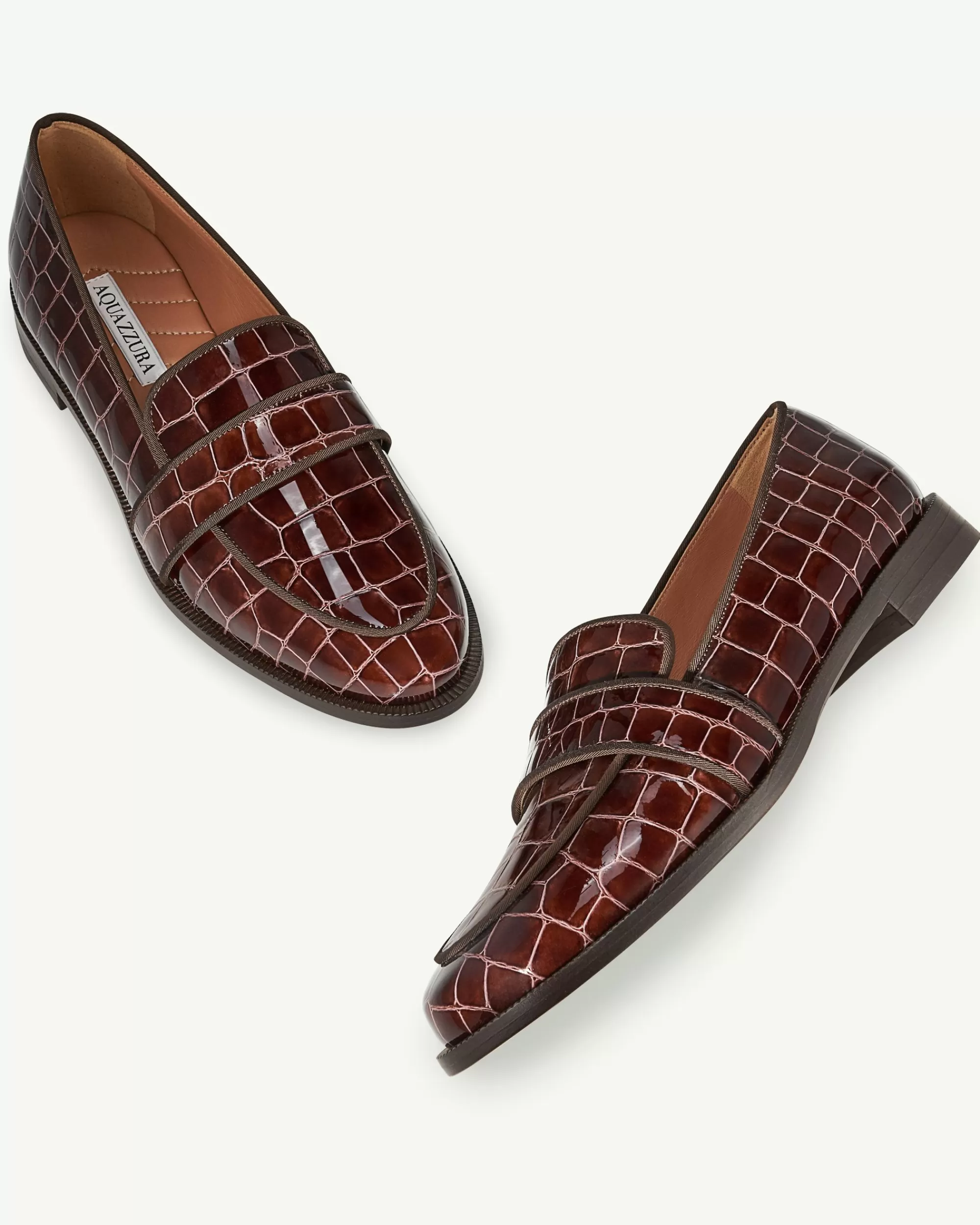 Every woman should own a classic pair of loafers in her wardrobe. Case in point: our Martin Moccasins refreshed in a dark-brown ‘Espresso’ shade. Crafted from croc-embossed leather and grosgrain, the effortless silhouette features a round toe, a notched vamp and a 25 mm heel offering a little lift.