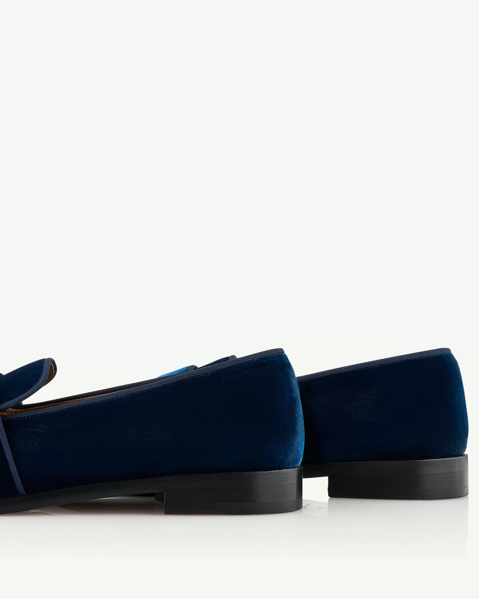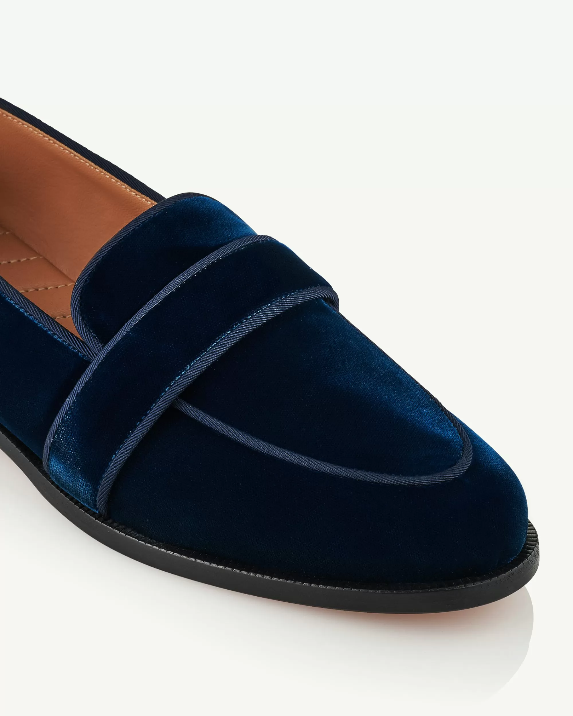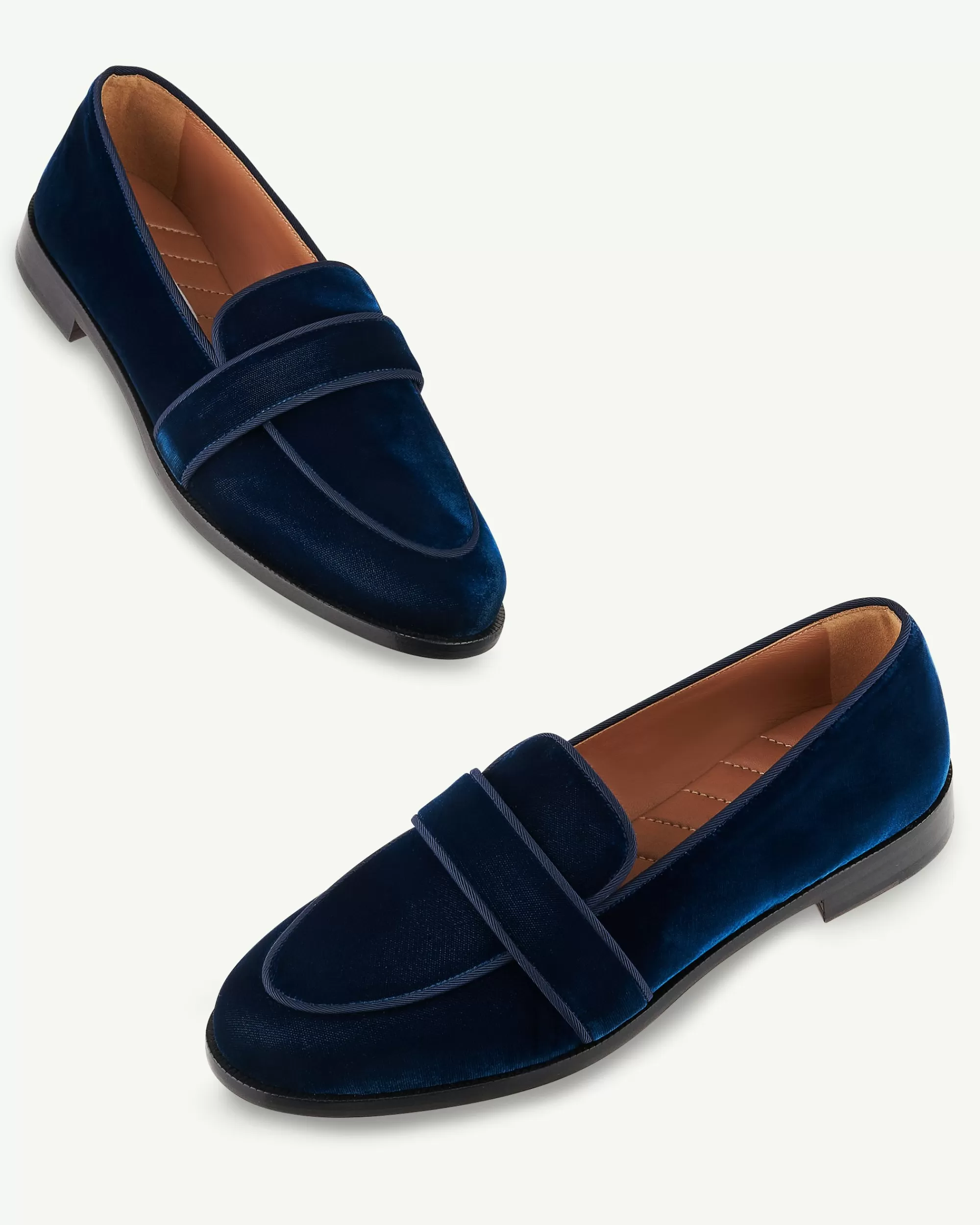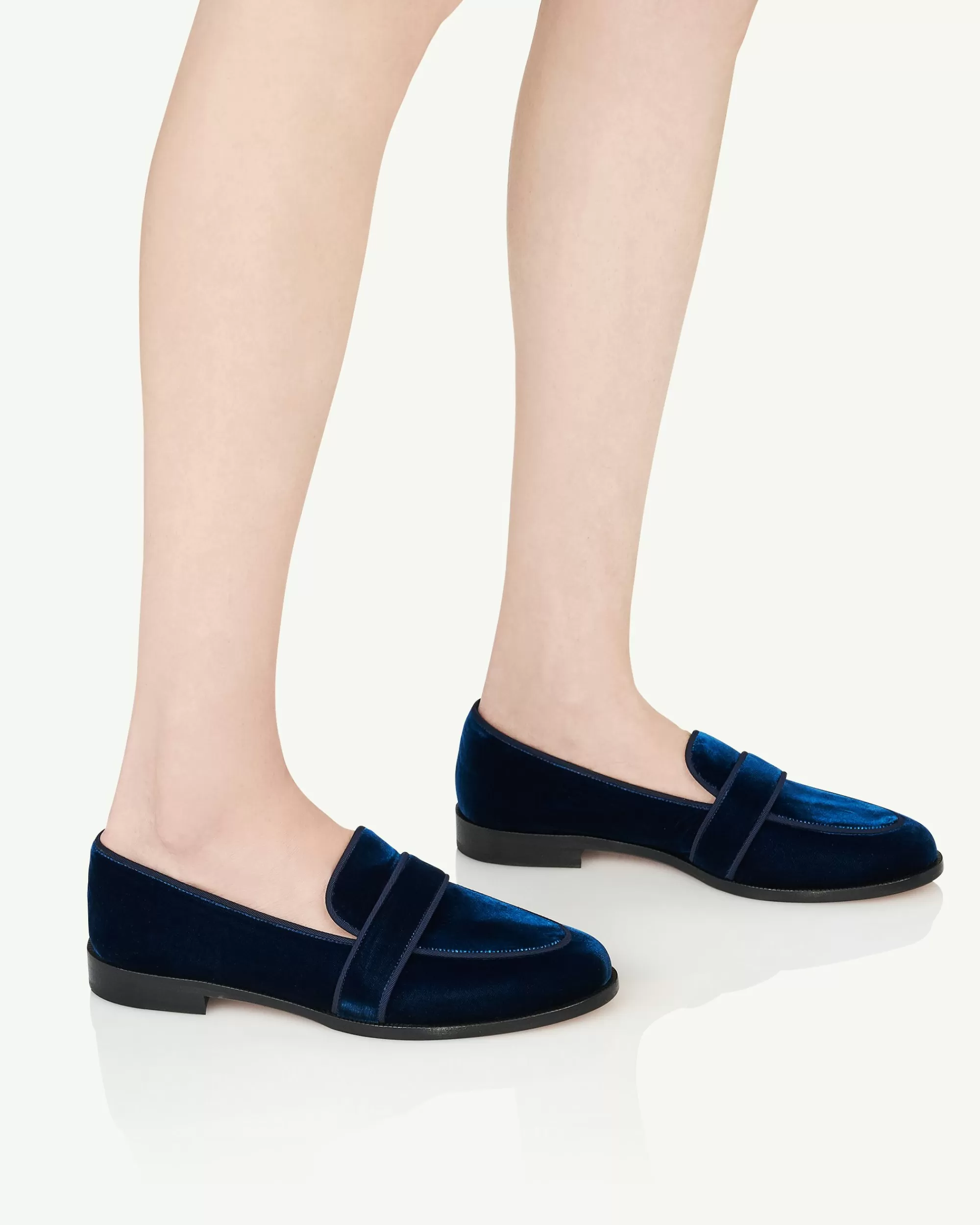Every woman should own a classic pair of loafers in her wardrobe. Case in point: our Martin Moccasins refreshed in a regal Paris blue colourway. Crafted from plush velvet and grosgrain, the effortless silhouette features a round toe, a notched vamp and a 25 mm heel offering a little lift.