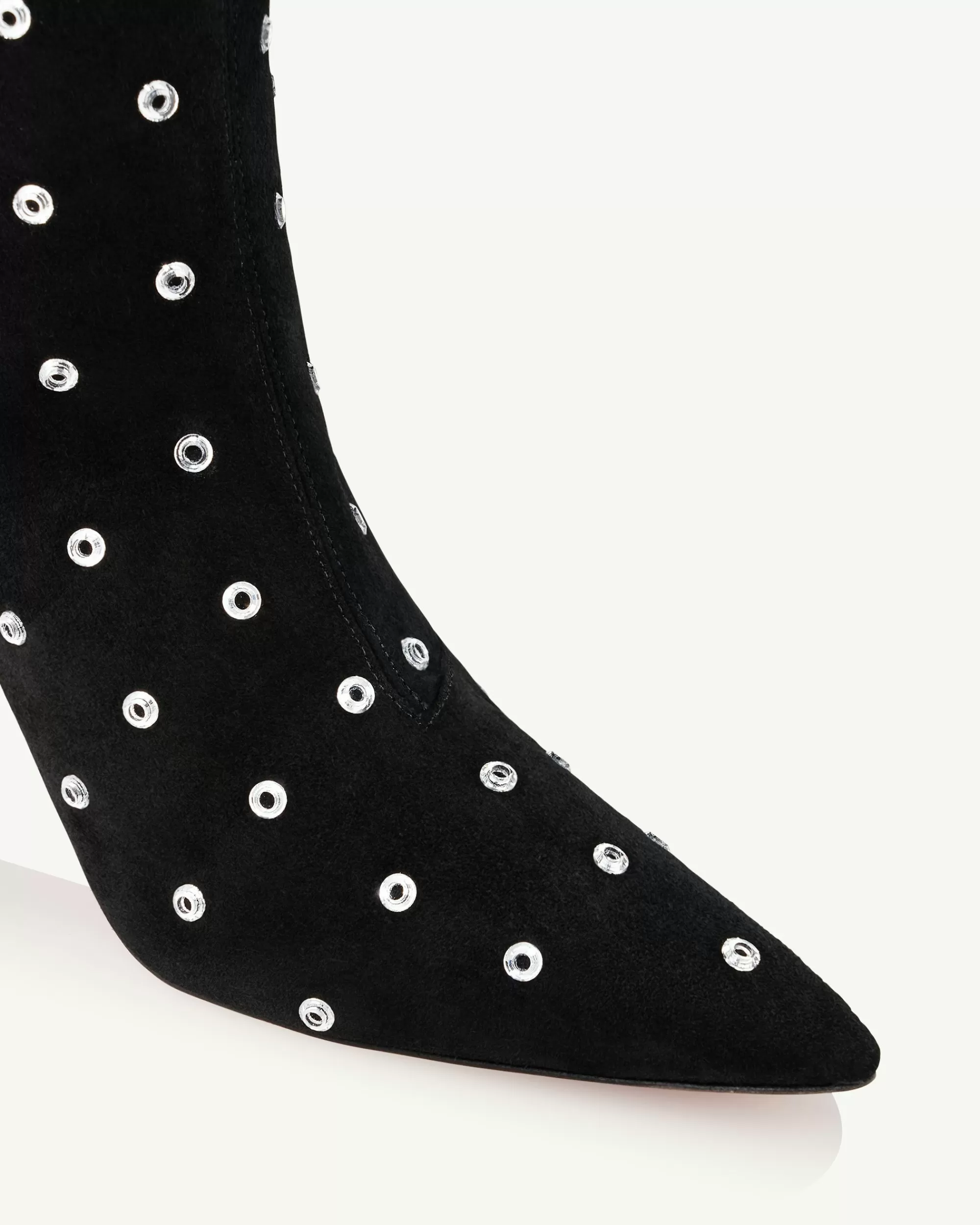 Effortless yet edgy – the Matignon Crystal Booties are made from supple black suede, punctuated with all-over eyelets, and have elegant 75 mm heels. Treat these Italian-made must-haves with the care they deserve, and theyll be a favourite for years.