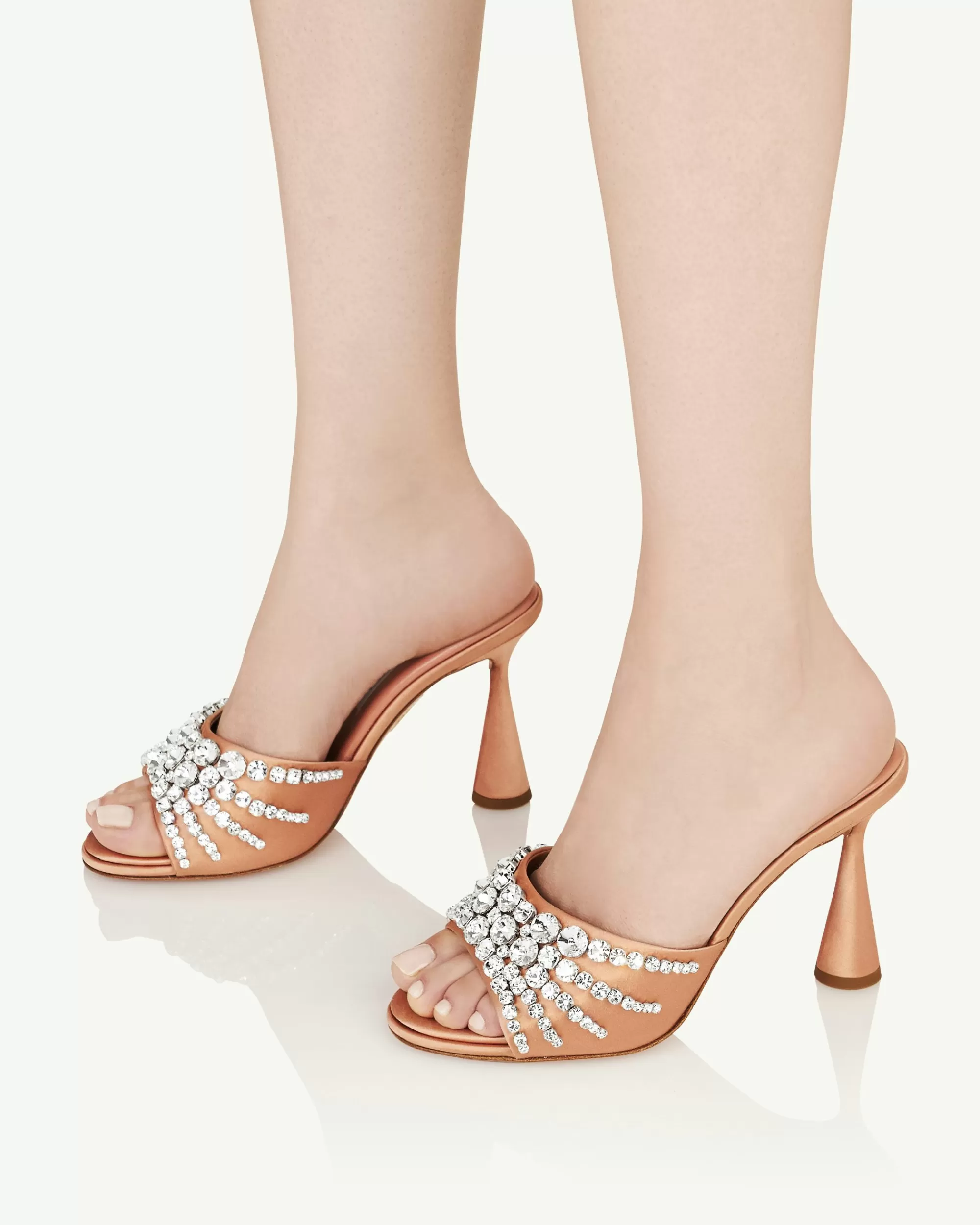 Our Max Crystal Mules lend maximalist glamour to any look. The barely-there silhouette is crafted from lustrous satin an…