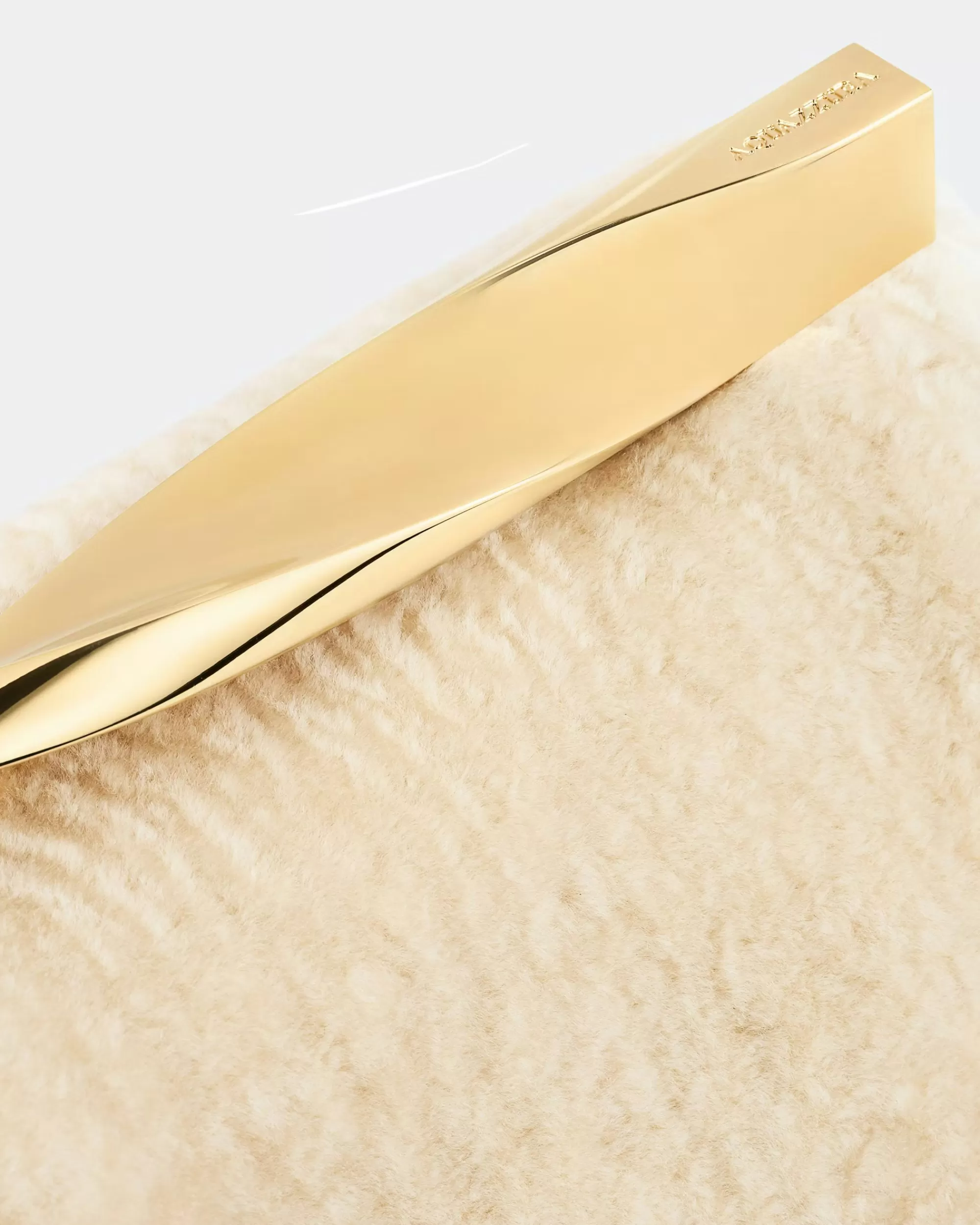 Our signature Twist Clutch downsized to mini proportions. Made from plush shearling and tan leather, this playful iterat…