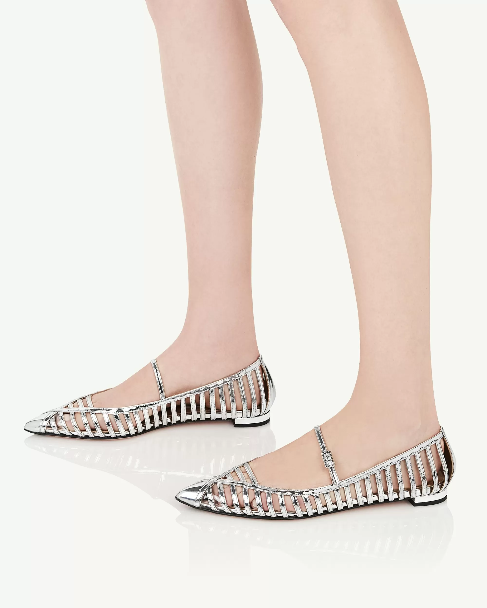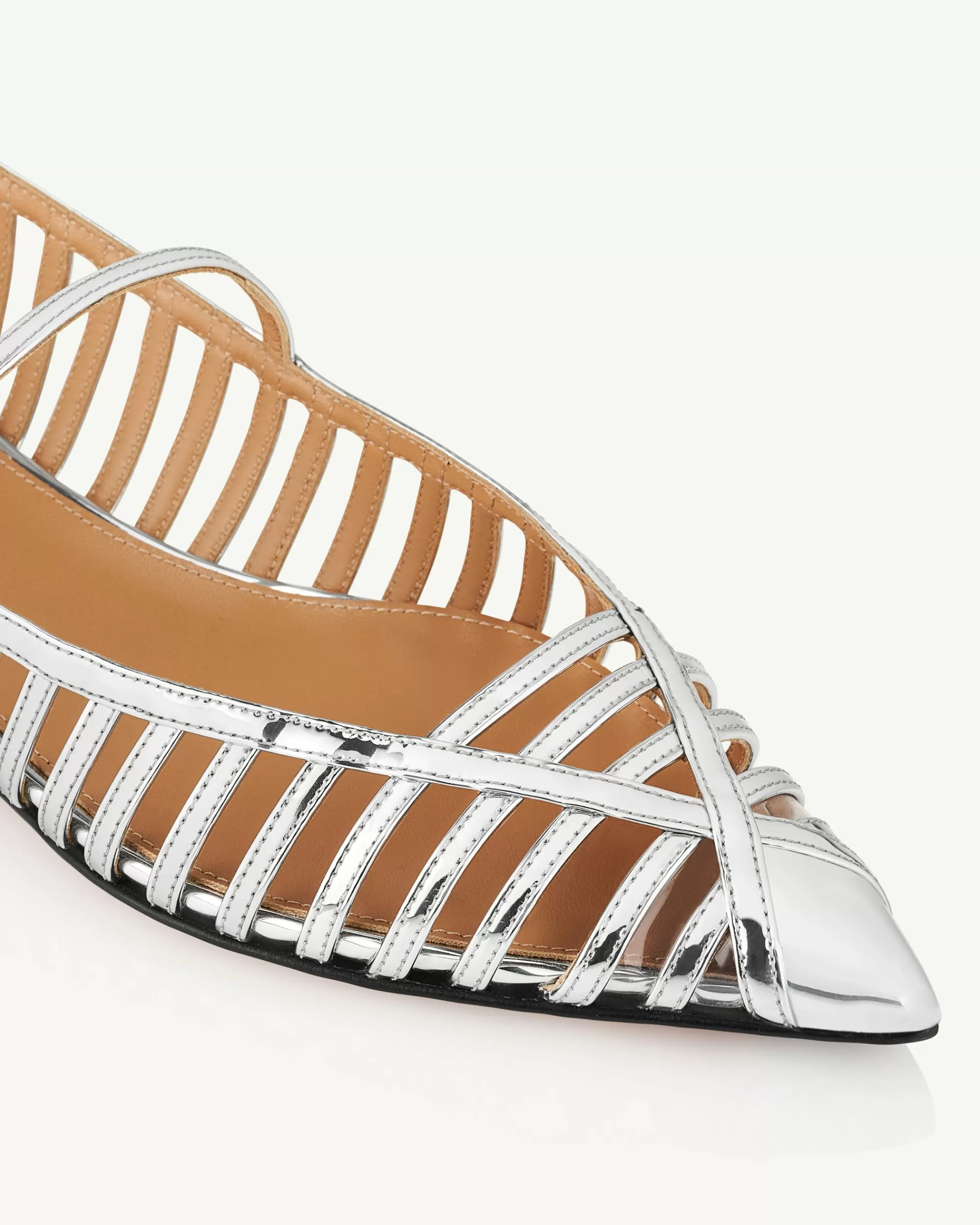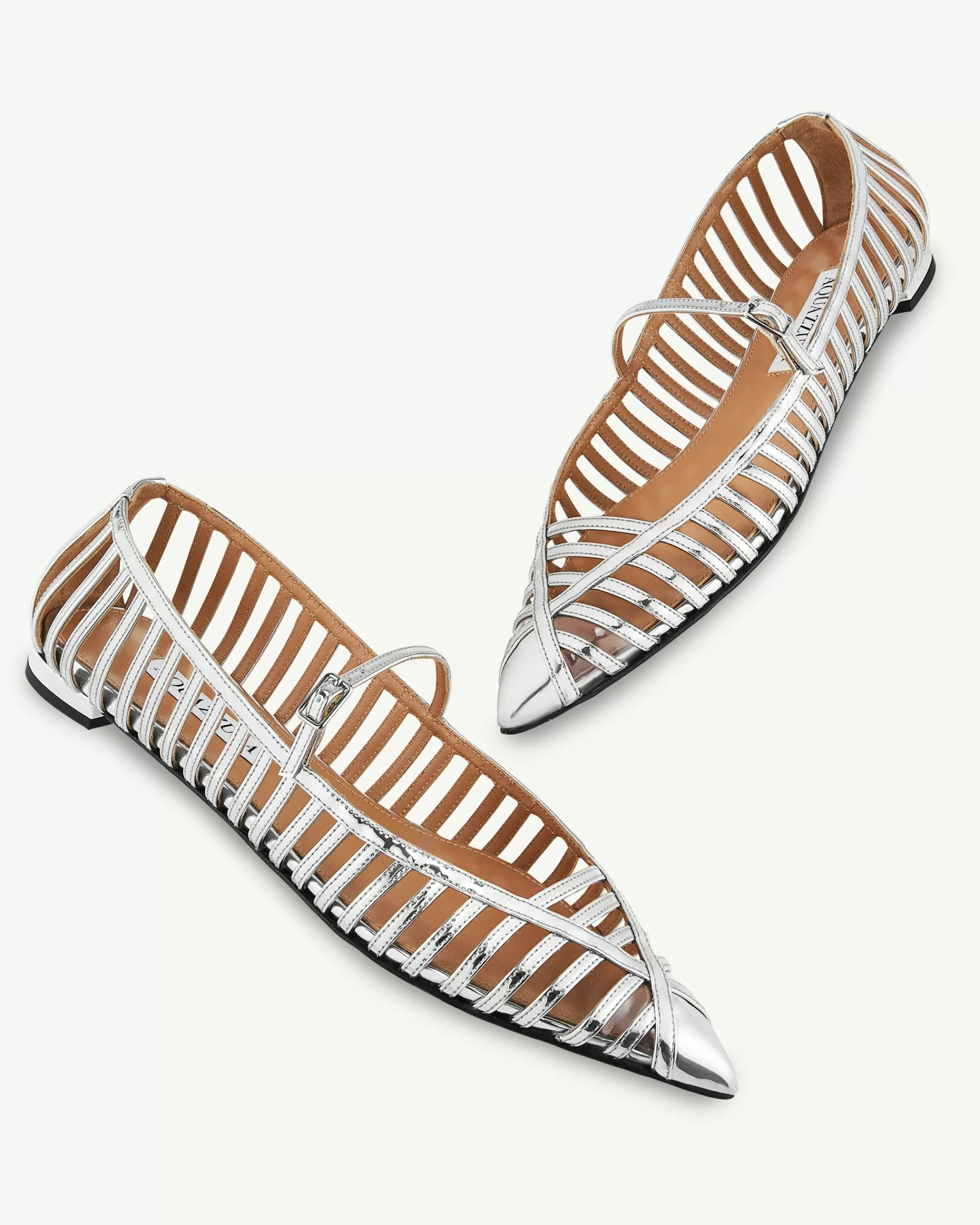 From the classic Mary Jane profile to the striking silver hue – these Moonlight Dancer Flats are a forever addition to your closet. Crafted from strips of metallic leather to create a cage-like silhouette, they feel on-trend but beautifully timeless, too.