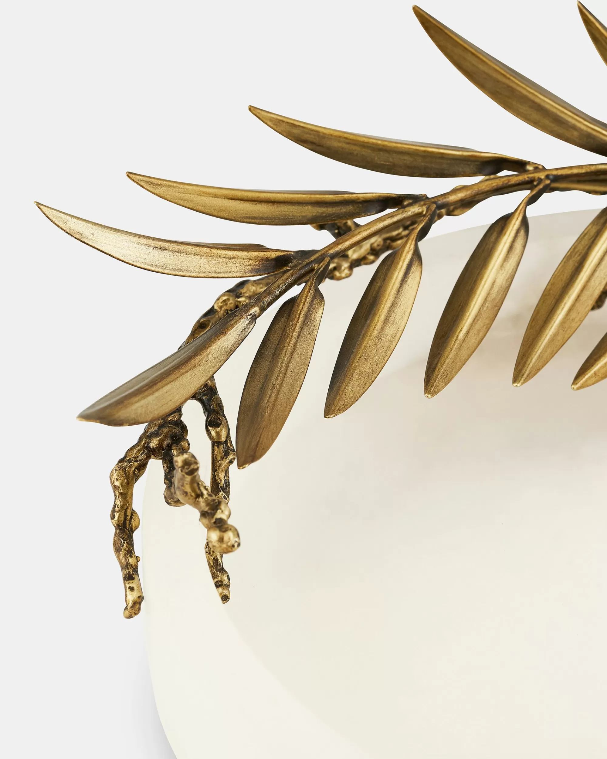 Our Palm Vide Poche is a striking style for your entryway or bedroom. Crafted from smooth alabaster, the design is highlighted with a gleaming palm leaf. Let it hold loose change, jewelry or any other small object.