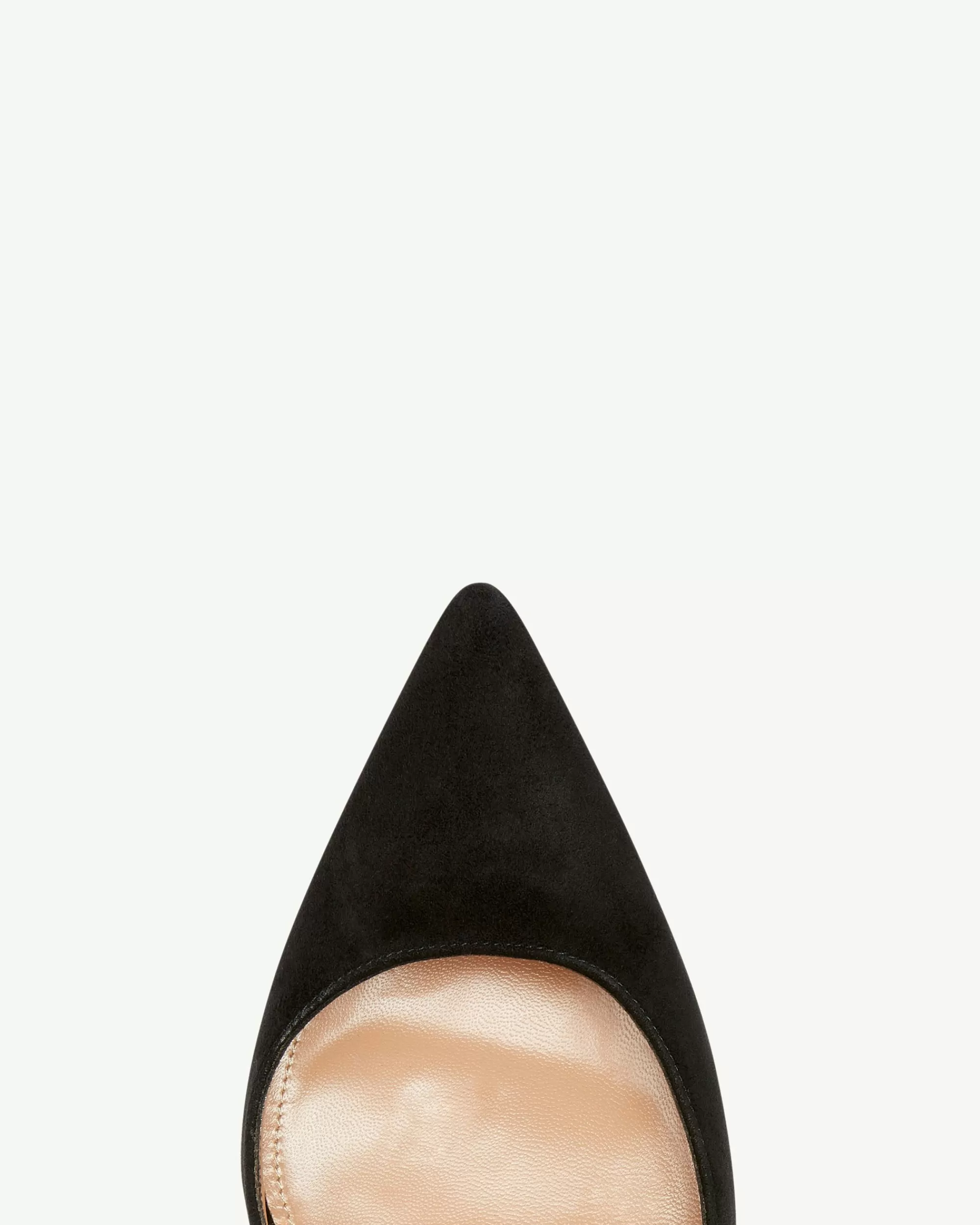 Our Purist Pumps are an essential wardrobe staple that will take you effortlessly from season to season. Meticulously crafted in Italy from buttery suede in rich black, this sleek pointed-toe style is balanced on a slenders tiletto heel. The pair adds the perfect finish to any ensemble.