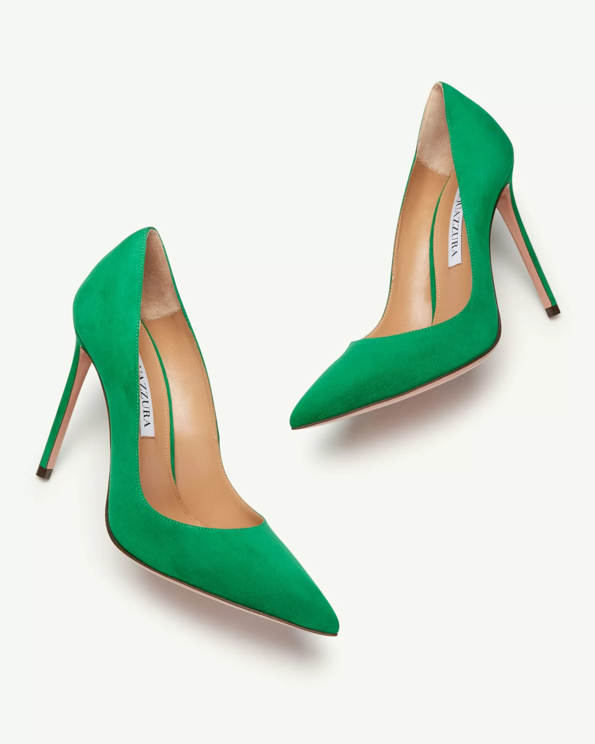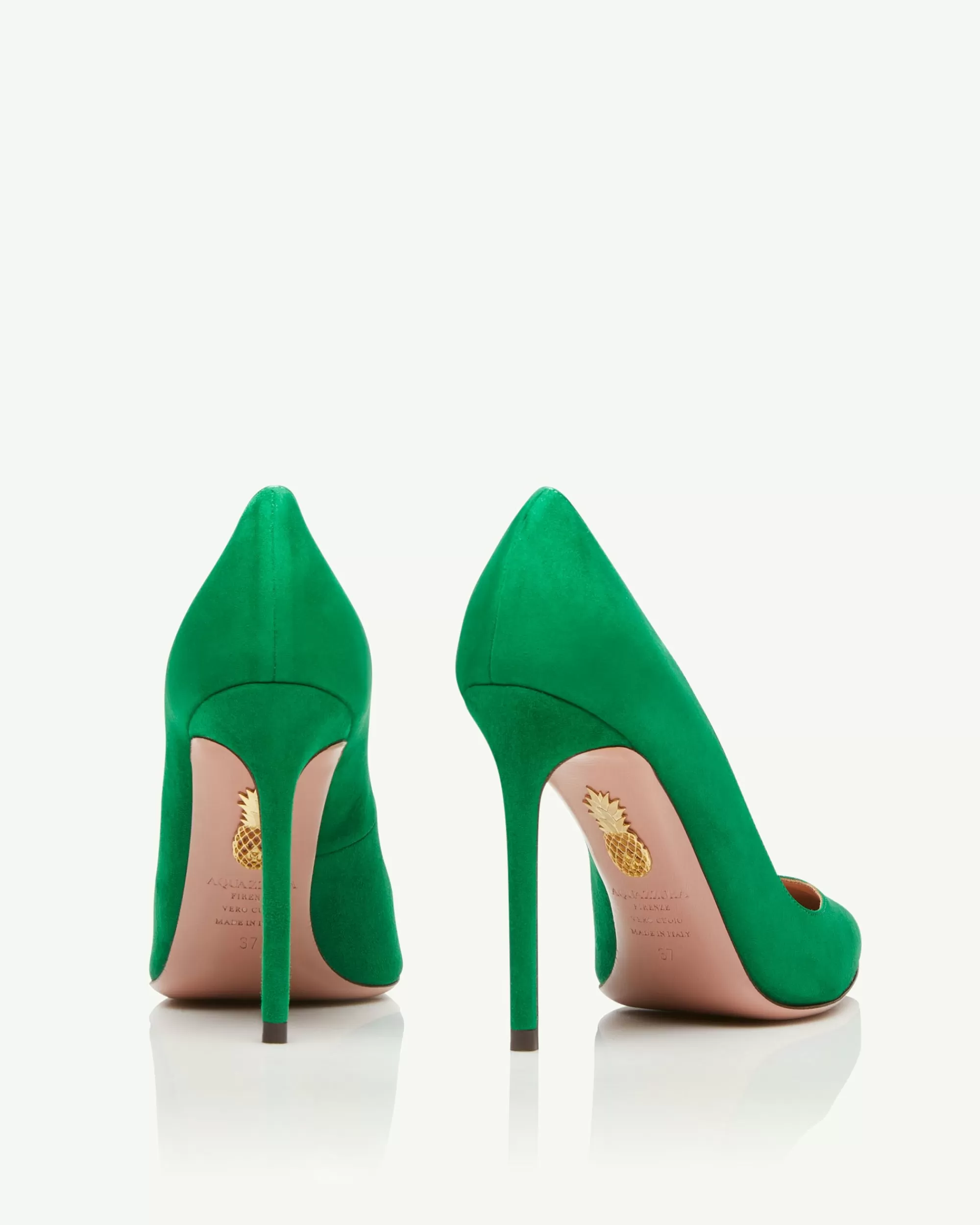 Our Purist Pump is an essential wardrobe staple that will take you from season to season. Italian crafted from velvety suede in lavish rich emerald, the sleek pointed toe style is balanced on a slender, stiletto heel. Pair with a chic mini.