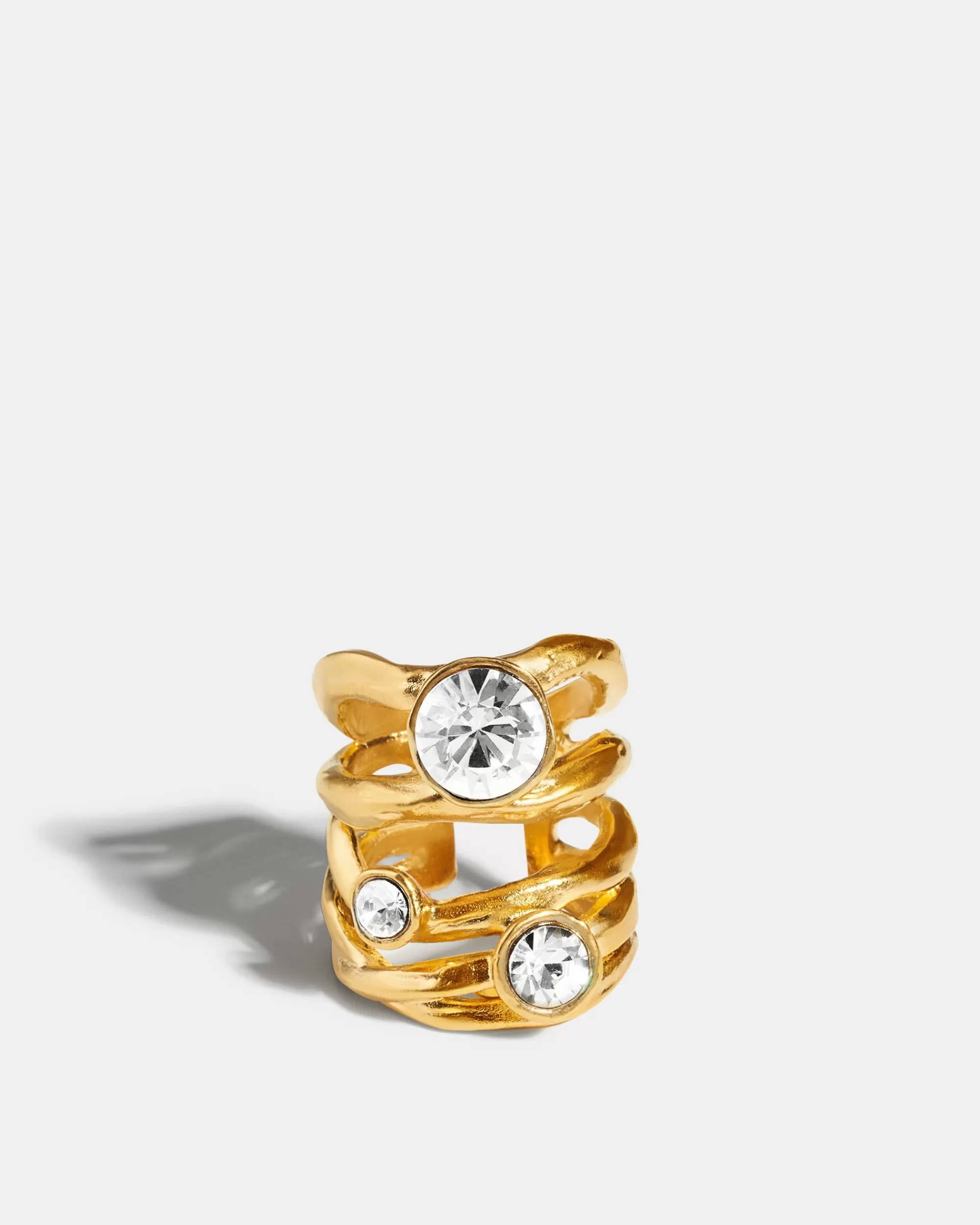 Made in Italy from light-gold brass, the Queen Of The Nile Ring has a cool, stacked look without any styling needed on your end. The lightly textured finish is enriched with a scattering of crystals for an extra dose of glamour. Wear yours with the matching cuff and hoops.