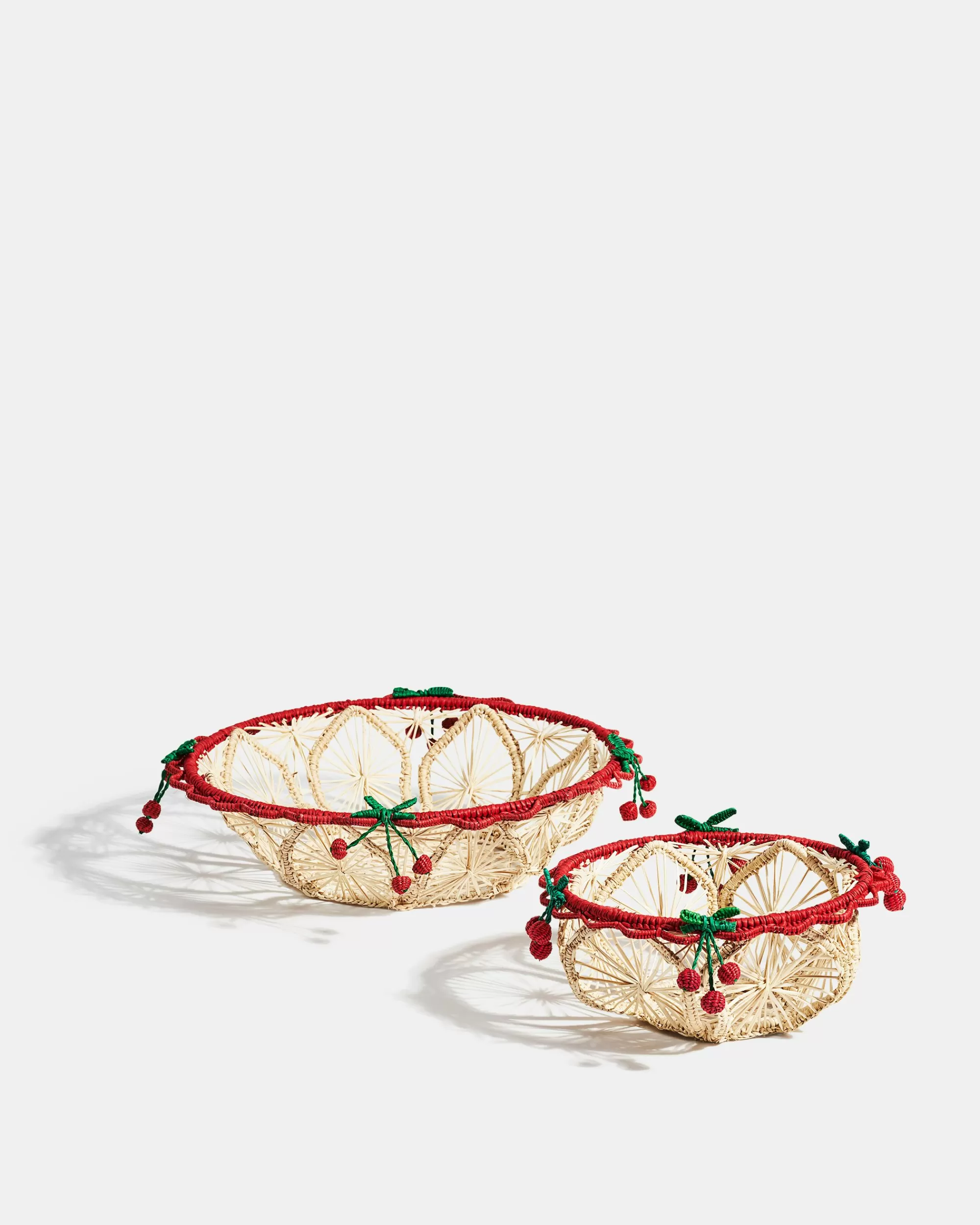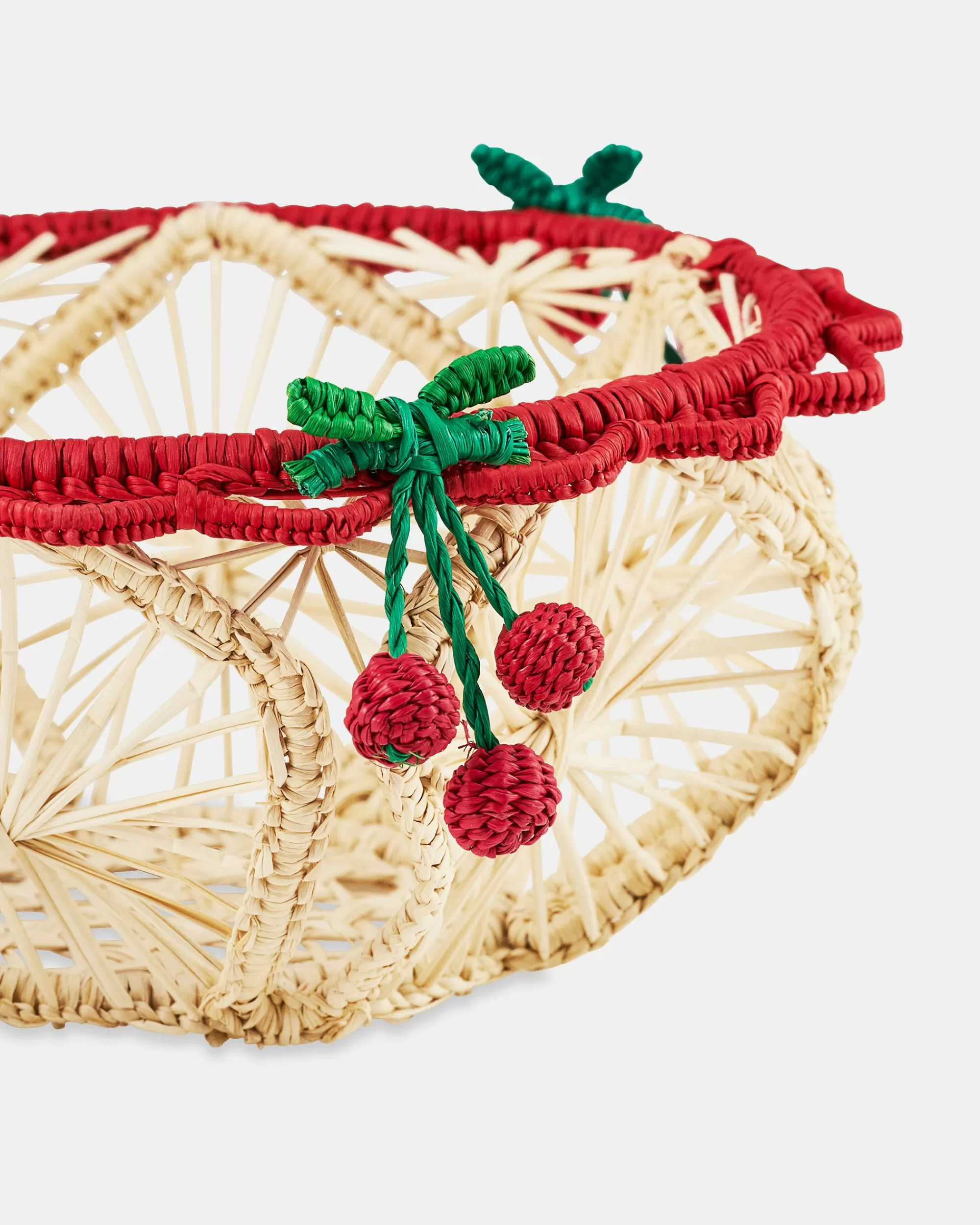 Woven from natural raffia, these charming baskets remain faithful to the Italian craftsmanship at Aquazzura’s heart. Accented with a joyful cherry motif in a bright red hue, it’s an eye-catching addition to your home – for summer and beyond.