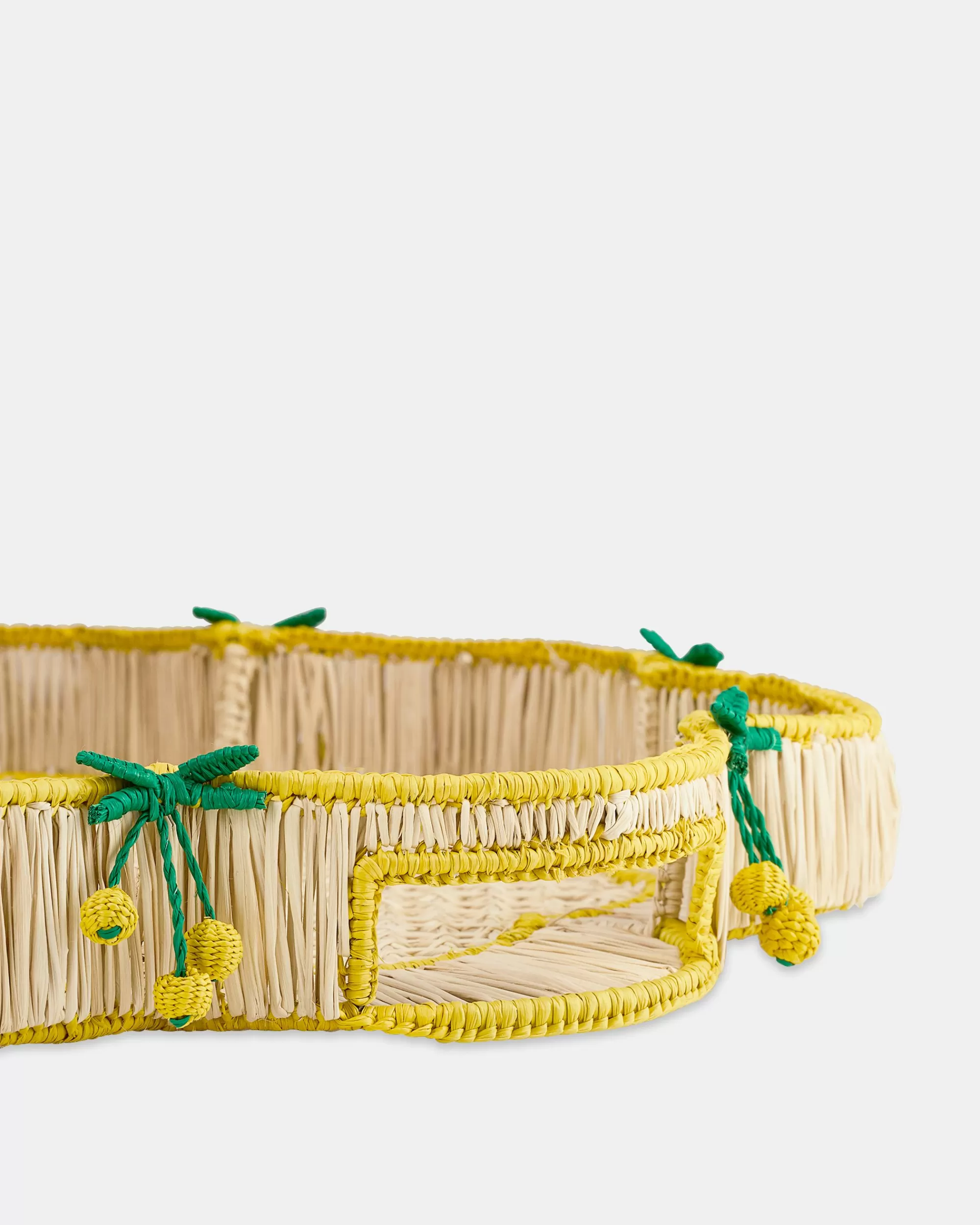 A playful exploration of colour and texture for your table – this Rafia Tray will add an undeniable touch of joie de vivre to your home. Meticulously crafted from natural materials, its decorated with a vivacious cherry motif, here in sunny yellow.