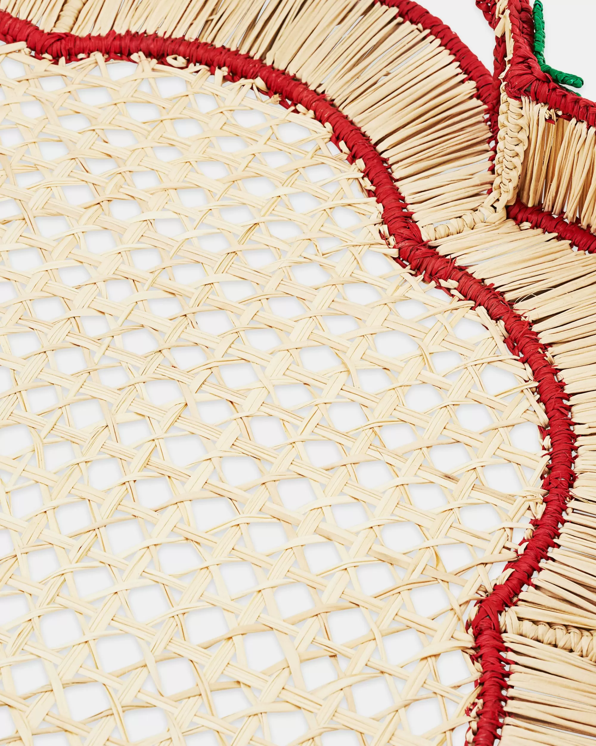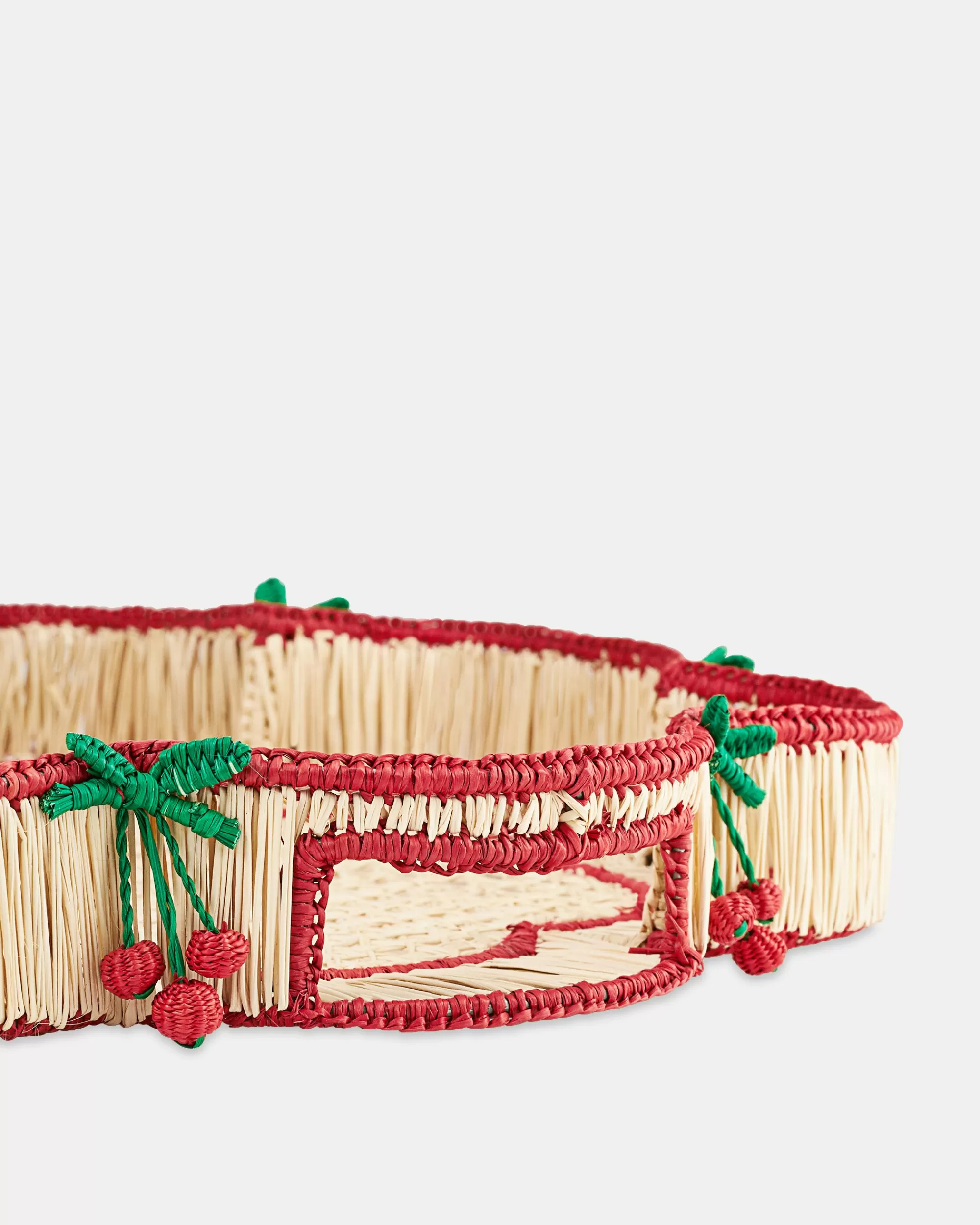 A playful exploration of colour and texture for your table – this Rafia Tray will add an undeniable touch of joie de vivre to your home. Meticulously crafted from natural materials, its decorated with a vivacious cherry motif, here in warm red.