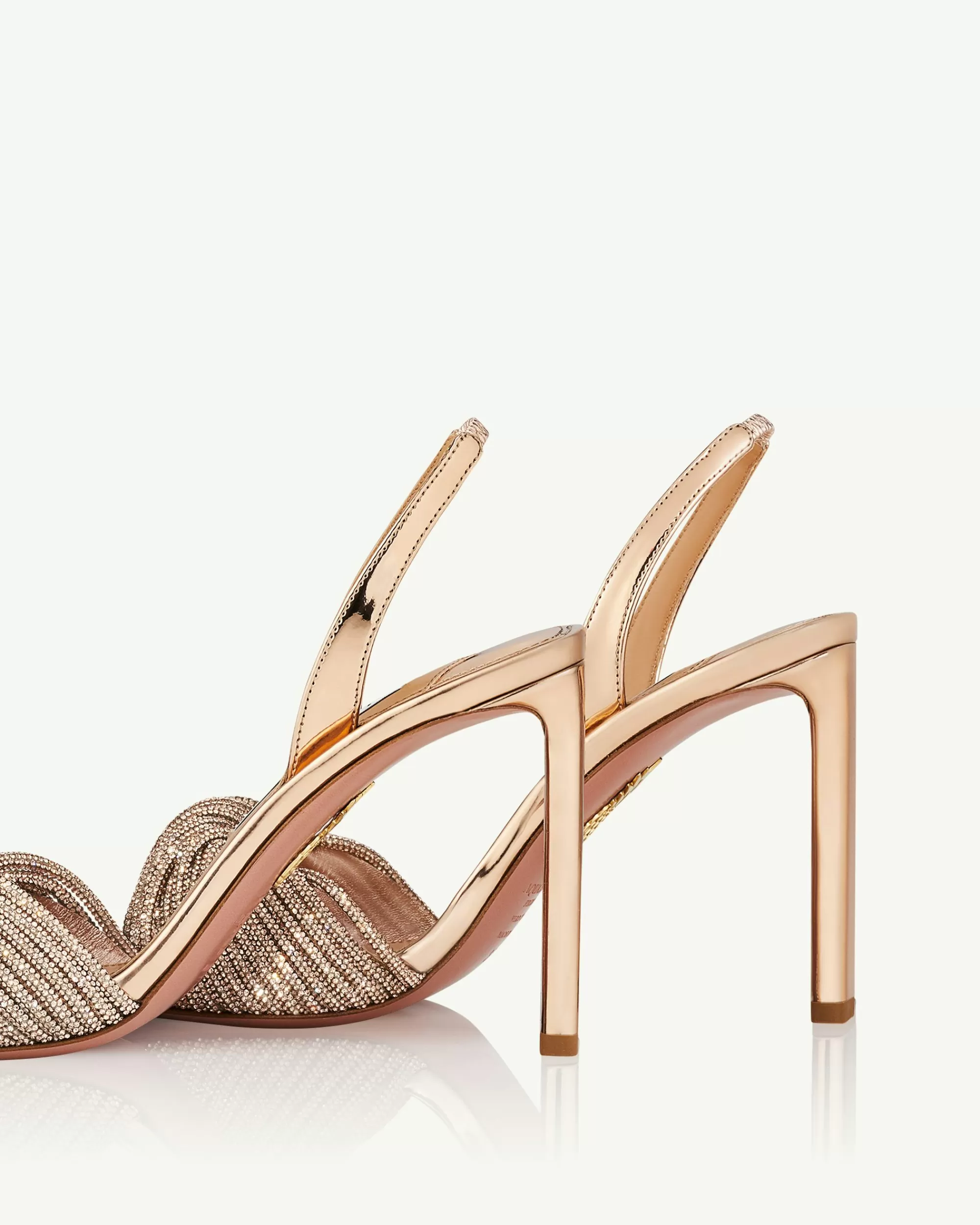 When the dress code calls for all-out glamour, you can always count on our Scintilla Crystal Sandals to turn heads. This rose-gold pair is crafted from supple metallic leather with a mirror-like sheen and has single front straps enriched with glistening crystals. The striking 95 mm stiletto heels are instantly leg lengthening.