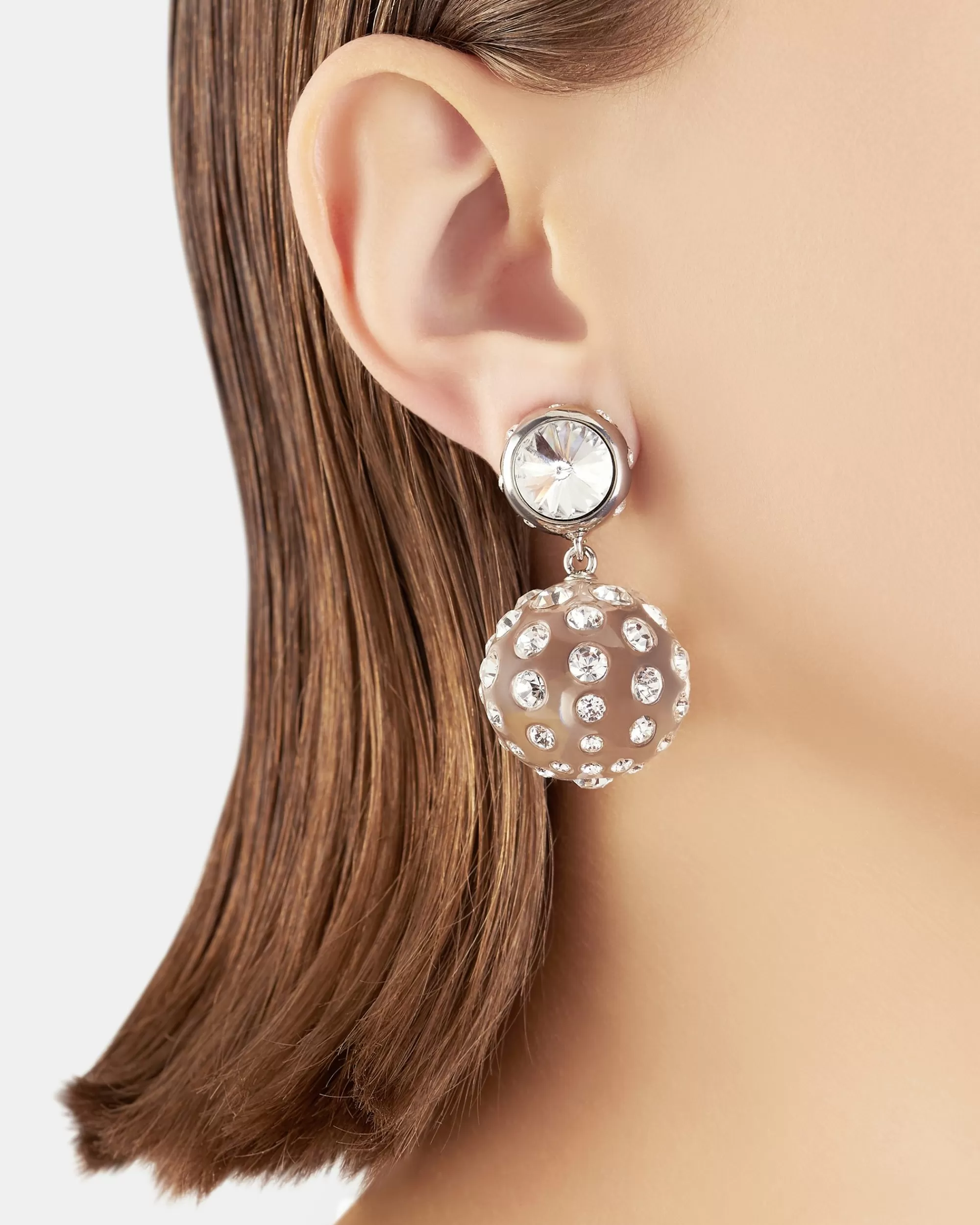 Compliment anything in your wardrobe with our dazzling Starburst Drop Earrings. Made from resin, strass and brass in transparent palladium, the glittery crystals catch the light with every movement.