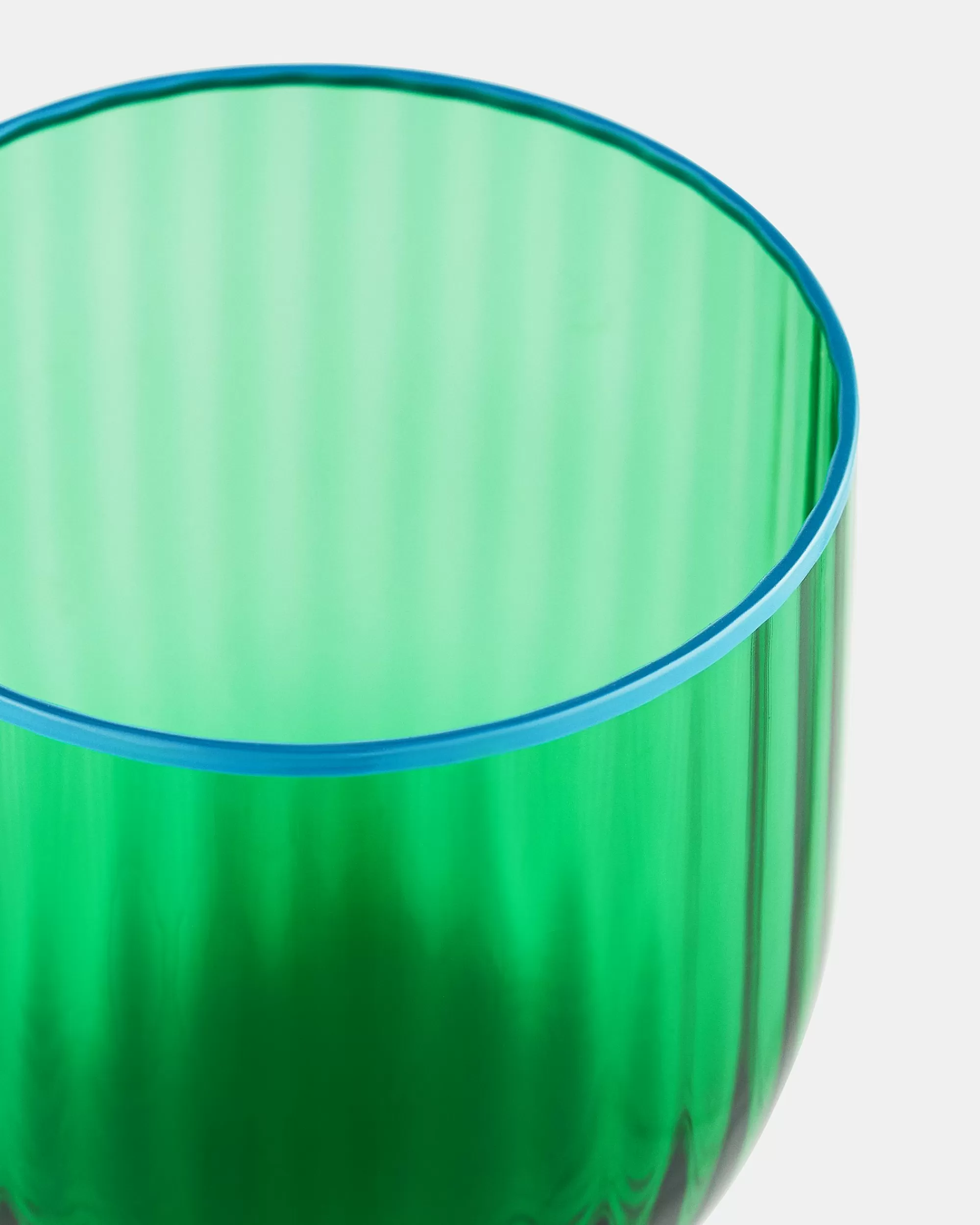 Our Striped Water Glass will make a stunning addition to any tabletop. Italian-crafted from handblown Murano glass in emerald and turquoise, the fluted stem is finished with a golden rim. Pair with our other striking glassware to liven up your table setting.