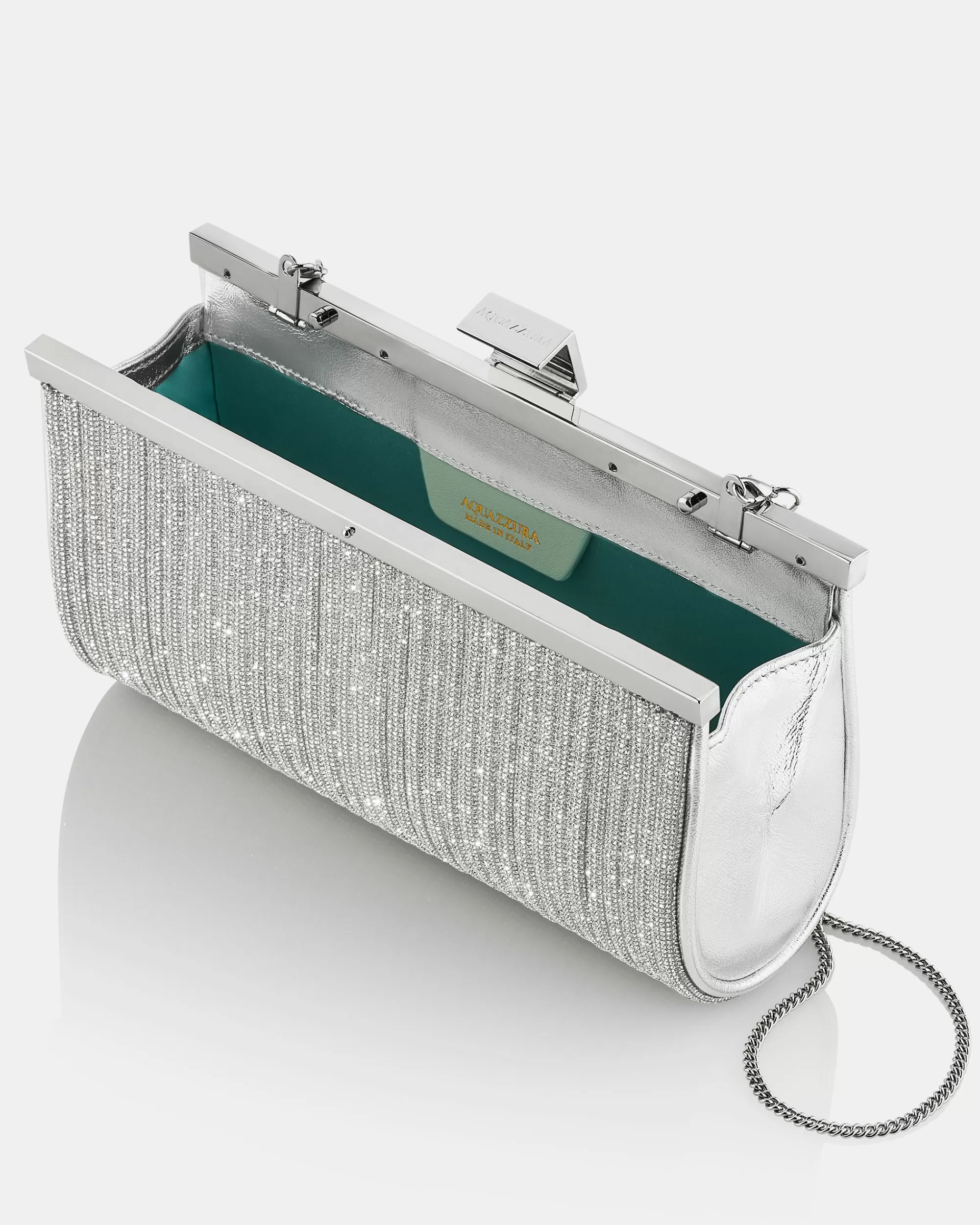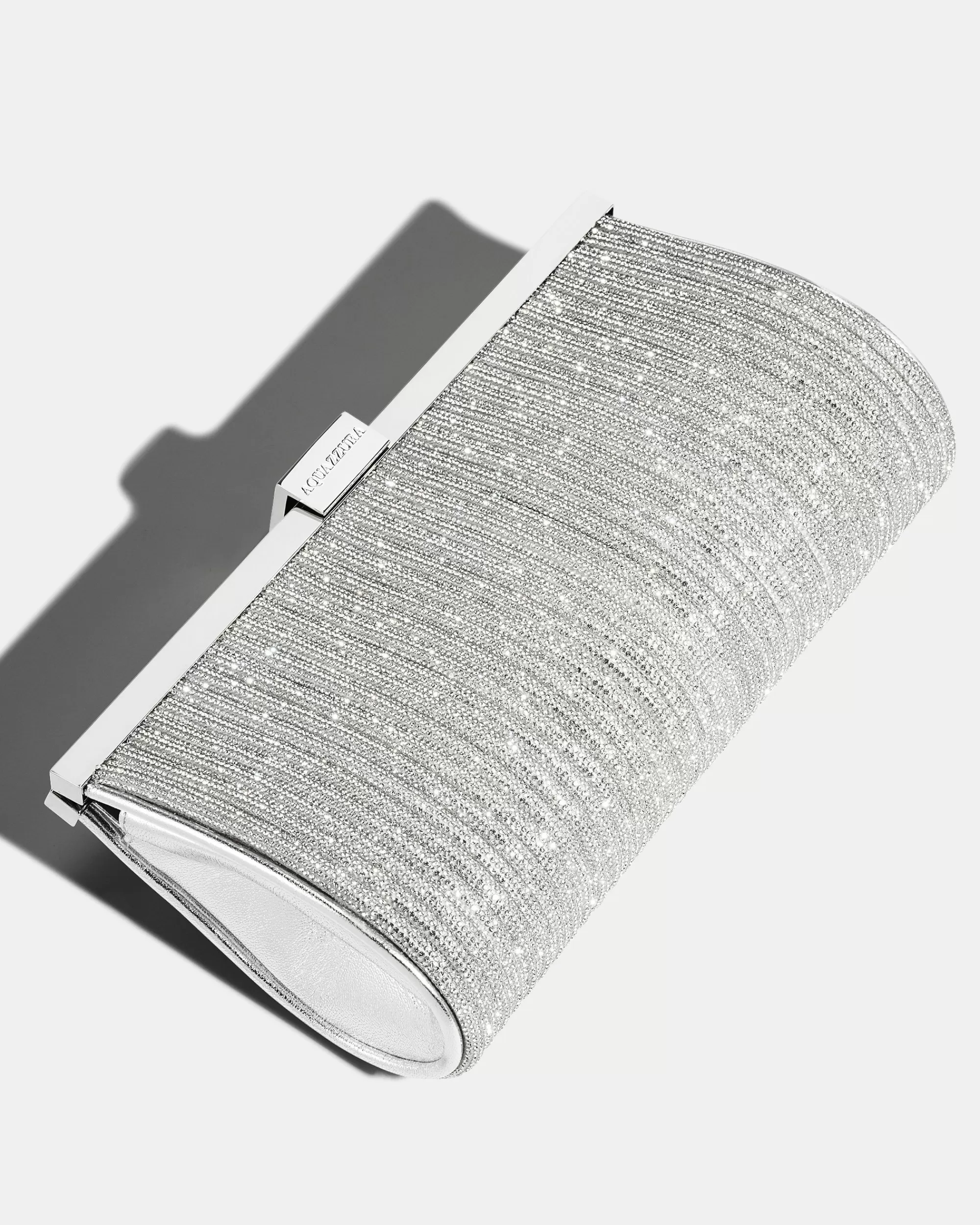 Make glamour your plus-one with this unforgettable Sundance Crystal Clutch. Crafted in Italy from metallic silver leather and palladium-tone brass, its decorated with rows of glistening crystals for a mesmerising finish. Wear it for evenings or to dress up casual daytime looks.