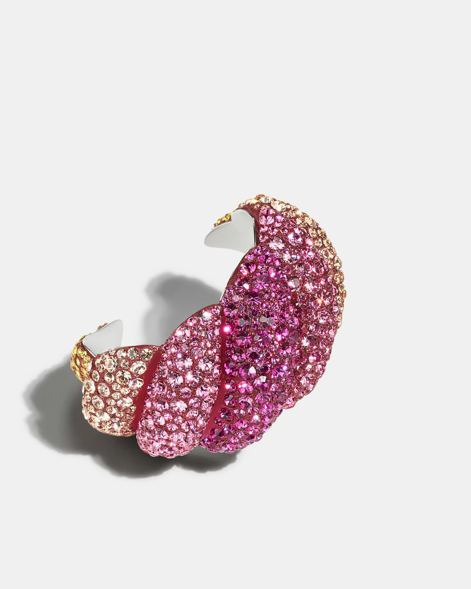 Embrace your inner maximalist with this Swing Cuff, defined by its vibrant pink and peach shades and shimmering texture….