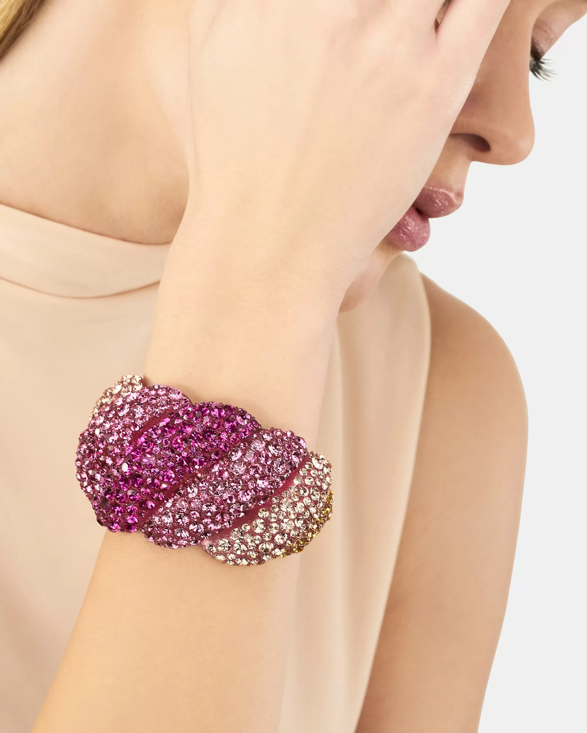 Embrace your inner maximalist with this Swing Cuff, defined by its vibrant pink and peach shades and shimmering texture. Made in Italy from palladium-tone brass and scattered with colourful gemstones, it will glimmer beautifully in the sunlight or beneath a disco ball.