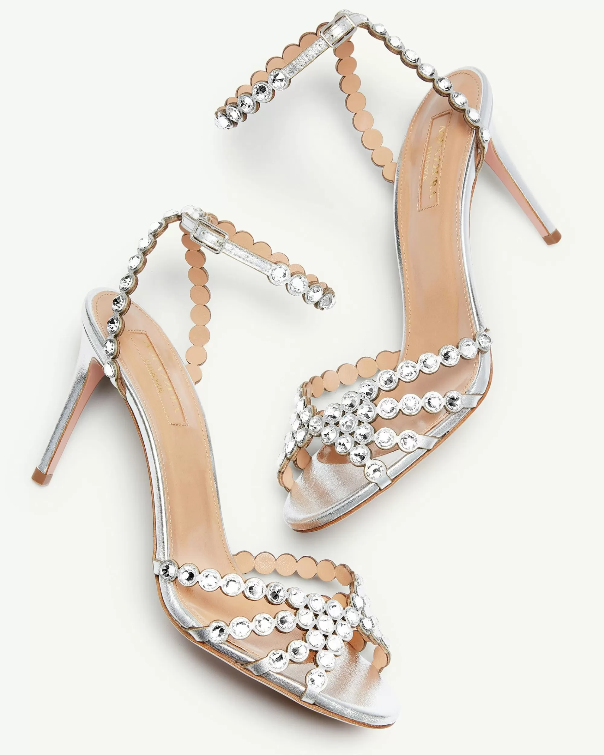 Our Tequila Sandals evoke timeless glamour for your evening ensembles. Crafted in Italy from shimmery silver metallic le…