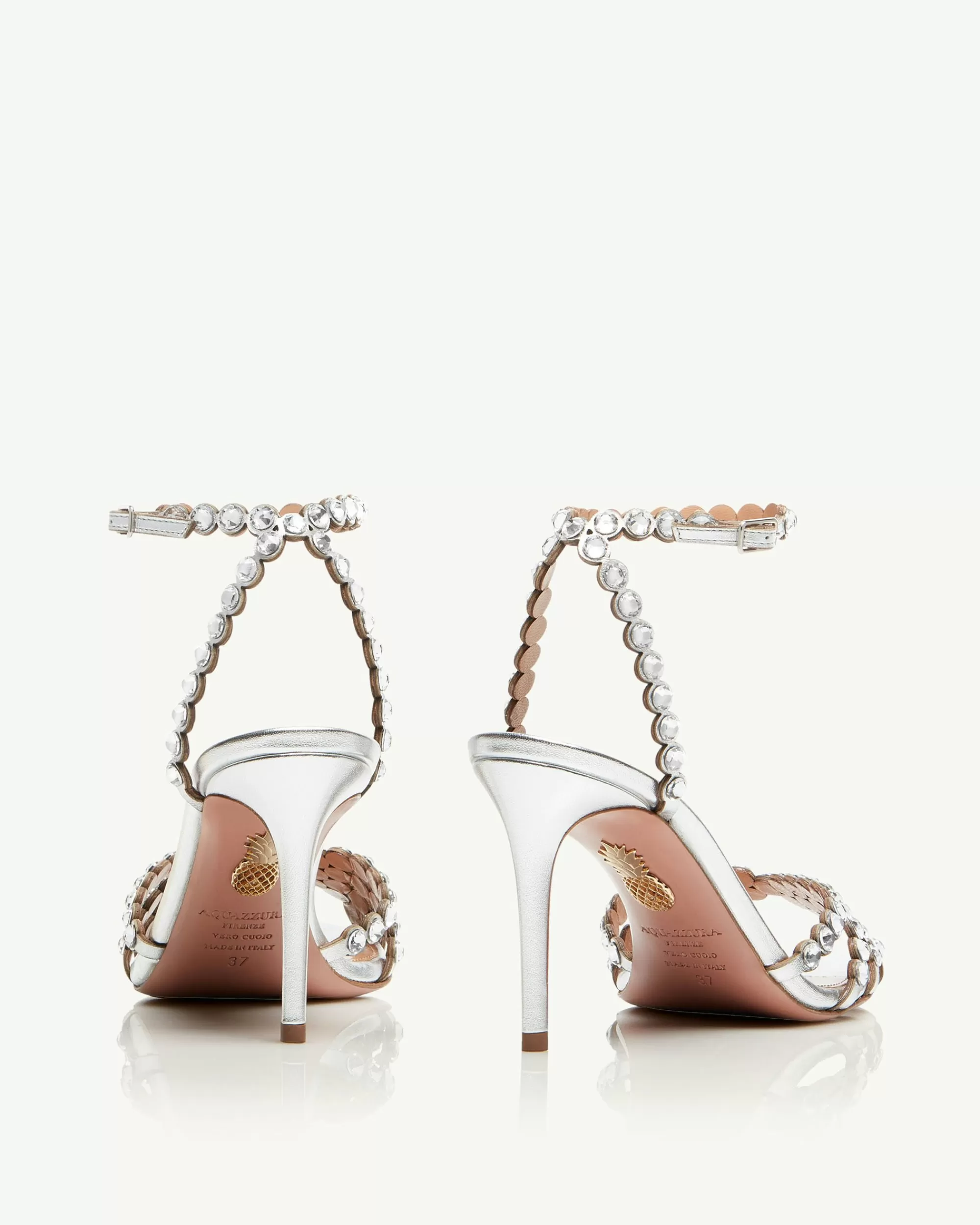 Our Tequila Sandals evoke timeless glamour for your evening ensembles. Crafted in Italy from shimmery silver metallic leather, this open-toed pair features gleaming gems across its slender straps and sits upon a slim stiletto heel. Pair yours with denim and dresses alike.
