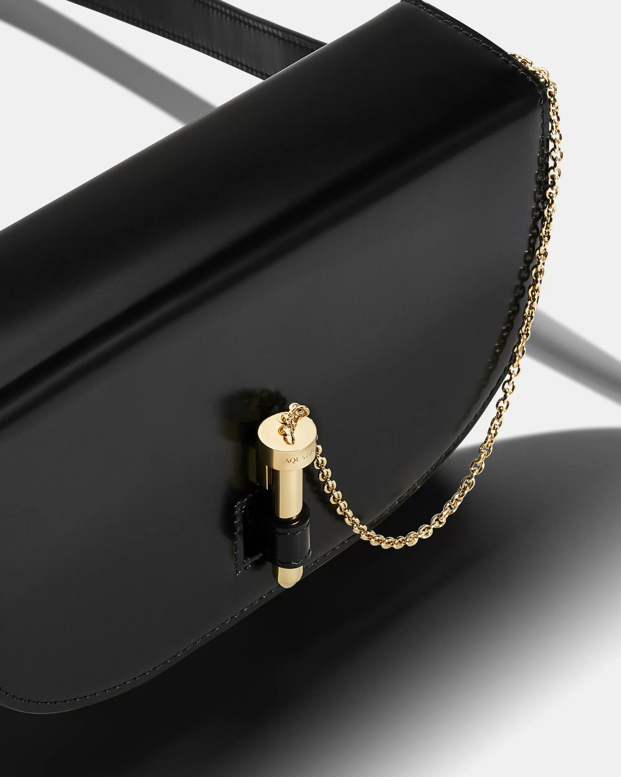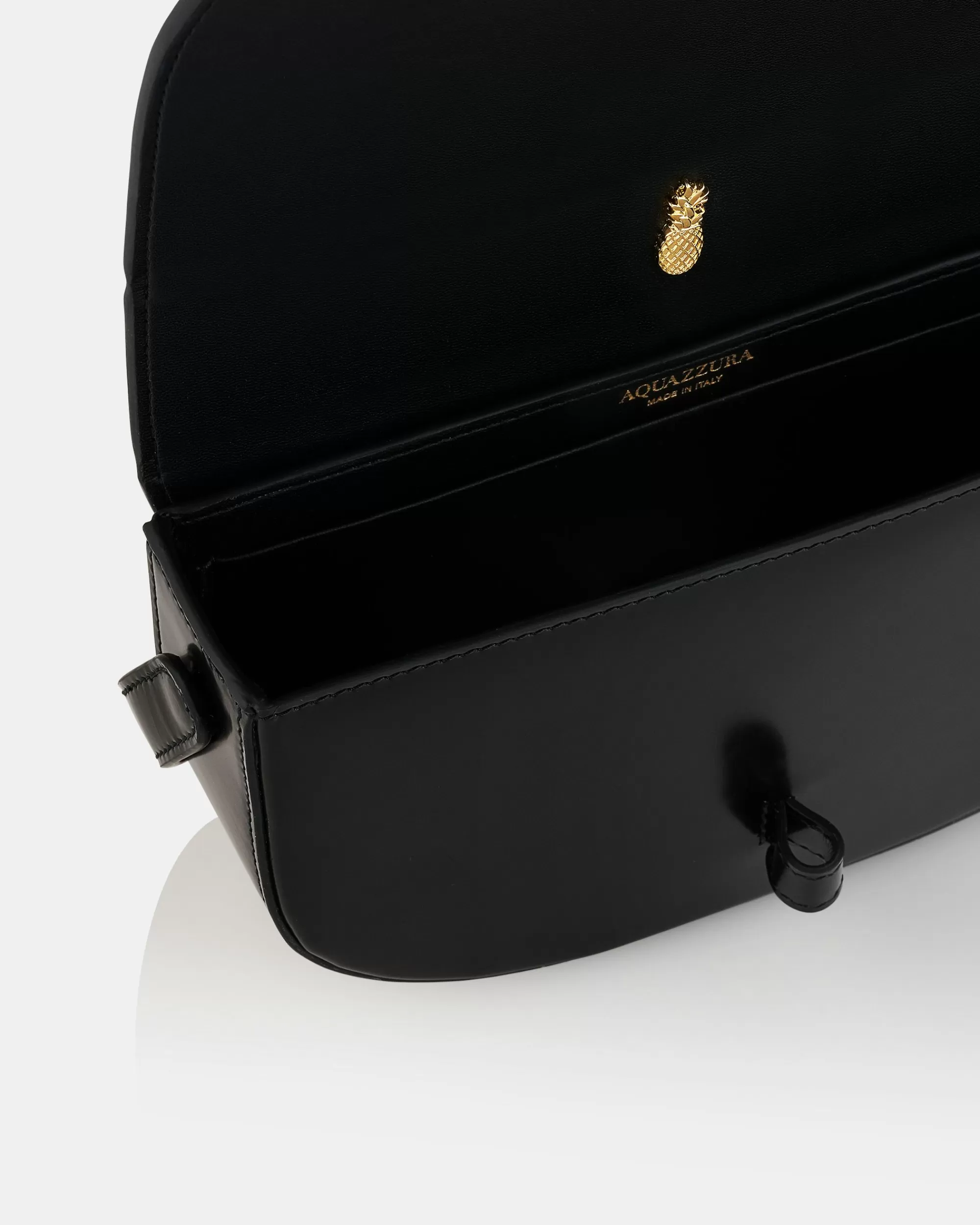 A fresh take on a timeless silhouette – the Tribeca Crossbody bag instantly catches attention with Aquazzuras signature hardware detailing. The rounded shape, reminiscent of vintage designs, is crafted in Italy from brushed calf leather, here in timeless black. The long shoulder strap provides endless styling options.