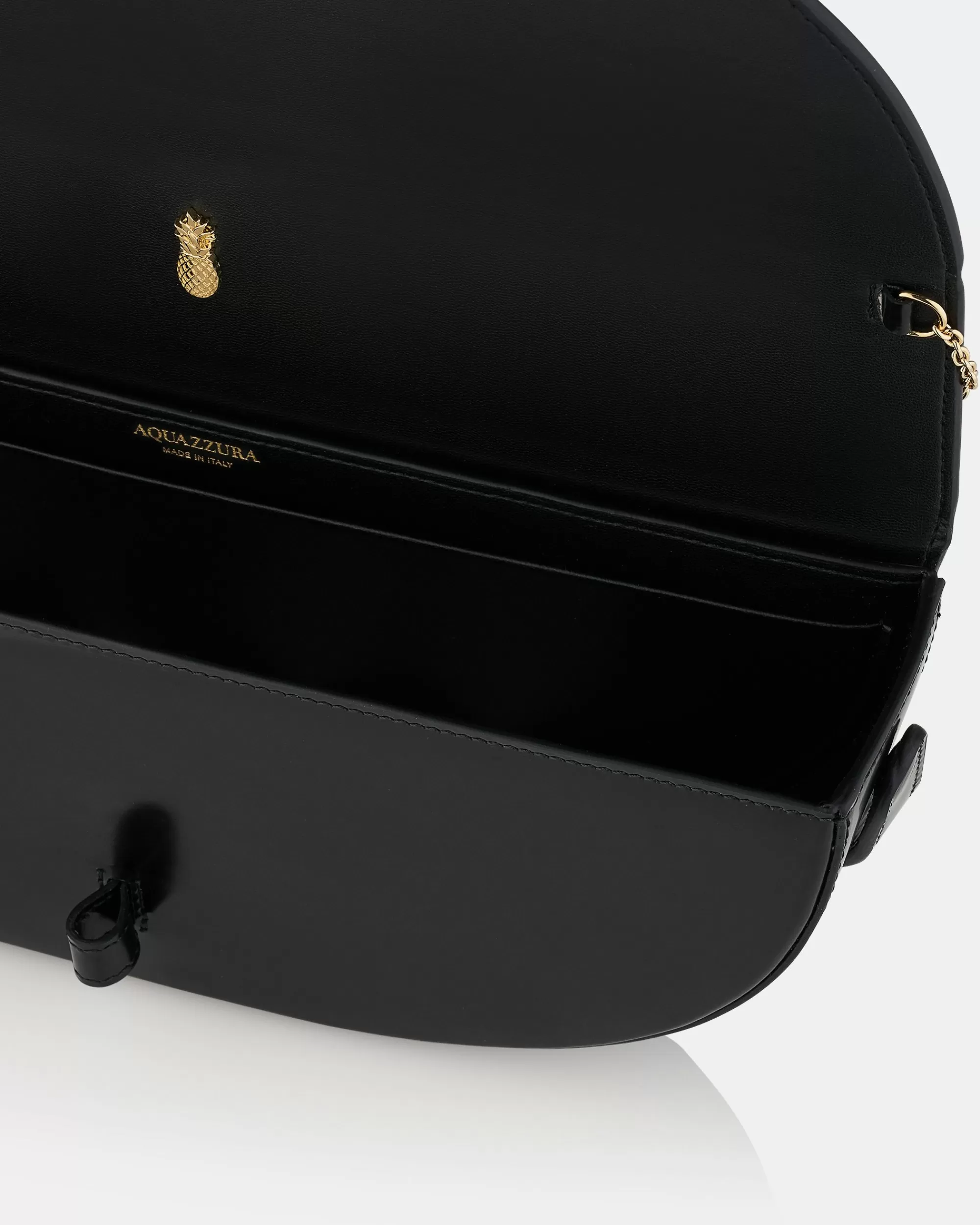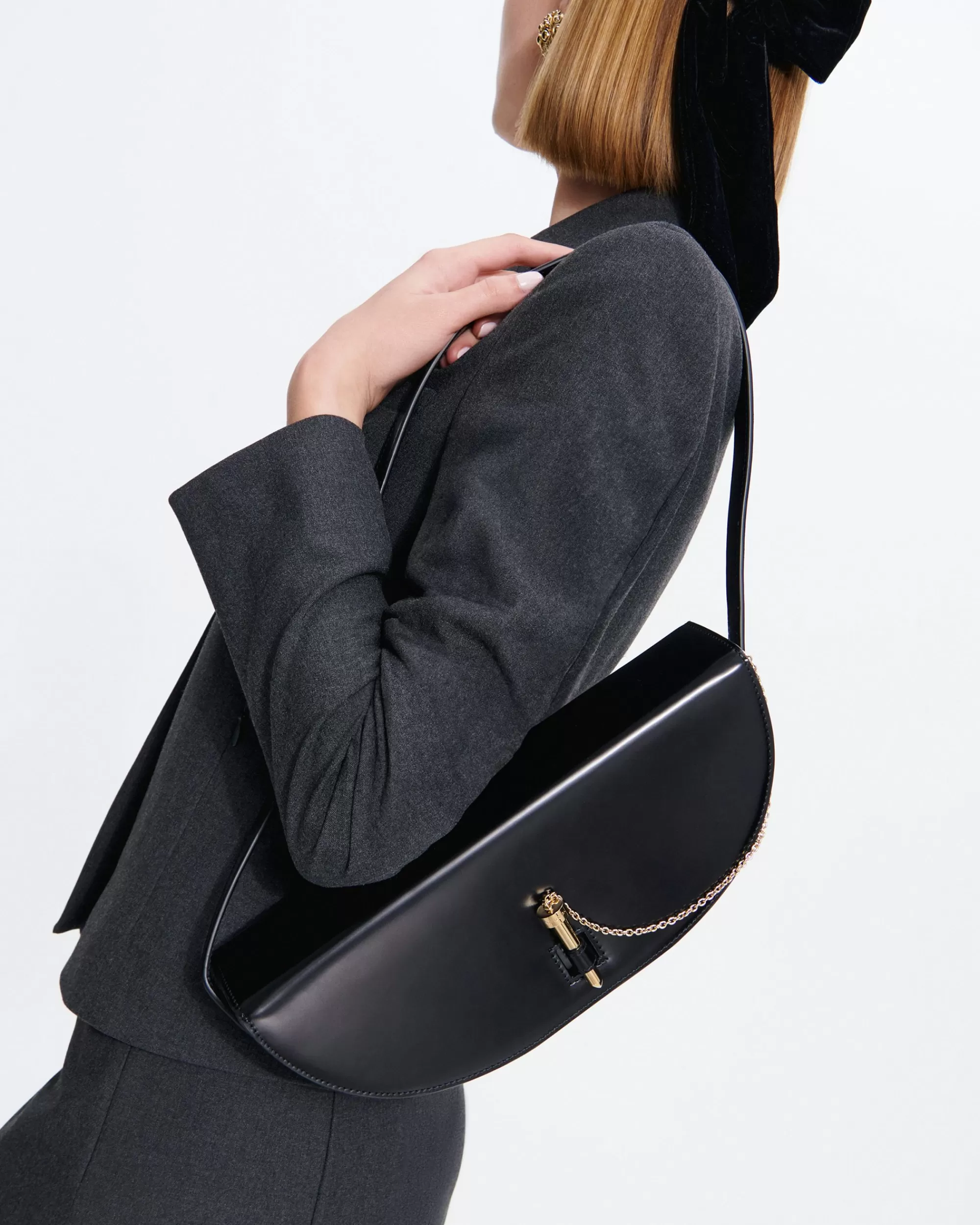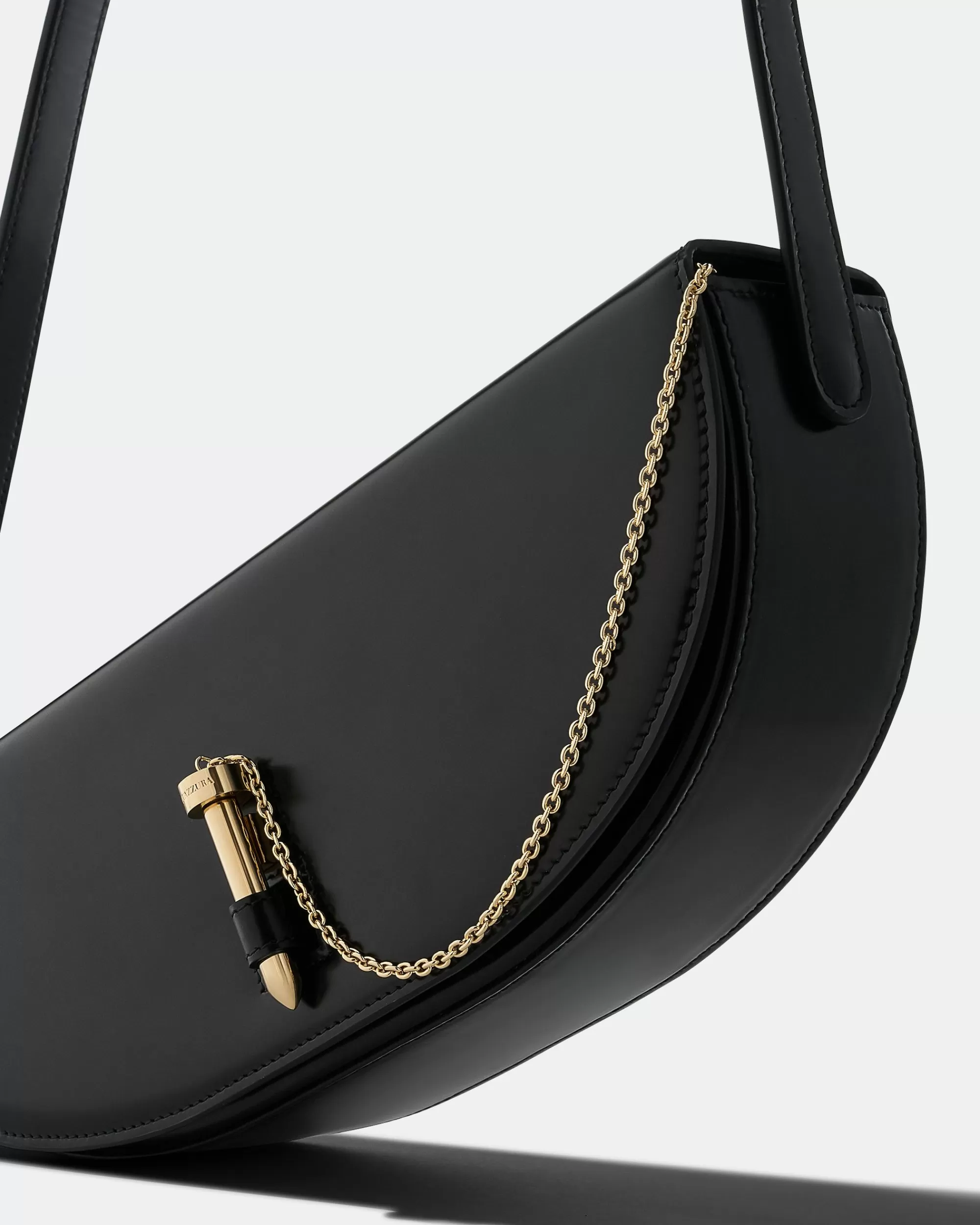 The Tribeca Shoulder Bag puts a modern twist on the 2000s trends with its rounded baguette silhouette and short shoulder strap – designed to sit just beneath the underarm. It’s made in Italy from black calf leather with a luxuriously soft brushed finish and embellished with Aquazzura’s signature hardware detailing.